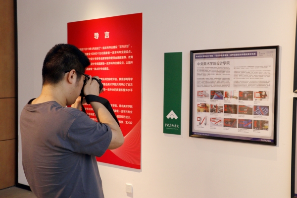 中央美術學院現有16個國家級一流本科專業。此次展出的有視覺傳達、產品設計、藝術與科技、數字媒體藝術、服裝與服飾設計、攝影6個專業的建設情況。每個專業從專業方向、課程簡介、課程內容、課程目標、課程實踐、學生作品等,圖文并茂地展示建設成果。