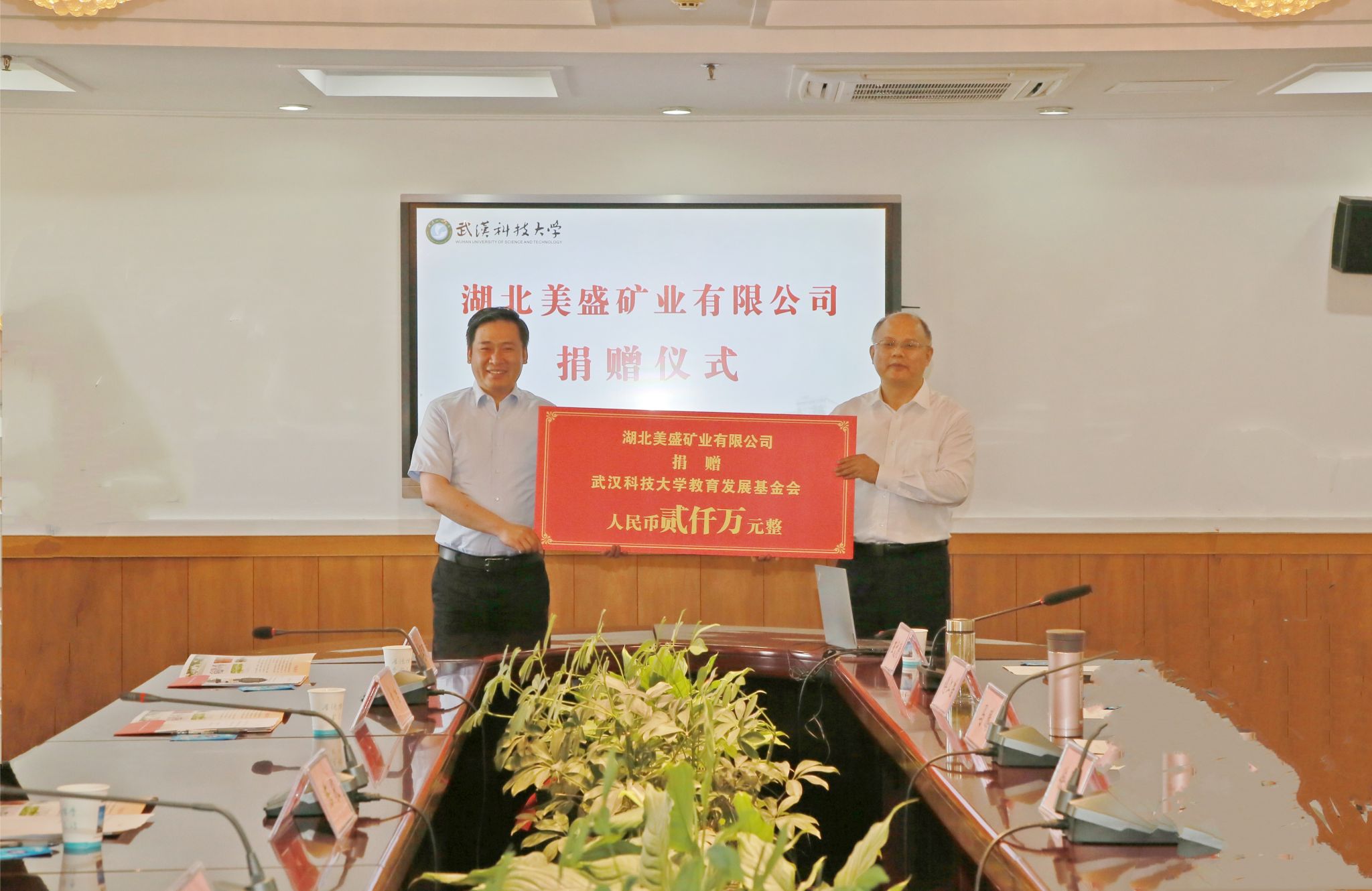 湖北美盛礦業(yè)有限公司副總經(jīng)理劉桂男、李存朝,學(xué)校相關(guān)職能部門負(fù)責(zé)人出席捐贈儀式。