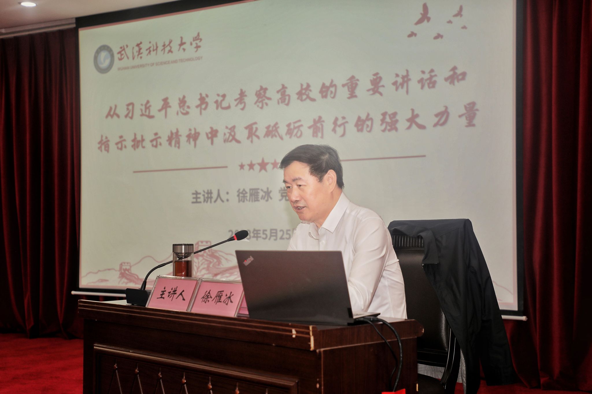 武科大網(wǎng)訊 5月25日下午,校黨委書記徐雁冰在青山校區(qū)主樓18樓報告廳以《從習(xí)近平總書記考察高校的重要講話和指示批示精神中汲取砥礪前行的強大力量》為題,講授主題教育專題黨課。省委第十五巡回指導(dǎo)組組長呂文艷、成員張旻蒞會指導(dǎo),全體校領(lǐng)導(dǎo),機關(guān)職能部門、直(附)屬單位中層正職,二級黨組織書記、副書記,學(xué)生黨員代表參會。校黨委副書記孫國勝主持。