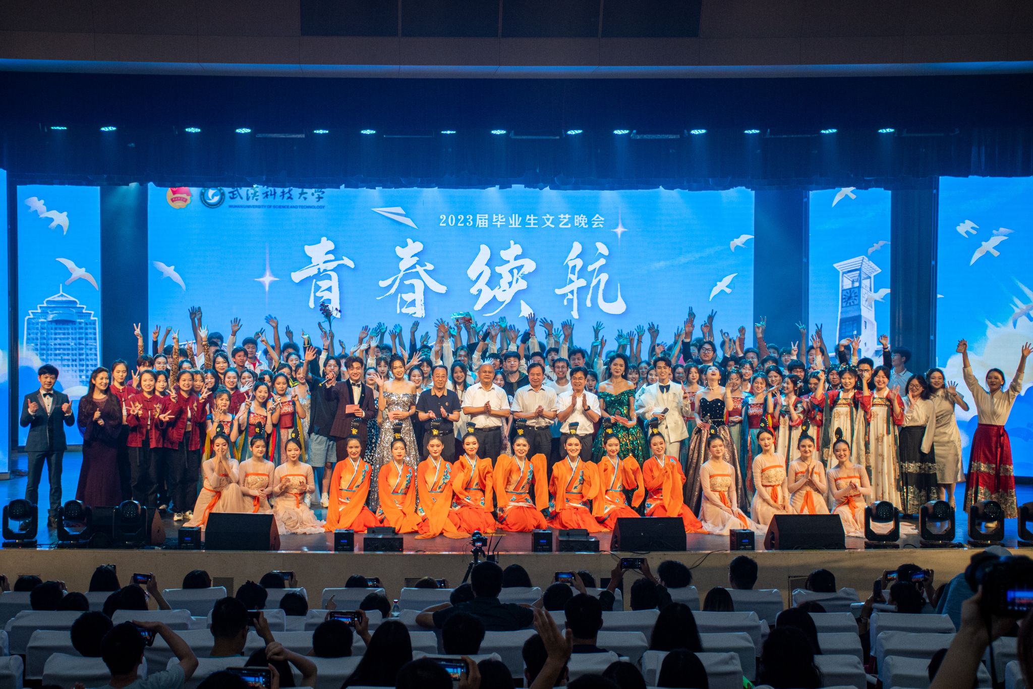 武科大網(wǎng)訊(記者周嘉豪 吳紫琴)聽琴瑟和弦,賞“神女飛天”,憶千古崢嶸,頌傳統(tǒng)風(fēng)采。6月18日,“青春續(xù)航”2023屆畢業(yè)生文藝晚會(huì)在我校沁湖禮堂上演。校黨委書記徐雁冰、校長(zhǎng)倪紅衛(wèi)為畢業(yè)生送上畢業(yè)寄語。倪紅衛(wèi),校黨委副書記孫國(guó)勝,副校長(zhǎng)呂勇、馬騰等出席晚會(huì)。