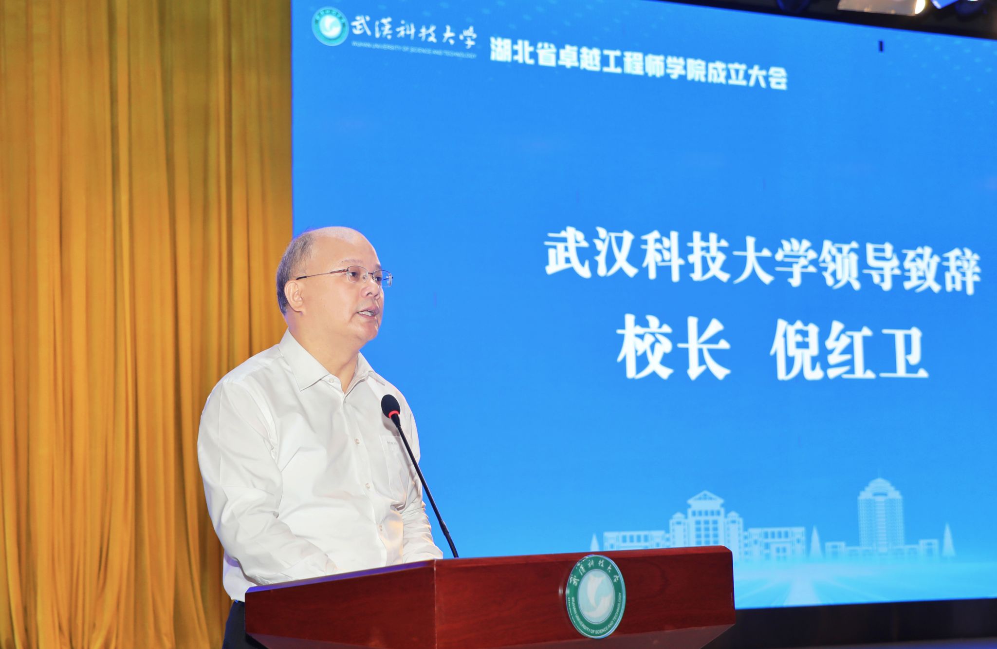 倪紅衛代表全體師生員工,向關心支持學校建設發展的上級部門領導和社會各界人士表示衷心感謝,向蒞臨大會的來賓表示熱烈歡迎。倪紅衛表示,作為首批湖北省卓越工程師學院試點建設高校,學校肩負著樹標桿、作示范的使命與責任。要高質量建好卓越工程師學院,必須高度重視,加強頂層設計,精心謀劃“路線圖”;要聚力合作,發揮校企優勢,認真落實“施工圖”;要改革創新,優化運行機制,全力打造“樣板間”;要圍繞目標,強化質量保障,助推當好“排頭兵”。學校將牢牢抓住我省加快建設全國構建新發展格局先行區的重要戰略機遇,建好建強湖北省卓越工程師學院,打通教育鏈、人才鏈和創新鏈、產業鏈有機銜接的“最后一公里”,培養一大批卓越工程師,更好的服務我省經濟社會發展。