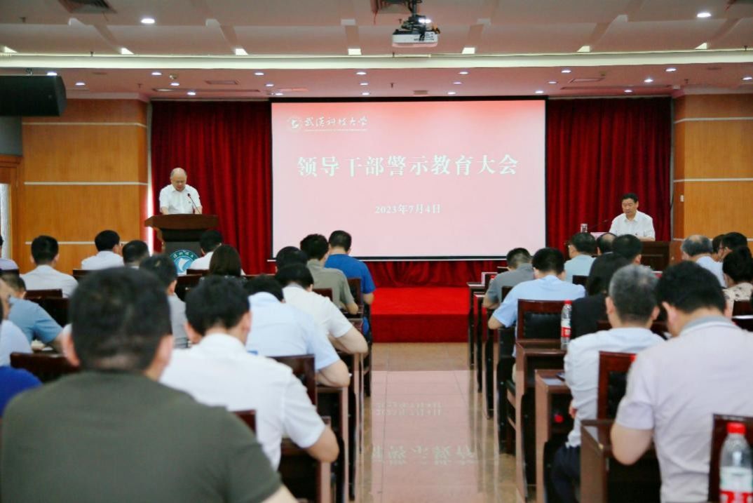 7月4日上午,學校舉行領導干部警示教育大會,全體校領導參會,全體中層正職領導和新提拔中層干部接受警示教育和集體廉政談話,校黨委書記徐雁冰講廉政黨課,黨委常委、紀委書記竇先萍傳達學習《關于深化黨員干部紀律教育工作的意見》,解讀學校加強年輕干部黨紀法規學習教育文件。