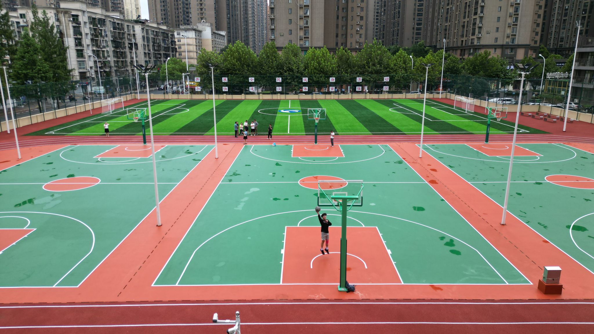 該運動場總占地面積6600平方米,含一塊7人制人工草地足球場、3塊半預制硅PU標準籃球場和環繞籃球場的200米塑膠跑道。該項目的建成,較大程度上緩解了青山校區運動場地不足的問題,保障了體育教學的開展,滿足了廣大師生日常體育鍛煉需求。(校園建設處)
