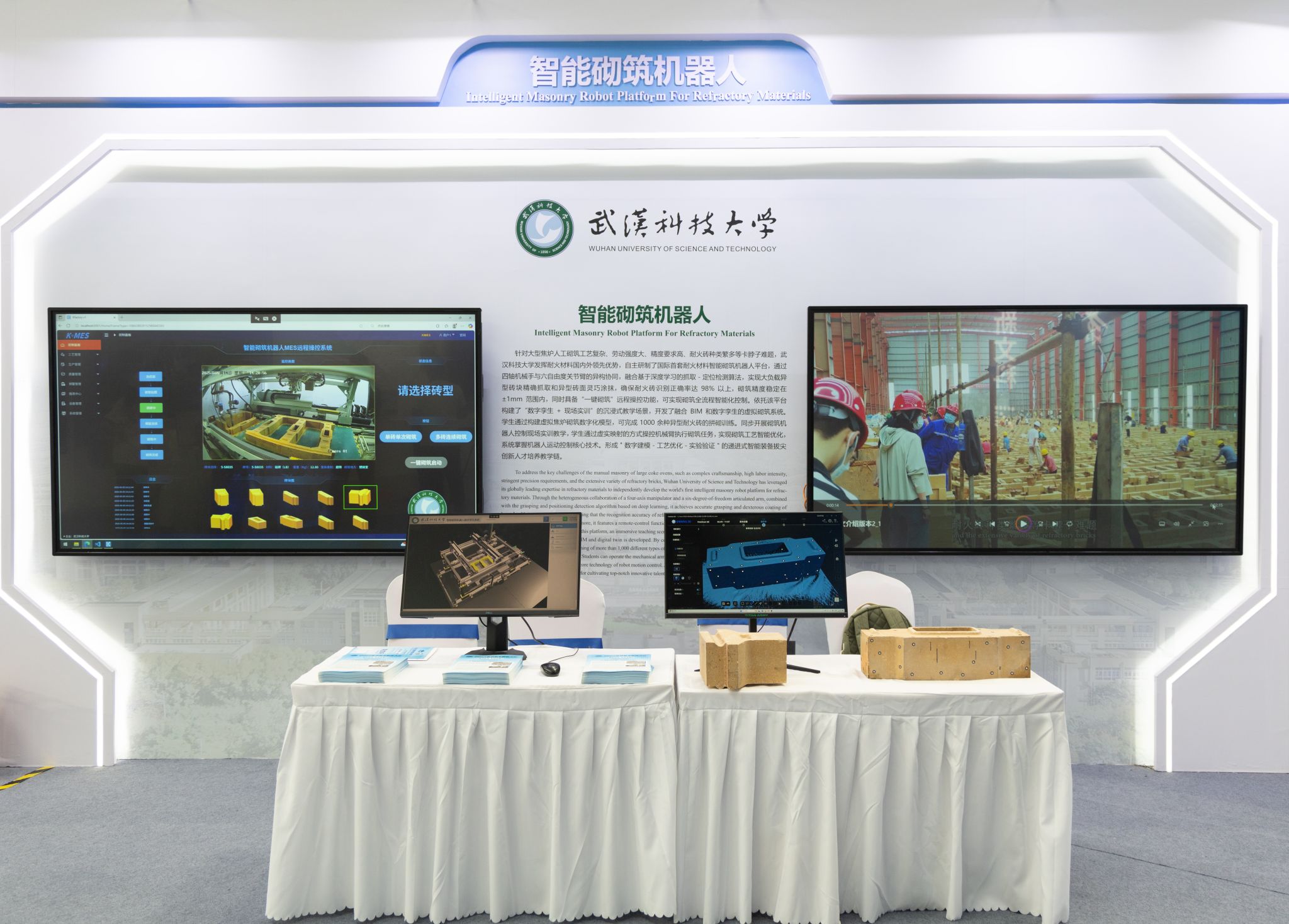 團隊負責人、我校機械工程學院教授汪朝暉介紹,該機器人能以98%以上的正確率自主識別上千種異形耐火磚;在0.5米寬的爐膛內,輕松抓取數十公斤的異形耐火磚,精準完成識別、抓取、涂漿全套動作,砌筑精度優于±1毫米,遠超傳統工藝水平。團隊自主研發的“一鍵砌筑”遠程操控系統,還能通過虛擬模型規劃砌筑方案,讓機器人精準執行,實現砌筑全流程智能化控制,大幅提升施工效率與安全性。