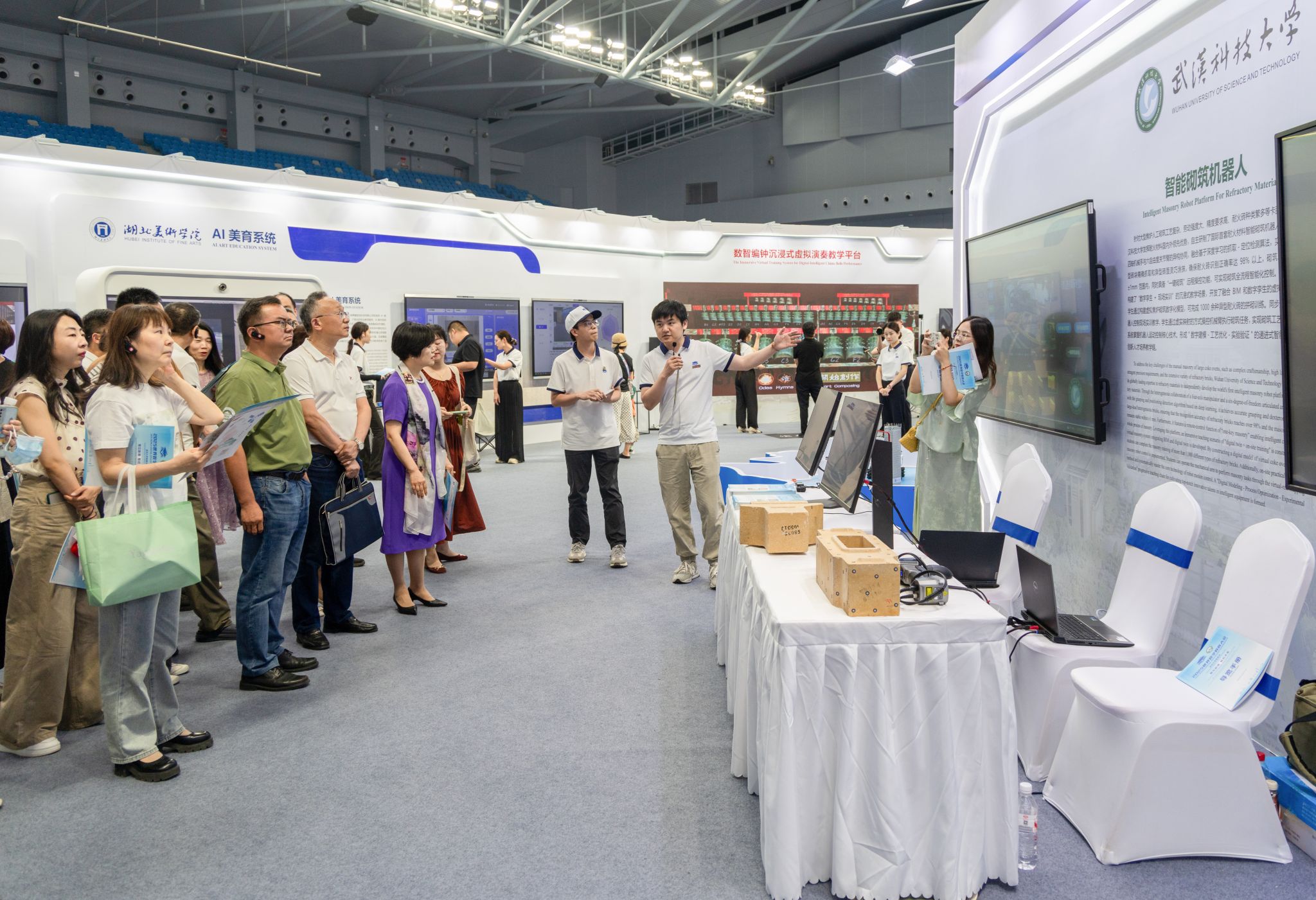 武科大網訊(記者陳孖川)5月14—16日,2025世界數字教育大會在湖北武漢召開,我校機械工程學院研制的“耐火材料智能砌筑機器人平臺”亮相湖北高等教育數字化成果展,吸引了來自全球數十個國家和地區嘉賓的關注和點贊。