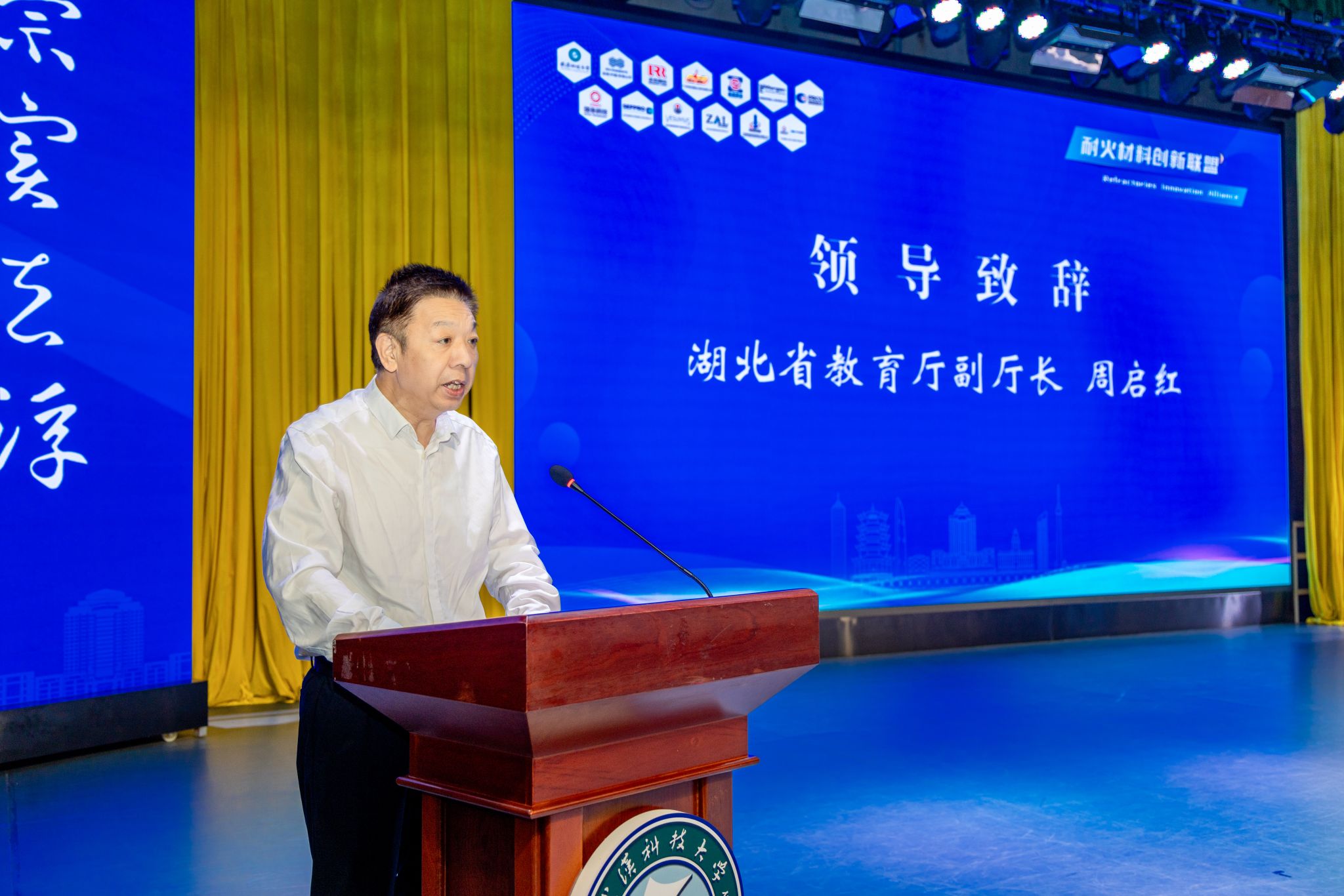 周啟紅在講話中指出,耐火材料作為高溫工業的“戰略支撐”,其創新發展關乎國家命脈產業。武漢科技大學是國內耐火材料領域的“學術重鎮”,構建了從基礎研究到工程轉化的完整創新體系,培養了一大批行業領軍人才。希望聯盟著力打造關鍵核心技術攻關的“尖刀連”,建立項目共贏、平臺共建、成果共享機制;構建產教融合育人的“新高地”,培養行業急需的高素質復合型人才;當好行業轉型升級的“智囊團”,努力為政府決策提供科學依據。他表示,省教育廳將在政策供給、資源整合、機制創新等方面全力支持聯盟建設發展,與校企各方攜手構建“教育賦能產業、產業反哺教育”的良性循環,不斷提升教育對經濟社會高質量發展的支撐力、貢獻力,共同書寫以教育強國建設支撐引領中國式現代化的壯麗篇章。