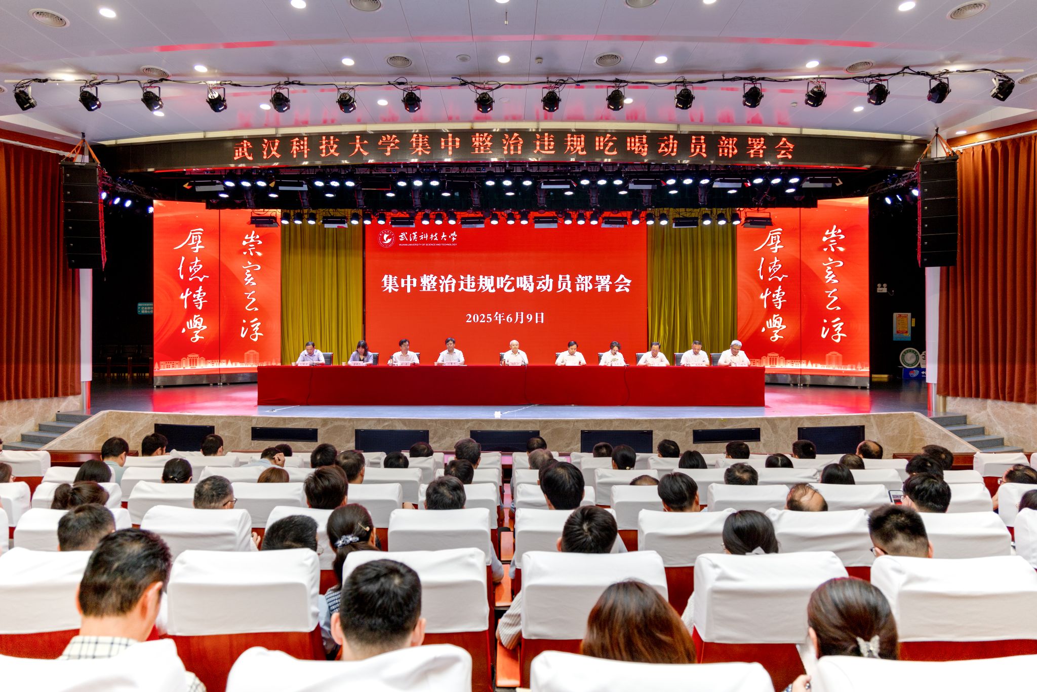 武科大網訊 6月9日下午,學校集中整治違規吃喝動員部署會在青山校區碧園會堂召開。校黨委副書記、校長倪紅衛主持會議并強調,要深入學習貫徹習近平總書記關于加強黨的作風建設的重要論述,認真貫徹落實全省集中整治違規吃喝動員部署會精神,堅決以案為鑒、警鐘長鳴,要嚴字當頭、一刻不停,鐵腕糾治違規吃喝頑瘴痼疾,以作風建設新成效為學校一流學科建設率先突破保駕護航。