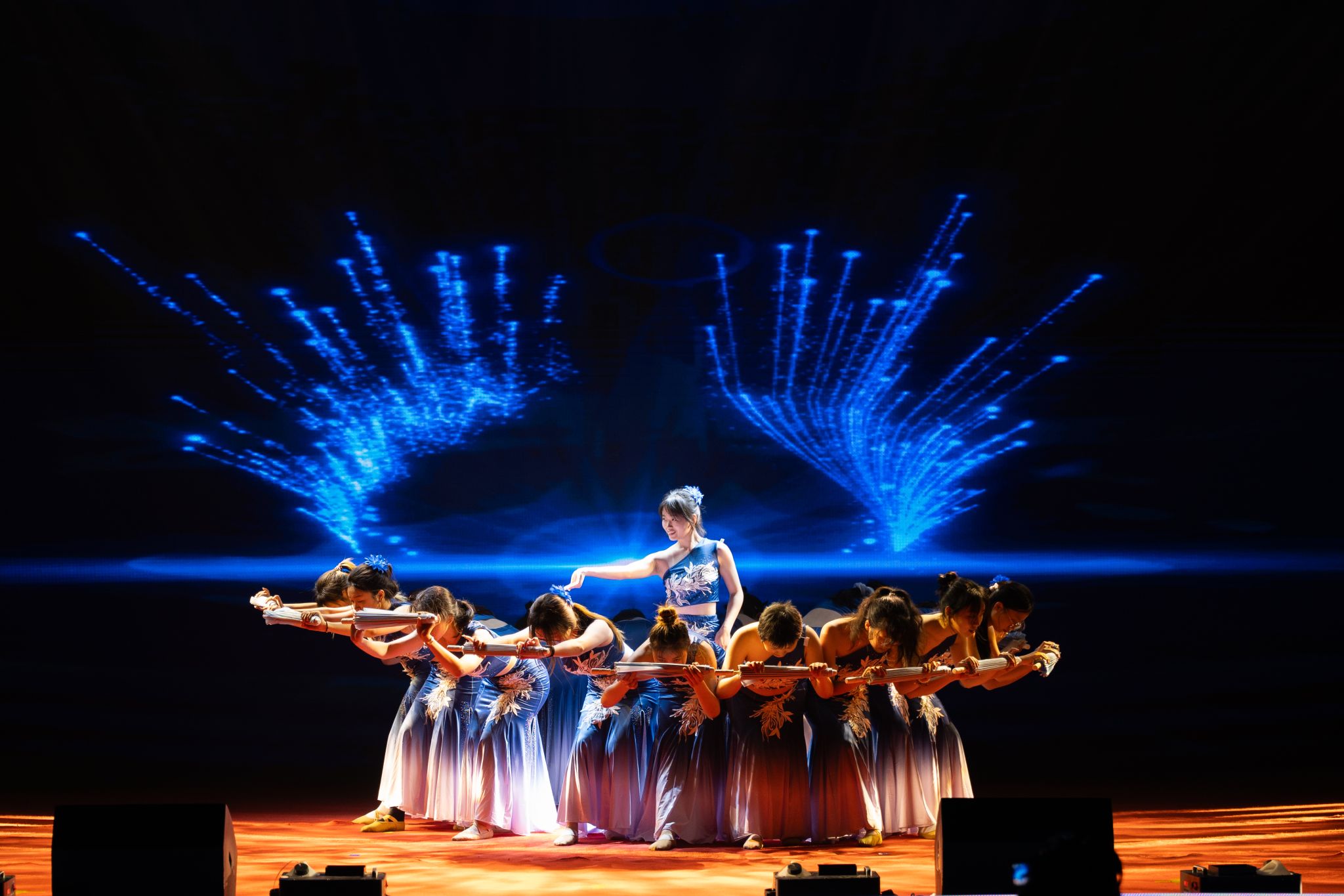 絢麗的燈光亮起,電聲樂隊合奏《你要跳舞嗎》《奔跑》為晚會拉開序幕。舞臺下,熒光棒此起彼伏的揮舞浪潮與音樂節奏相互呼應,瞬間將現場氣氛推向高潮。
