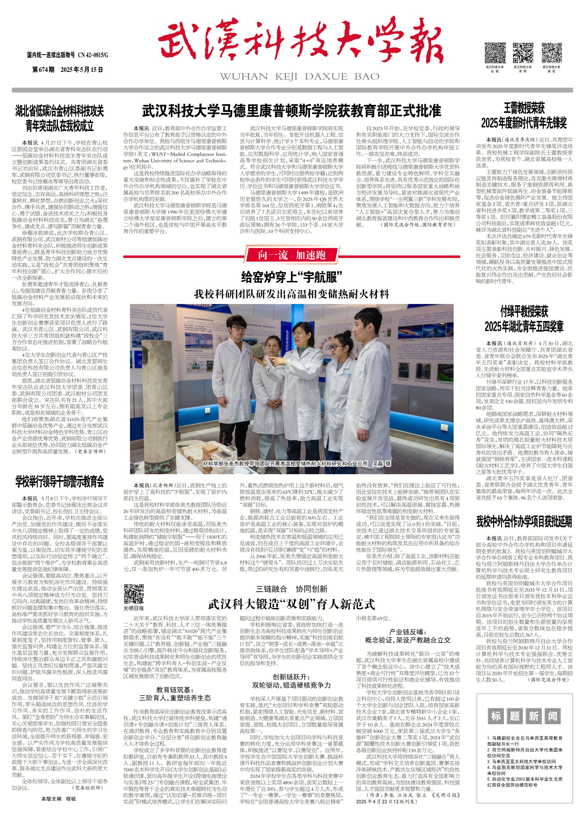 我校將持續(xù)深化“三鏈融合”育人模式,形成“學(xué)科交叉培養(yǎng)創(chuàng)新基因、賽事實(shí)戰(zhàn)淬煉硬核技術(shù)、產(chǎn)教共生反哺區(qū)域經(jīng)濟(jì)”的良性創(chuàng)新創(chuàng)業(yè)教育生態(tài),著力打造具有全國(guó)影響力的雙創(chuàng)教育高地,為加快建設(shè)教育強(qiáng)國(guó)、科技強(qiáng)國(guó)、人才強(qiáng)國(guó)貢獻(xiàn)更多智慧和力量。(作者:李胤 汪汝武 張立 《光明日?qǐng)?bào)》 2025年4月23日12版刊發(fā))