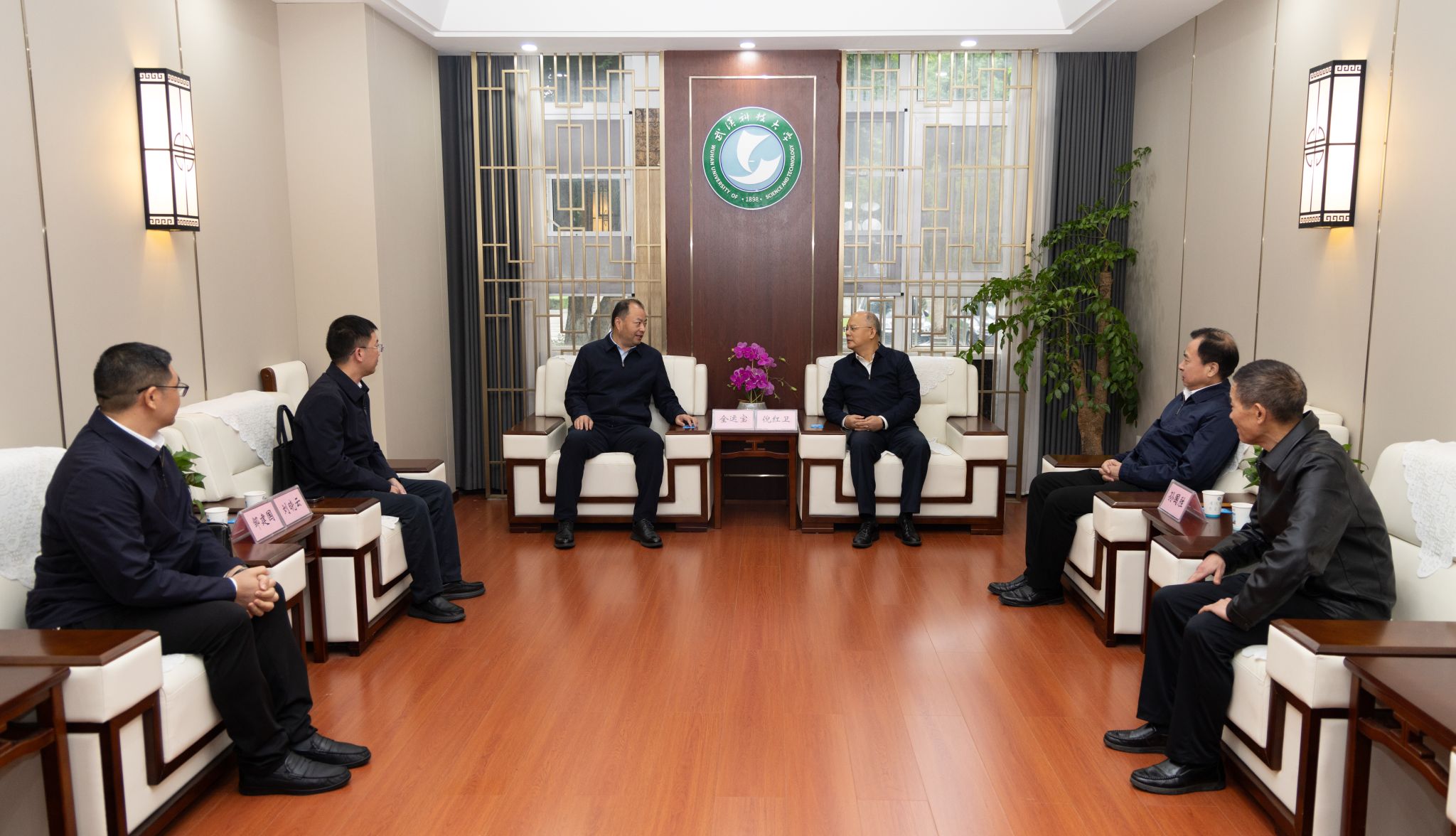 武科大網(wǎng)訊 10月20日,江陵縣委書記全運寶率黨政及企業(yè)家代表團(tuán)來訪我校,就深化校地合作、推動產(chǎn)學(xué)研深度融合等事宜座談。校黨委書記倪紅衛(wèi)會見全運寶一行,黨委副書記孫國勝出席座談會。