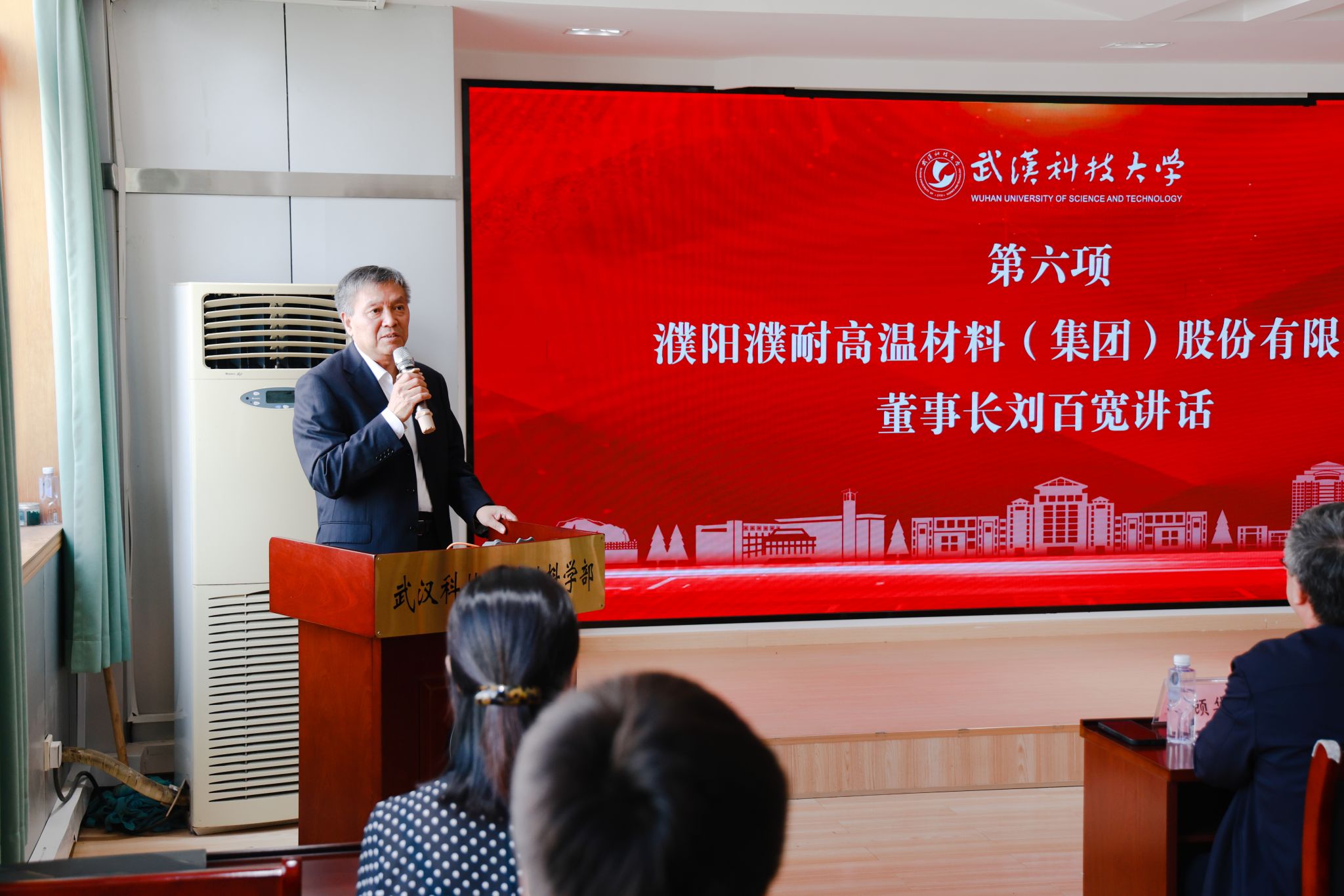 劉百寬在講話中回顧中國(guó)耐火材料行業(yè)的發(fā)展歷程,介紹了耐火材料行業(yè)智能化轉(zhuǎn)型趨勢(shì)與濮耐的企業(yè)發(fā)展。他指出,在我校材料學(xué)部設(shè)立“濮耐獎(jiǎng)學(xué)金”是履行社會(huì)責(zé)任、回饋母校培養(yǎng)、支持教育事業(yè)的重要體現(xiàn),希望通過(guò)這種方式,激勵(lì)同學(xué)們努力學(xué)習(xí)、勇于創(chuàng)新,將來(lái)成為耐火材料行業(yè)的棟梁之材。