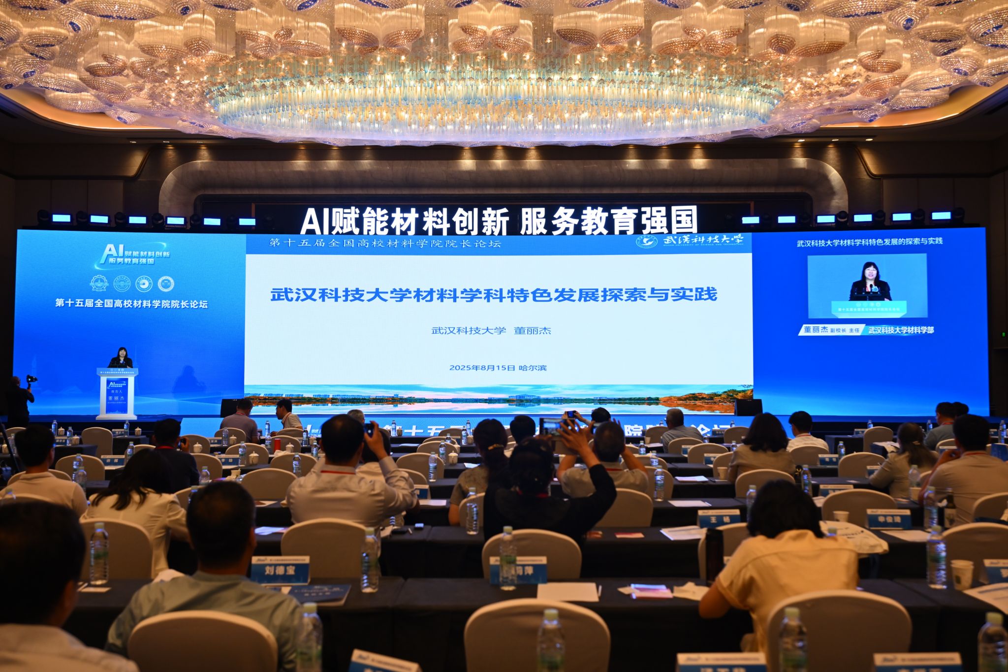 武科大網(wǎng)訊 8月14至16日,由哈爾濱工業(yè)大學(xué)、哈爾濱工程大學(xué)、哈爾濱理工大學(xué)、黑龍江科技大學(xué)共同主辦的第15屆全國高校材料學(xué)院院長論壇在哈爾濱舉行。論壇以“AI 賦能材料創(chuàng)新,服務(wù)教育強(qiáng)國”為主題,來自清華大學(xué)、北京大學(xué)、香港大學(xué)等230余所高校和科研院所的負(fù)責(zé)人和材料領(lǐng)域?qū)<覍W(xué)者等900余人齊聚一堂,共話材料未來。我校副校長董麗杰應(yīng)邀出席論壇并以《武漢科技大學(xué)材料學(xué)科特色發(fā)展探索與實踐》為題作大會報告。