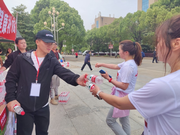 志愿者為選手遞水 付穎芳攝