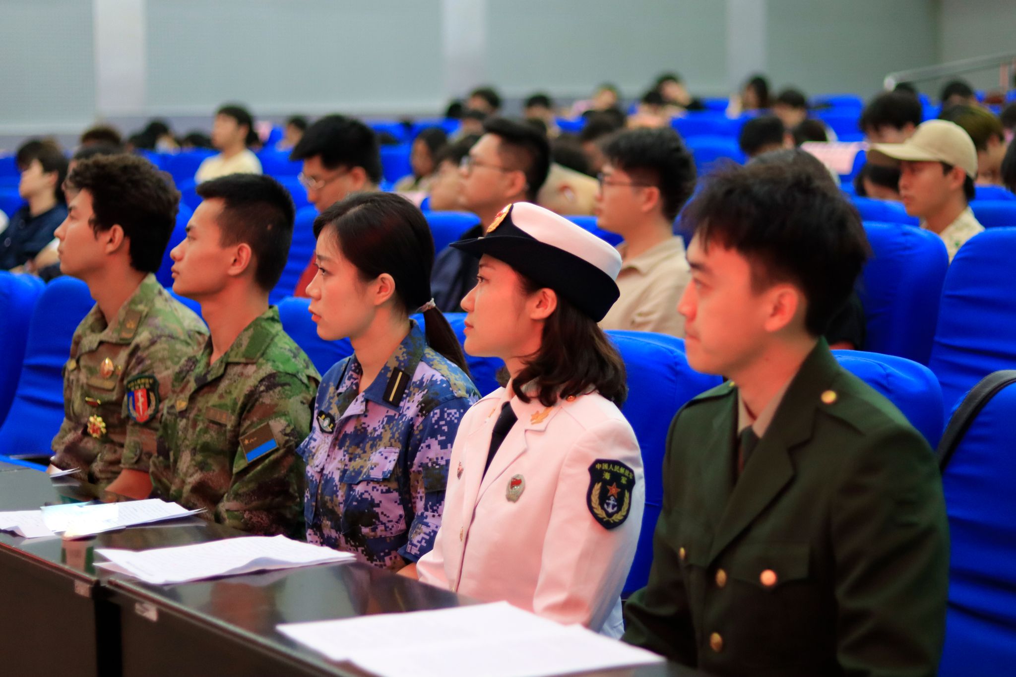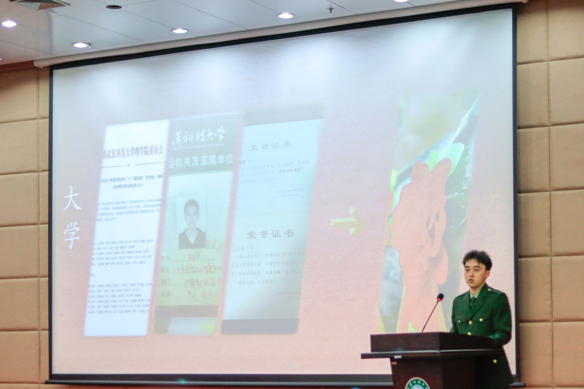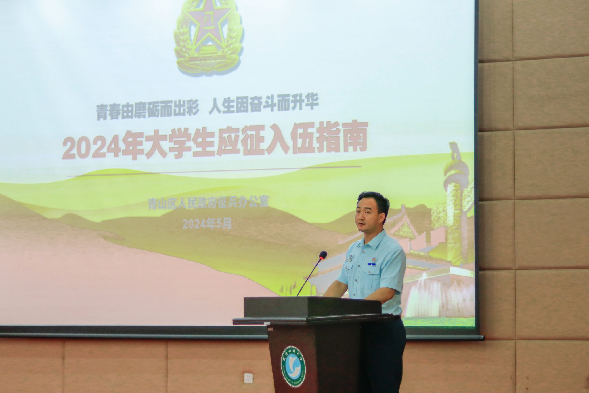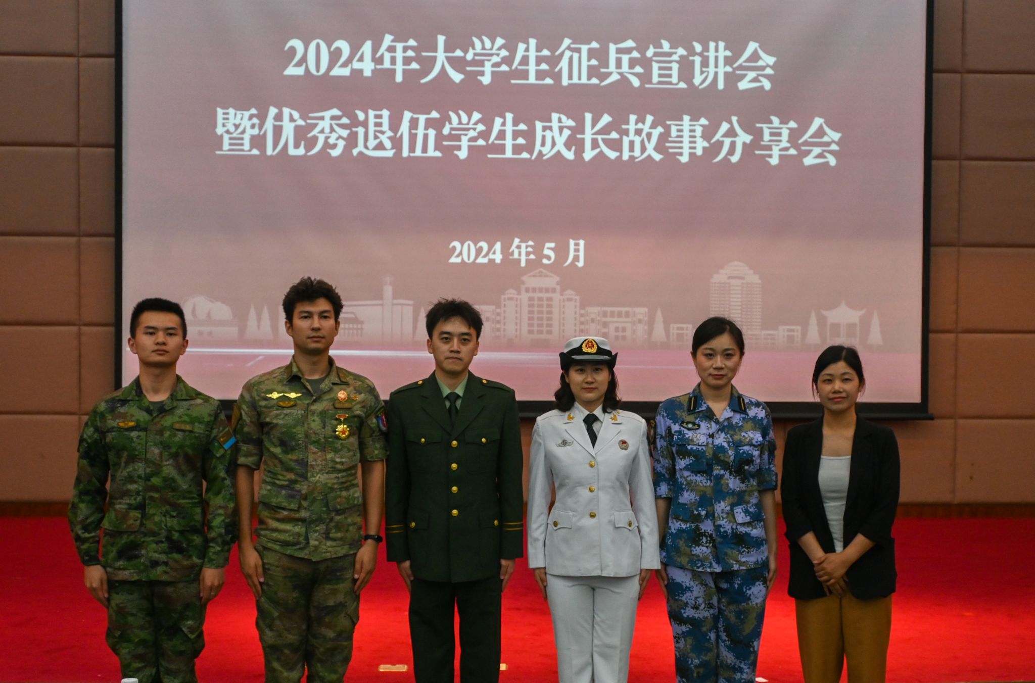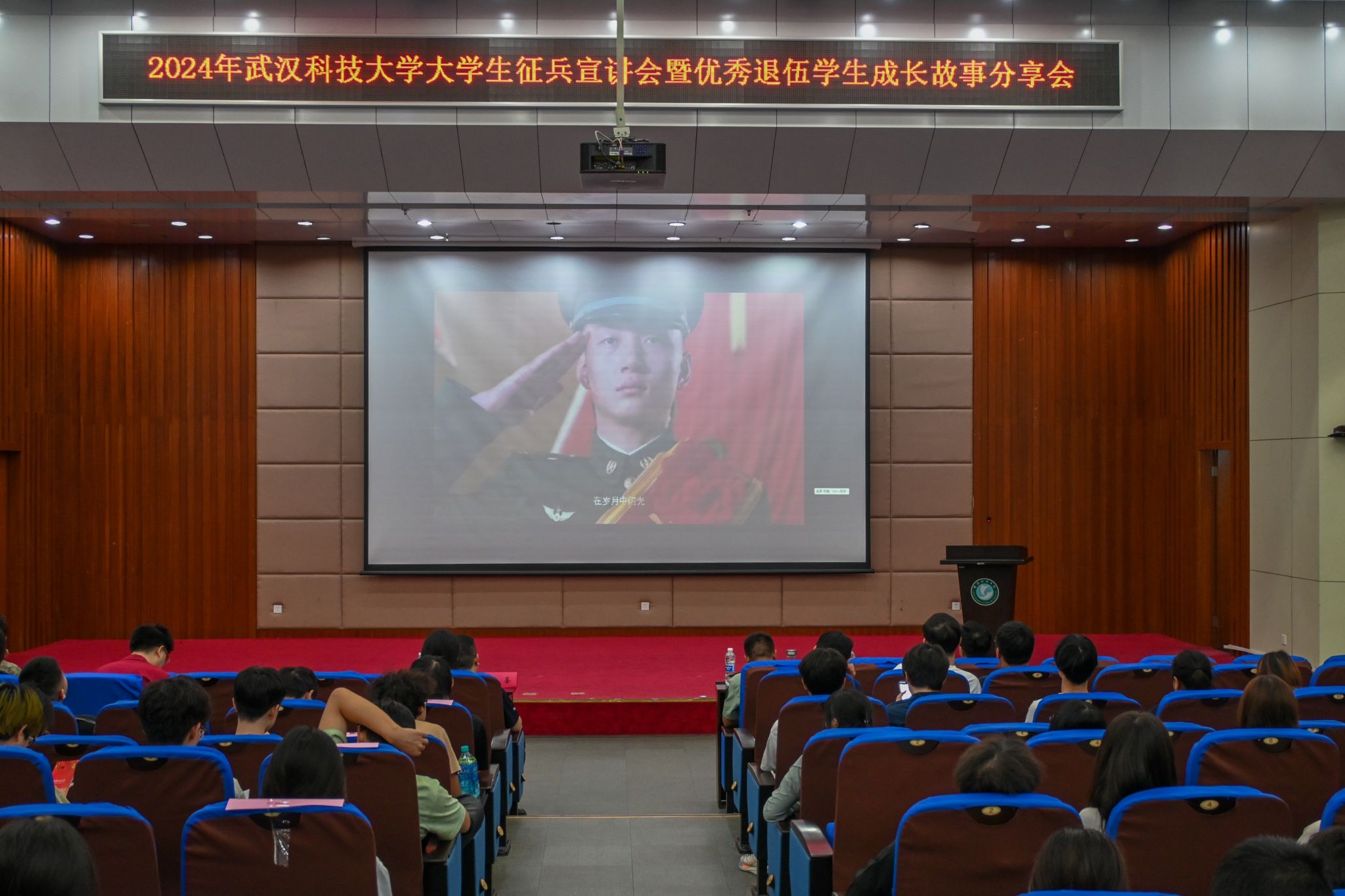 5月22日晚,武漢科技大學(xué)2024年征兵宣講會(huì)暨優(yōu)秀退伍學(xué)生成長(zhǎng)故事分享會(huì)在我校黃家湖校區(qū)崇實(shí)會(huì)堂舉行。黨委學(xué)生工作部副部長(zhǎng)蔡鑒致辭。青山區(qū)人民武裝部政委李興化講話。優(yōu)秀退伍大學(xué)生代表彭靜怡、郭志權(quán)、馬煜焜、王陽(yáng)、艾尼卡爾·阿斯卡爾依次上臺(tái)分享自己的軍旅生活。青山區(qū)人民武裝部參謀王思做入伍政策宣講。(馬茜云 黃宏杰)