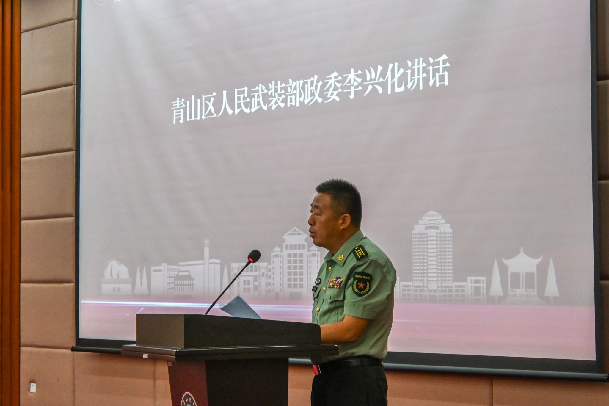 青山區(qū)人民武裝部政委李興化講話 馬茜云攝