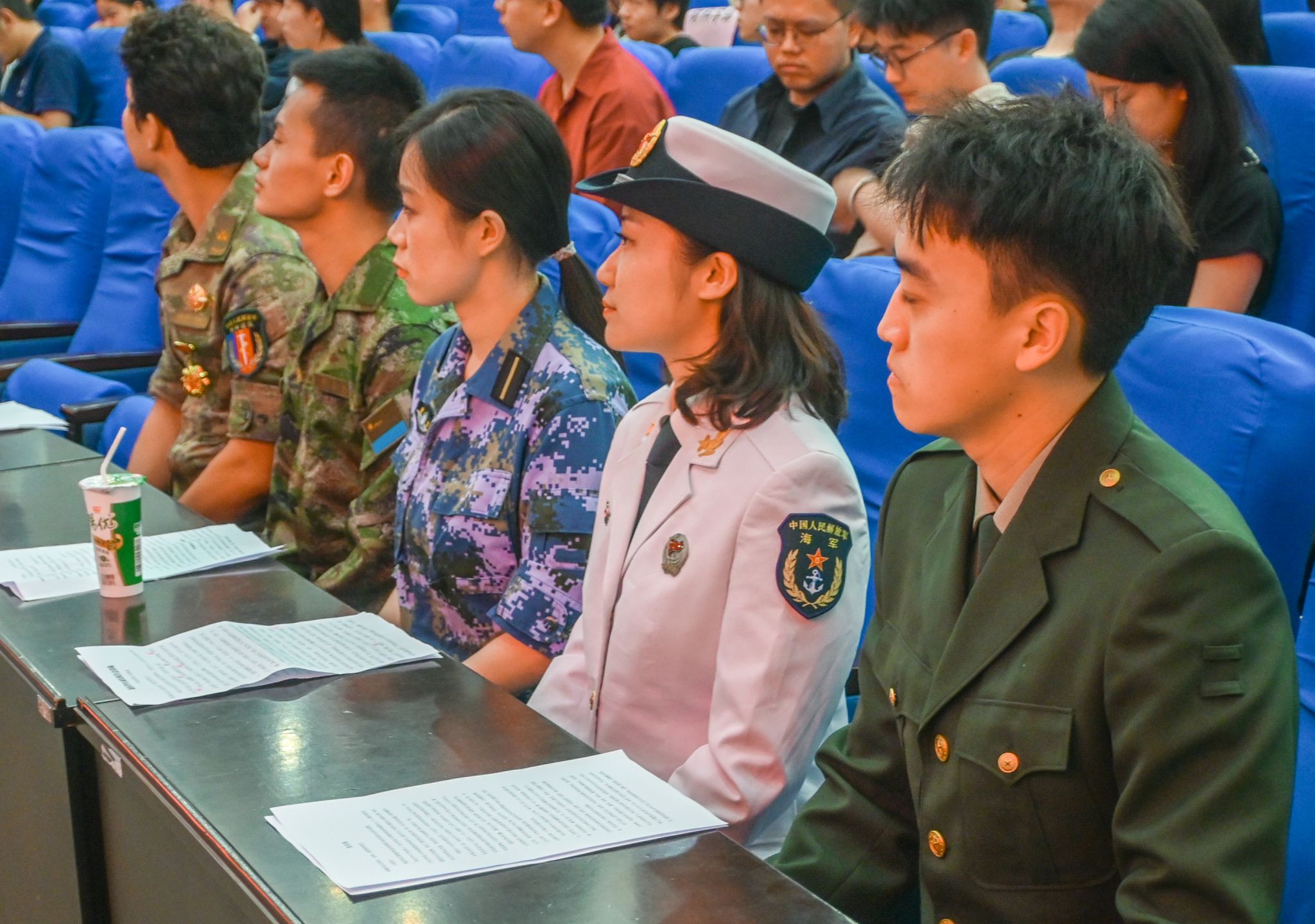 退伍學(xué)生代表收聽(tīng)發(fā)言 黃宏杰攝