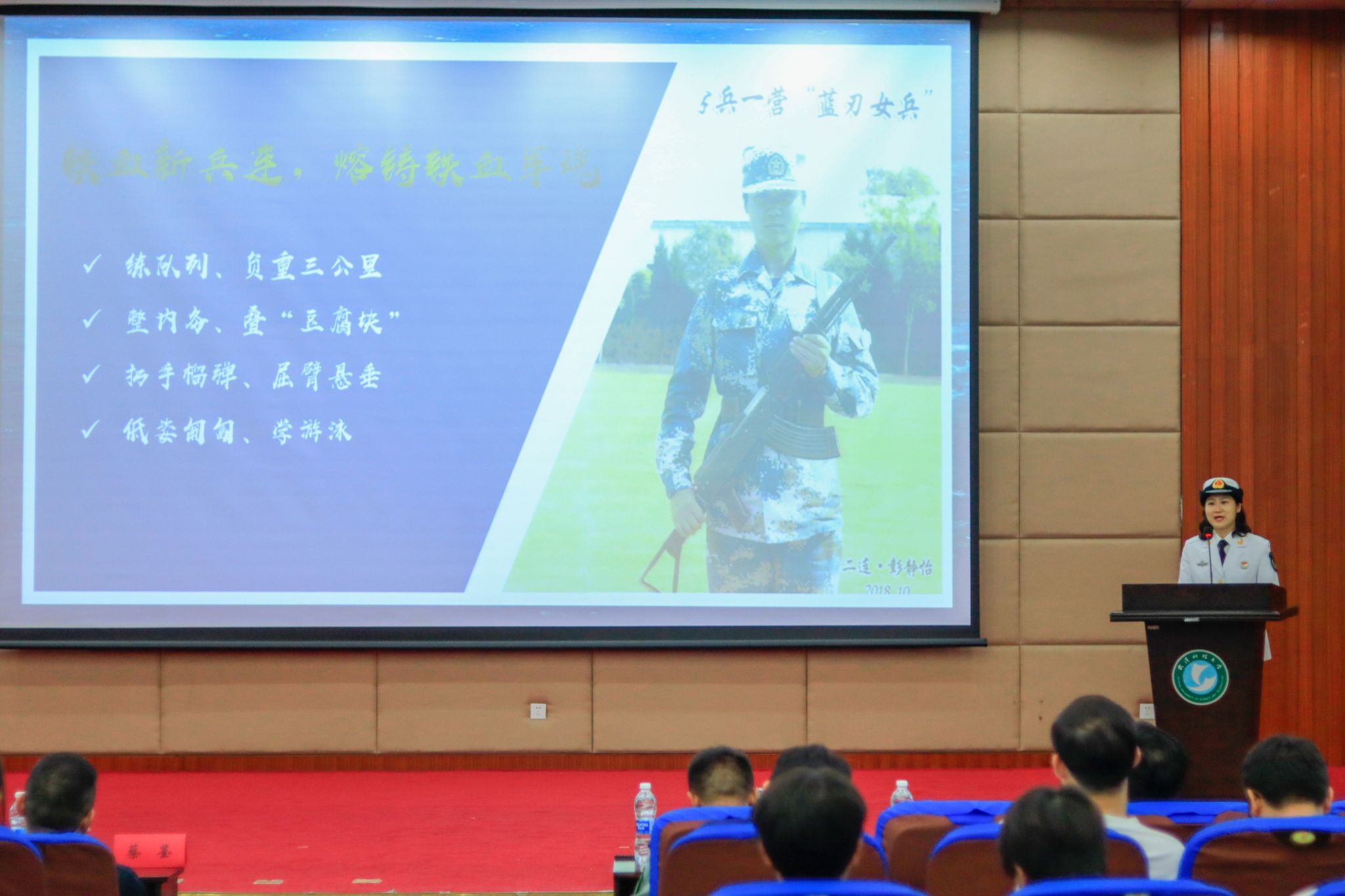 優(yōu)秀退伍大學(xué)生彭靜怡上臺(tái)宣講 馬茜云攝