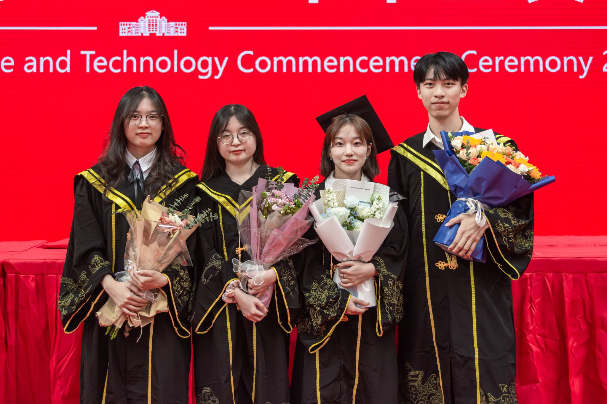 學生手捧花合影 吳磊攝
