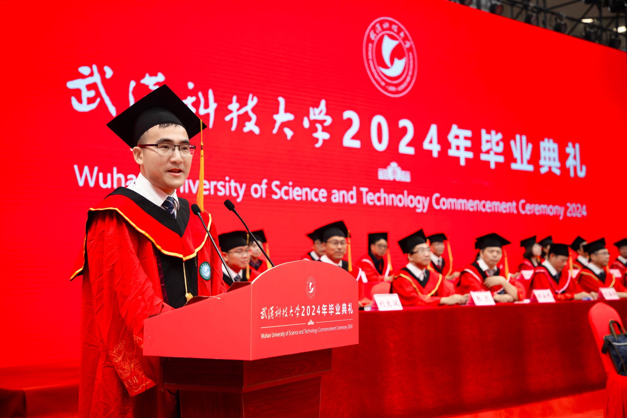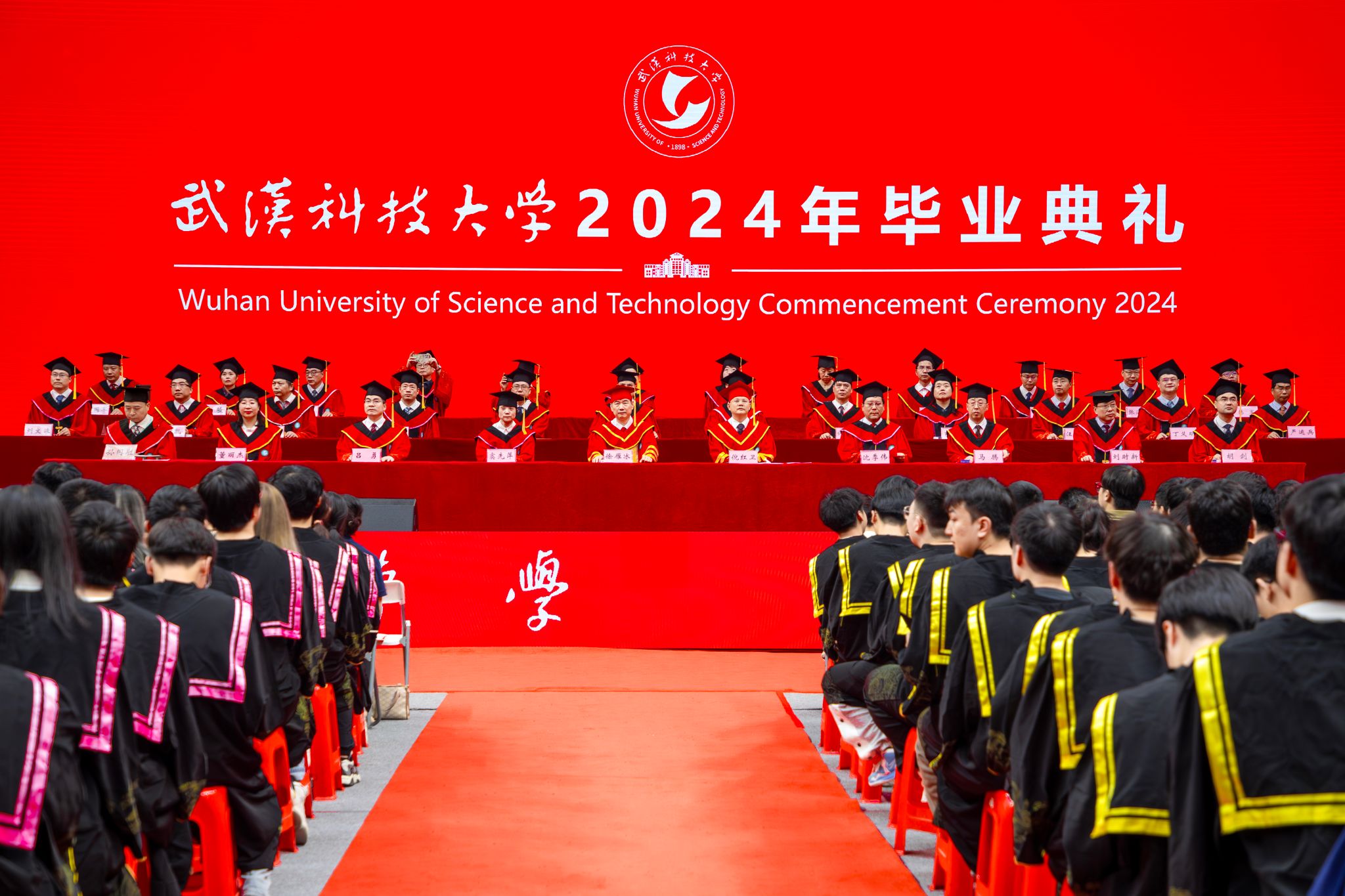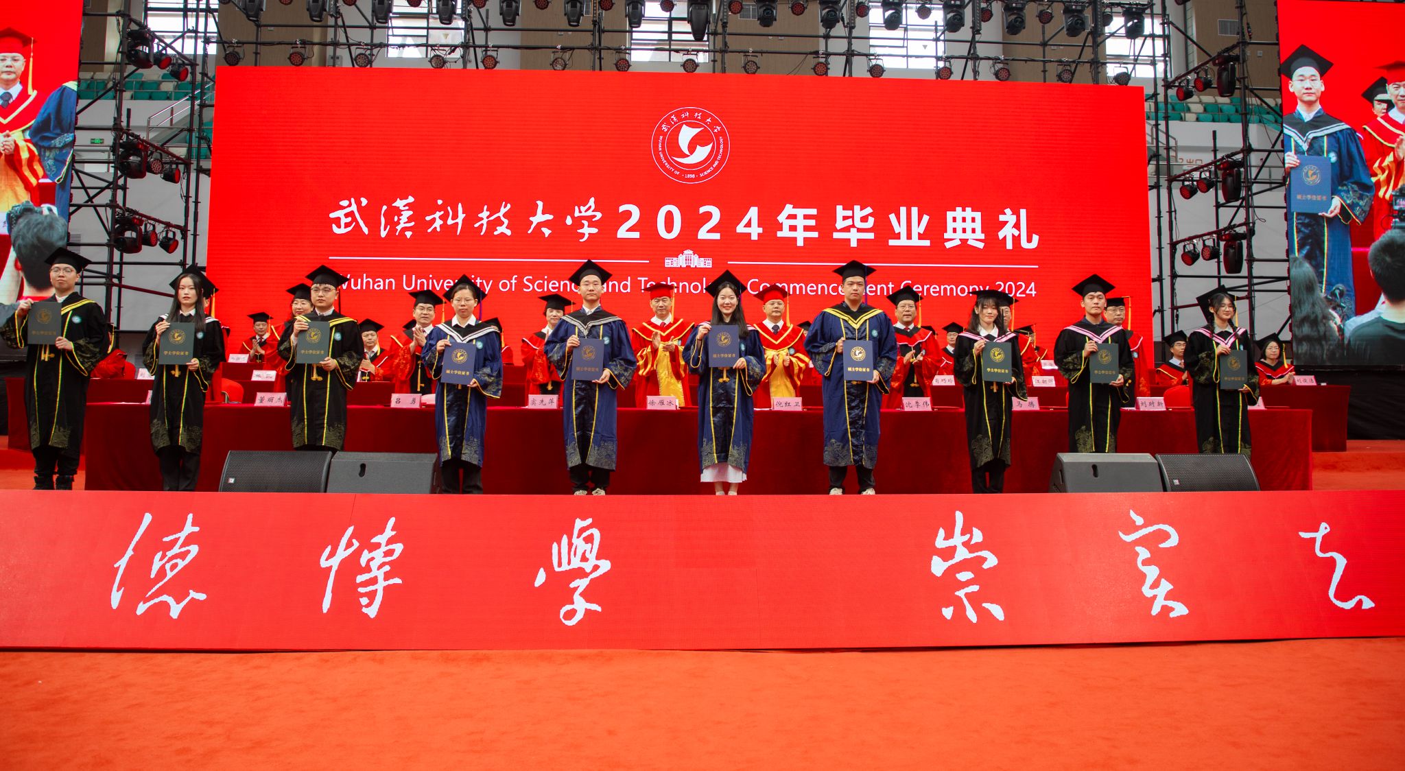 6月14日上午8:00,我校2024年畢業典禮于湖區沁湖體育館舉行。副校長呂勇宣讀表彰決定,全體校領導為優秀畢業生代表授學位,為校長獎章獲得者頒獎,為校友聯絡員代表頒發聘書。全體師生觀看《畢業寄語》視頻,畢業生代表、資源與環境工程學院彭佳琪發言,教師代表、材料學部付綠平老師發言。最后校長倪紅衛講話,全體合唱校歌。(吳磊)