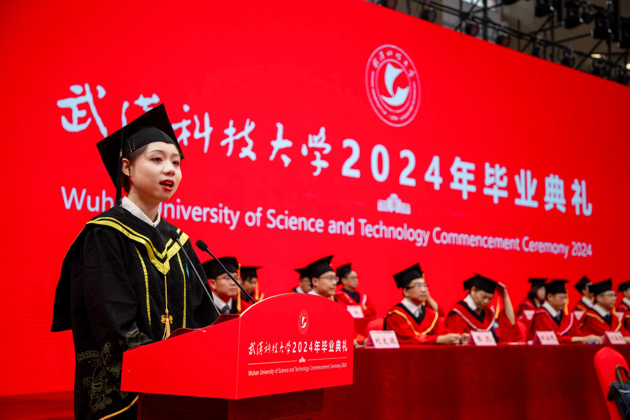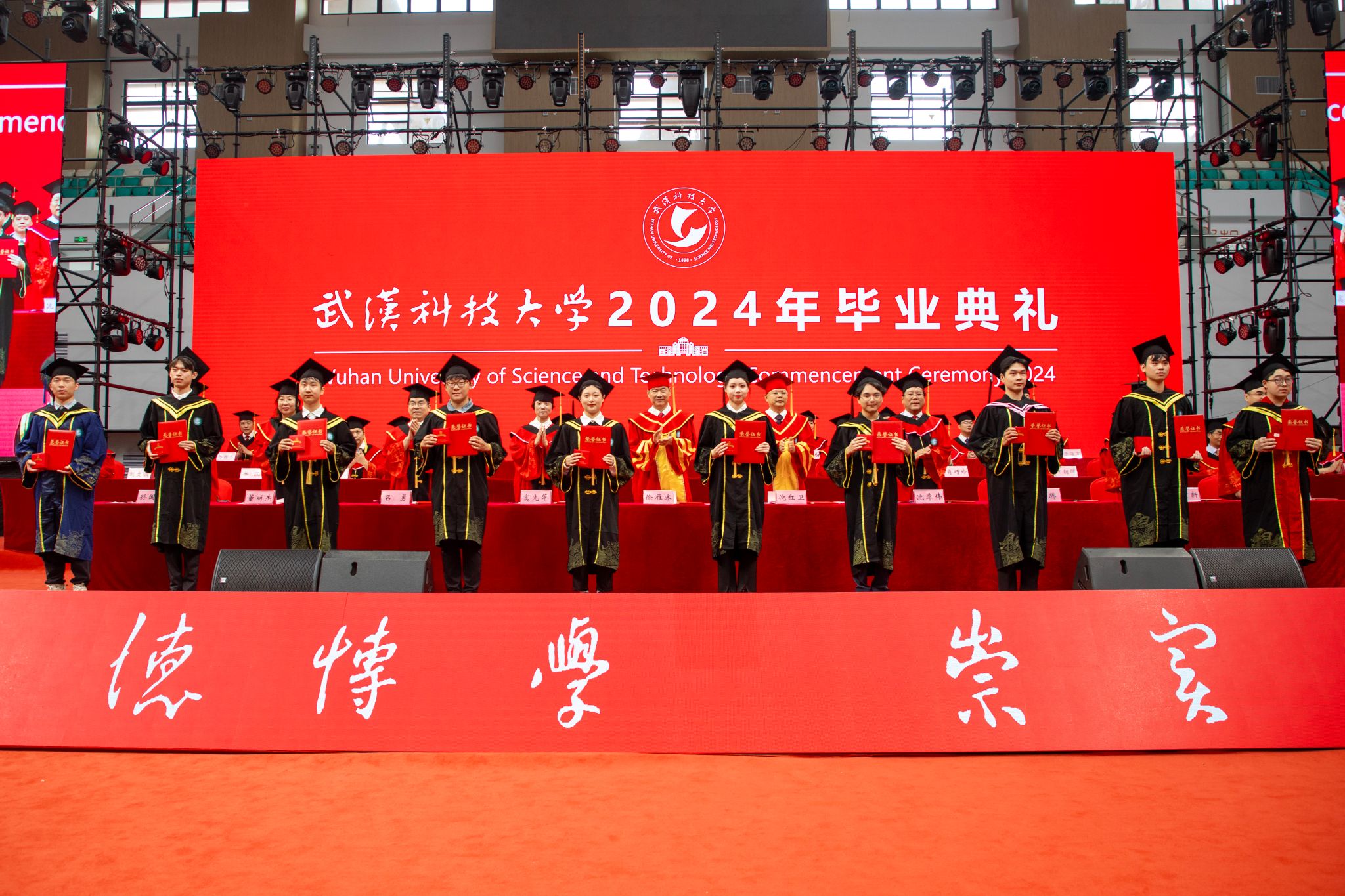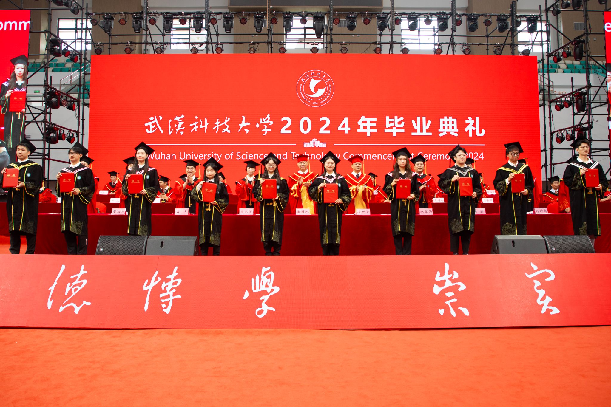 6月14日上午8:00,我校2024年畢業典禮于湖區沁湖體育館舉行。副校長呂勇宣讀表彰決定,全體校領導為優秀畢業生代表授學位,為校長獎章獲得者頒獎,為校友聯絡員代表頒發聘書。全體師生觀看《畢業寄語》視頻,畢業生代表、資源與環境工程學院彭佳琪發言,教師代表、材料學部付綠平老師發言。最后校長倪紅衛講話,全體合唱校歌。(吳磊)