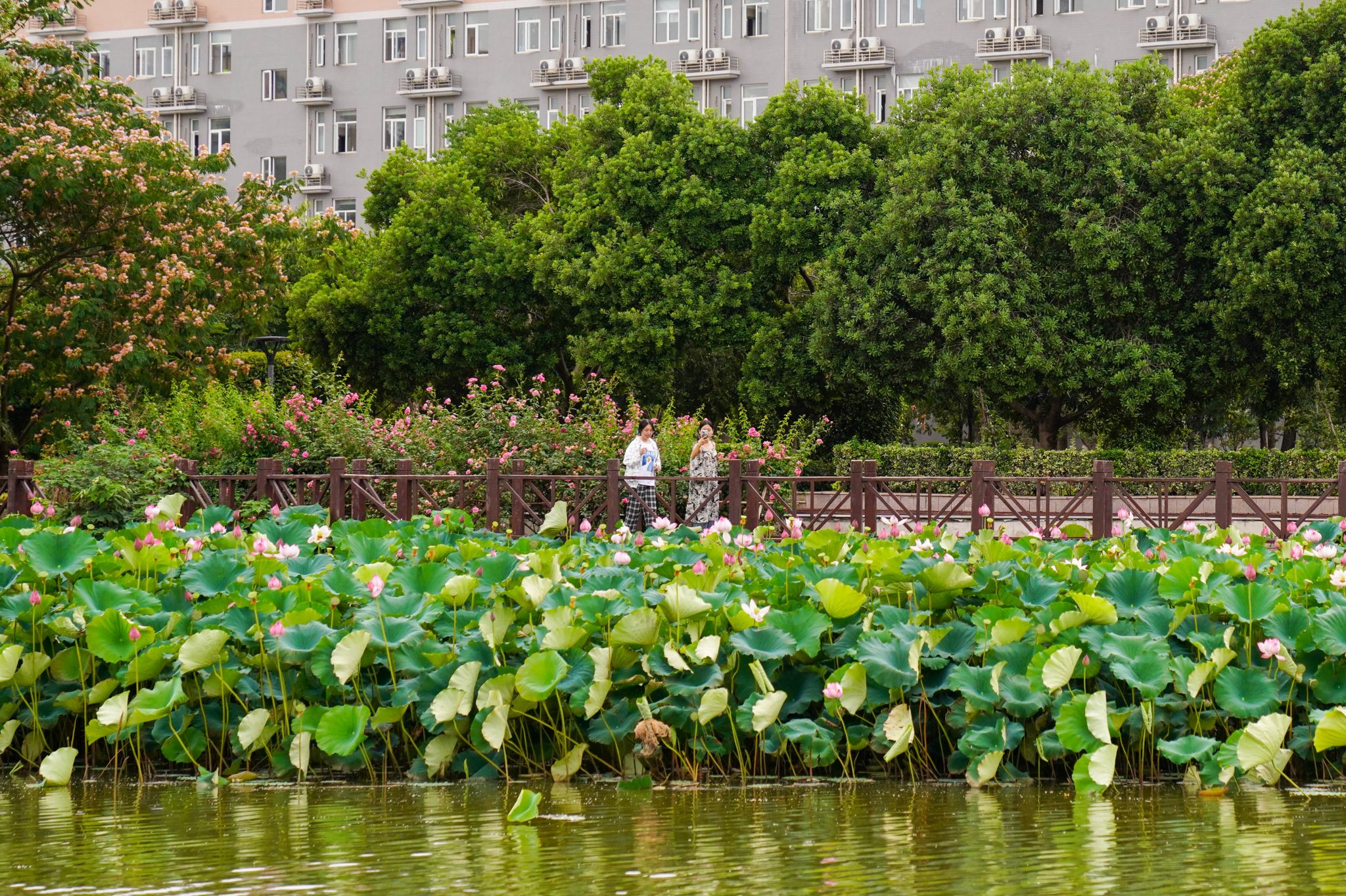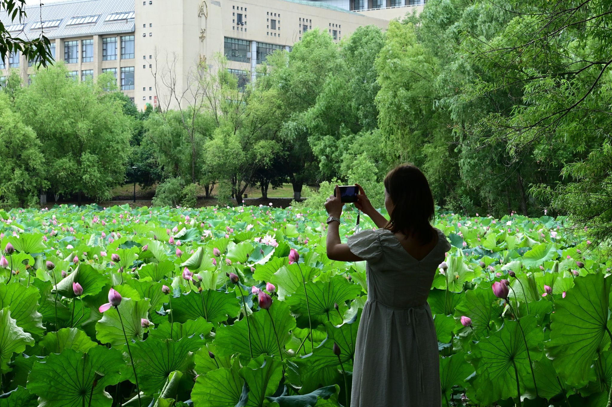 夏至?xí)r節(jié),一場(chǎng)細(xì)雨過后,荷塘仿佛被喚醒了一般,生機(jī)勃勃。荷葉寬大而翠綠,上面還殘留著雨水的痕跡,仿佛剛剛被雨水親吻過一般。花瓣上掛著晶瑩的水珠,每一朵荷花宛如一個(gè)害羞的少女,臉頰上帶著紅暈,嬌艷欲滴。許多師生紛紛去往沁湖觀賞拍照。(馬一超)