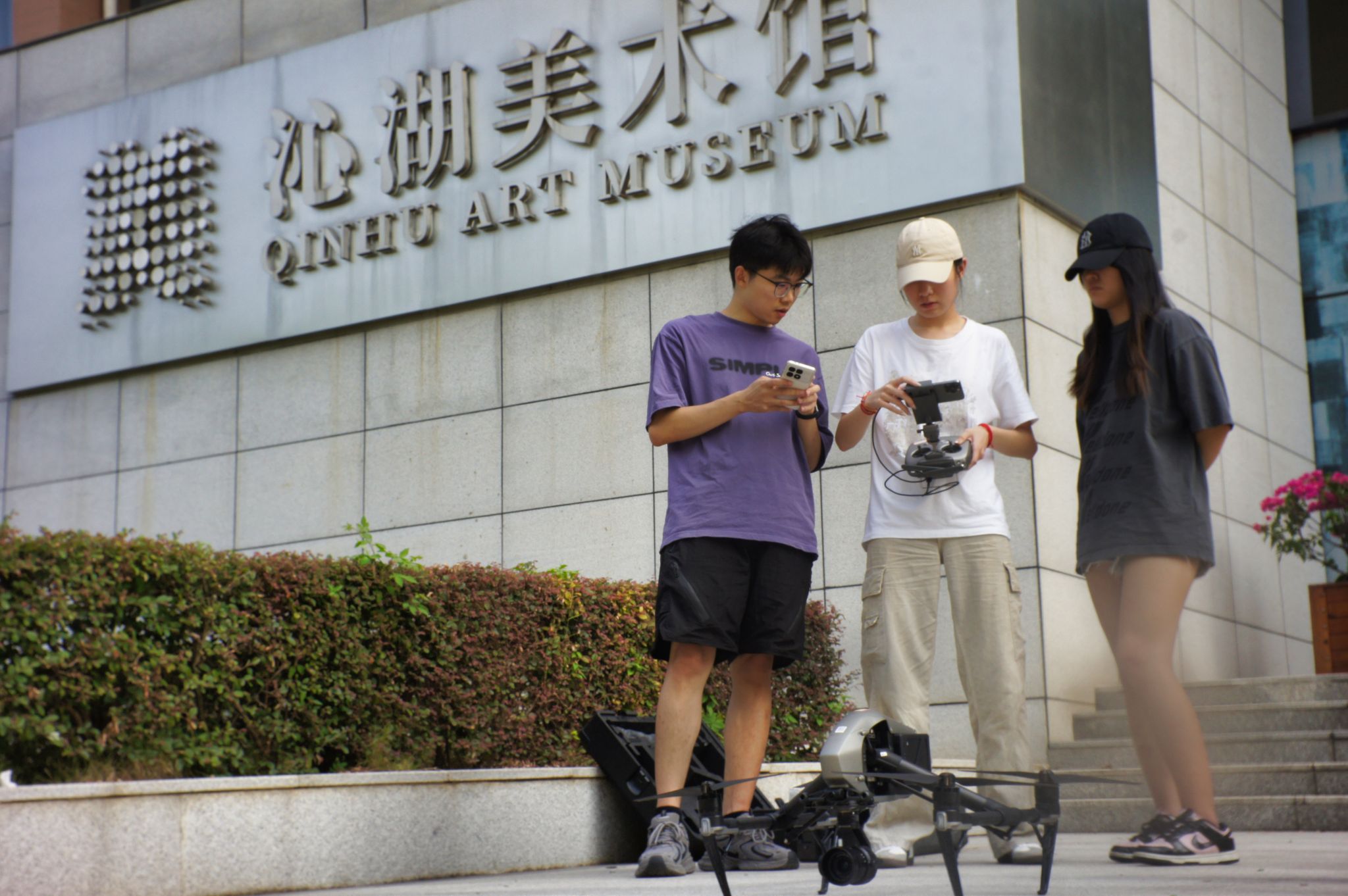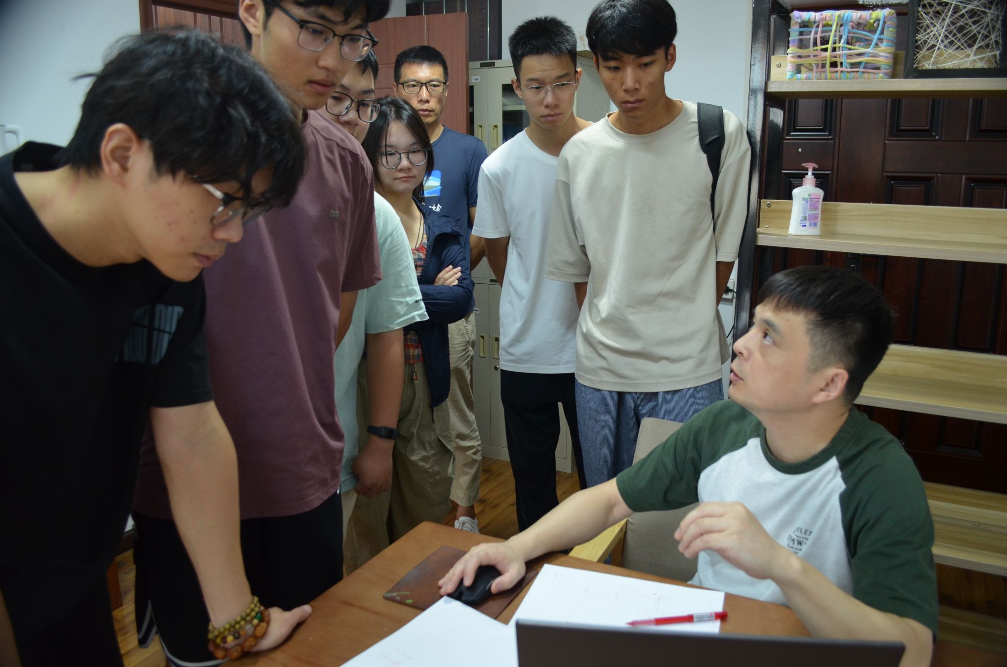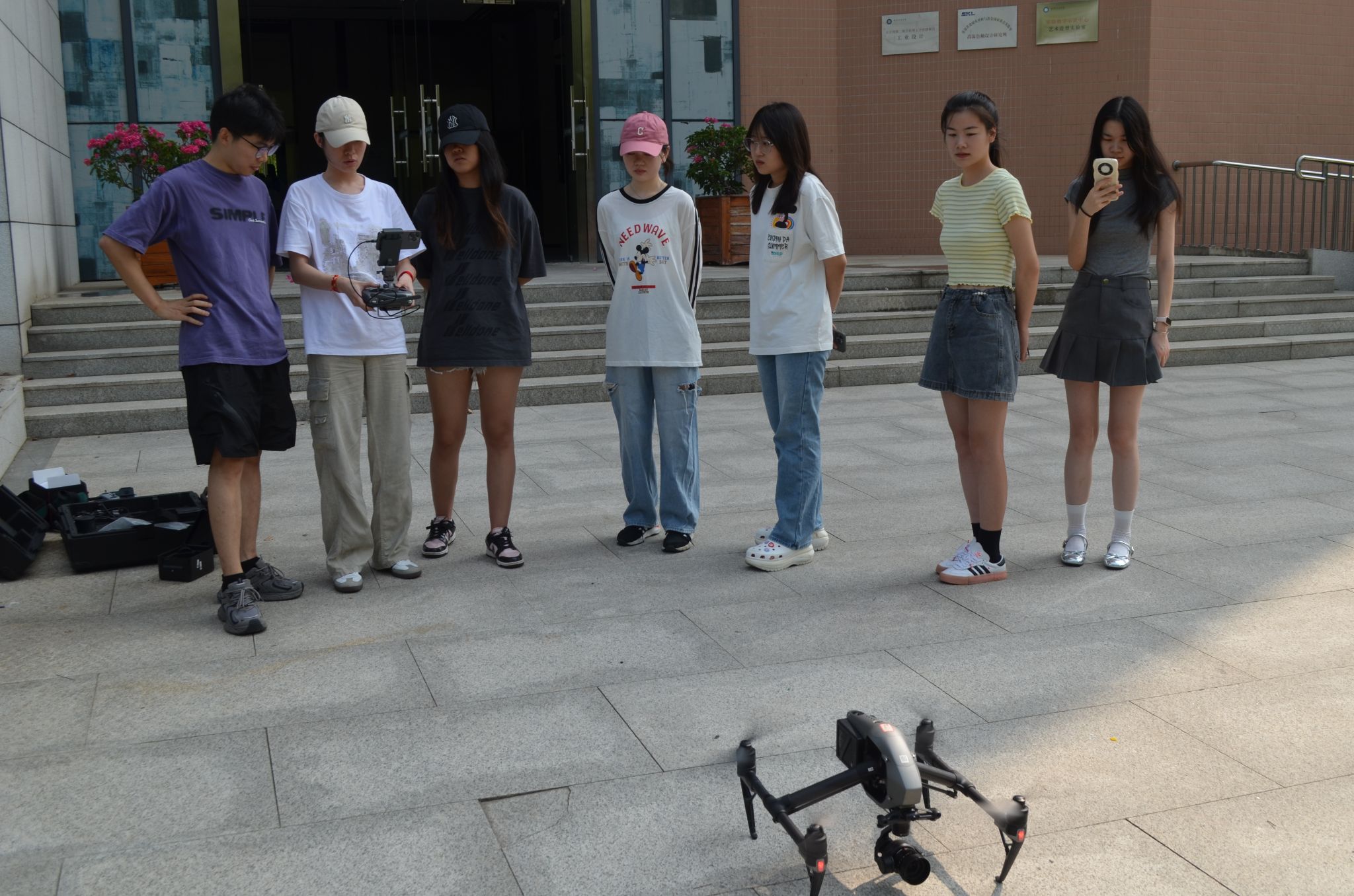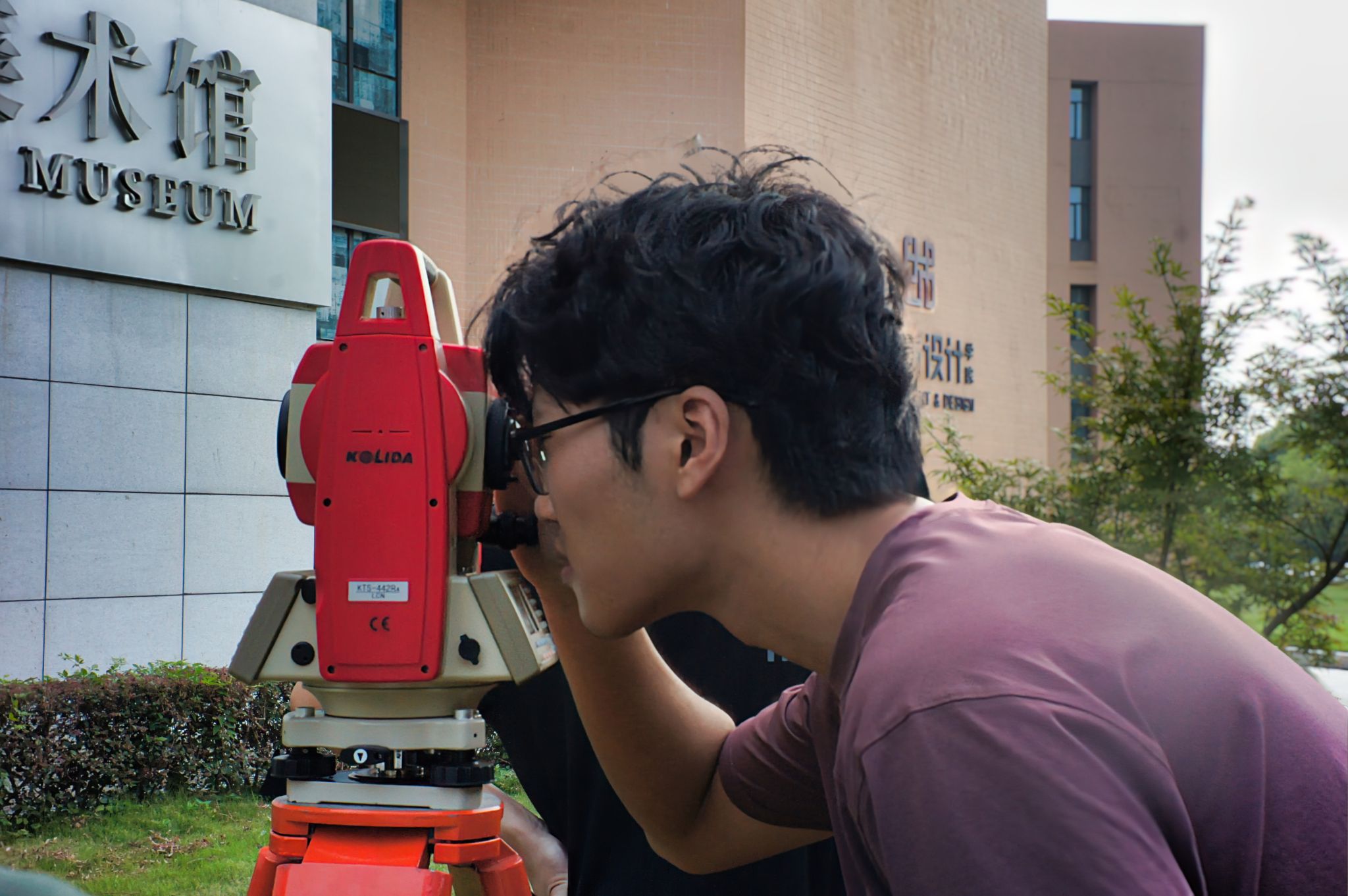 9月5日在教七樓215辦公室,羅斌老師對著電腦為參加的學生講解軟件的使用。緊接著前往樓下草坪處講解全站儀(全站型電子速測儀)和無人機的使用,學生們分為兩組進行學習,全站儀由羅斌老師講解,無人機由研究生李婧維講解。(王翔宇)