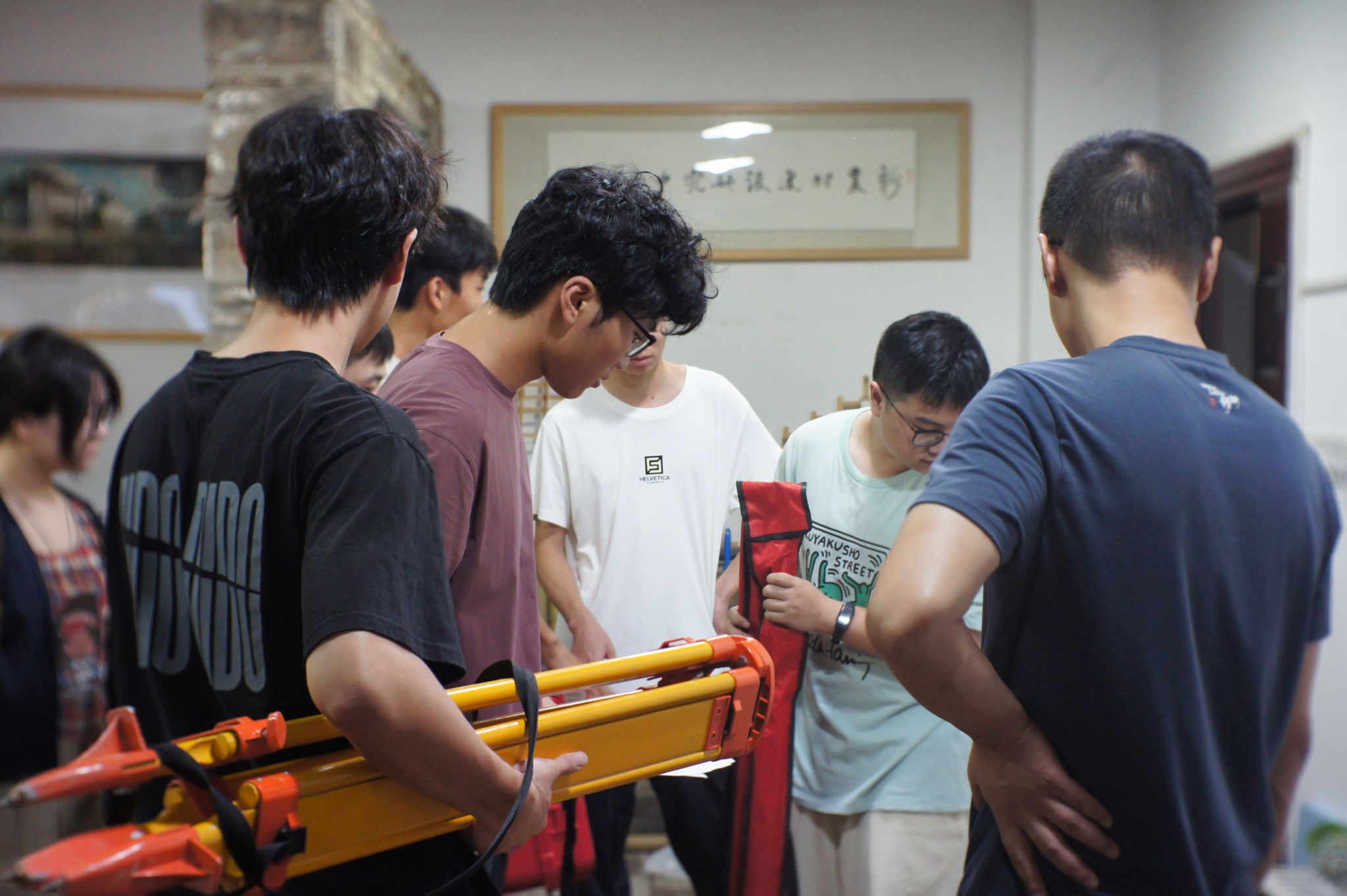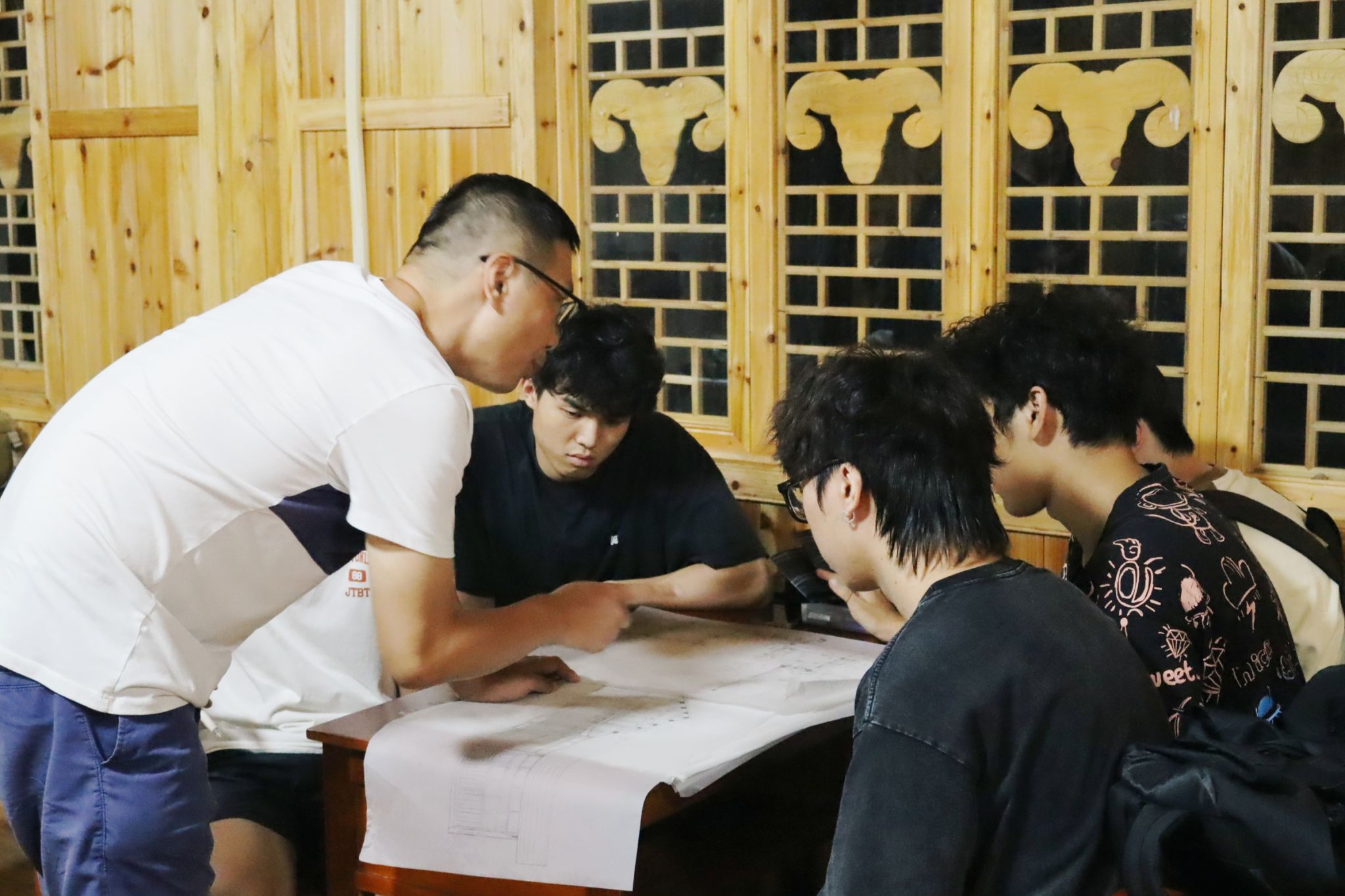 李一霏老師、許洪超老師在對總圖組學生進行勘測前指導 李芳攝