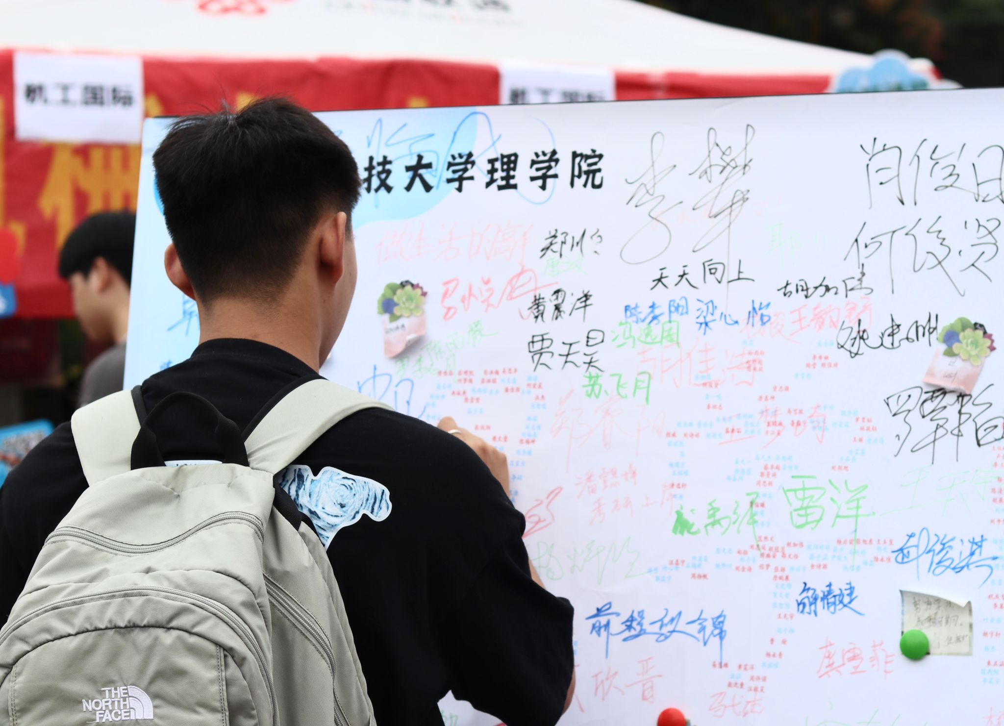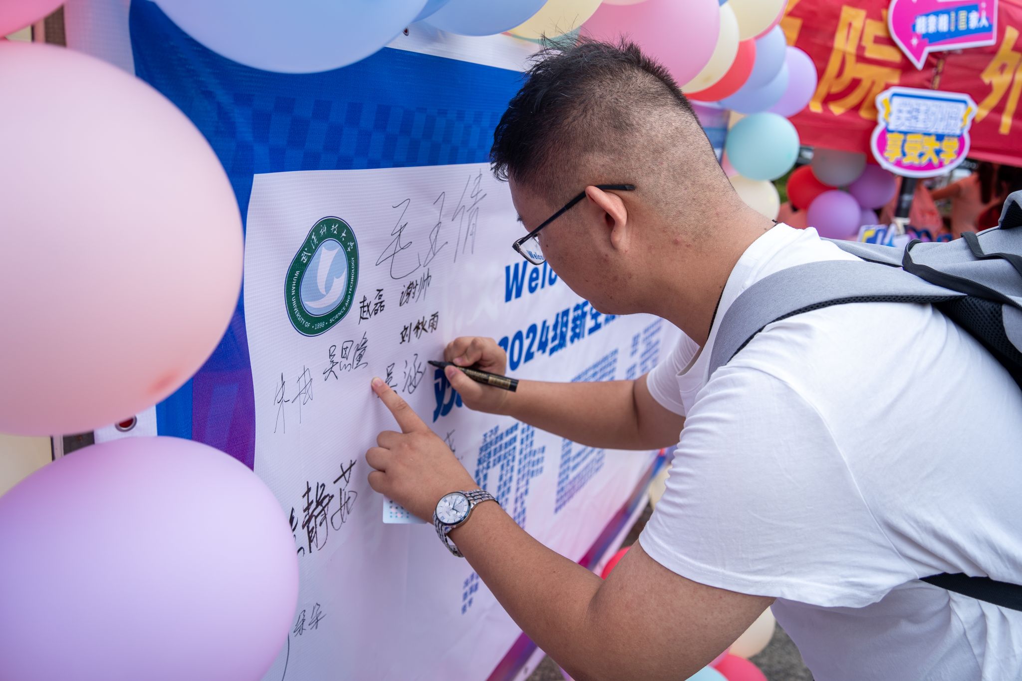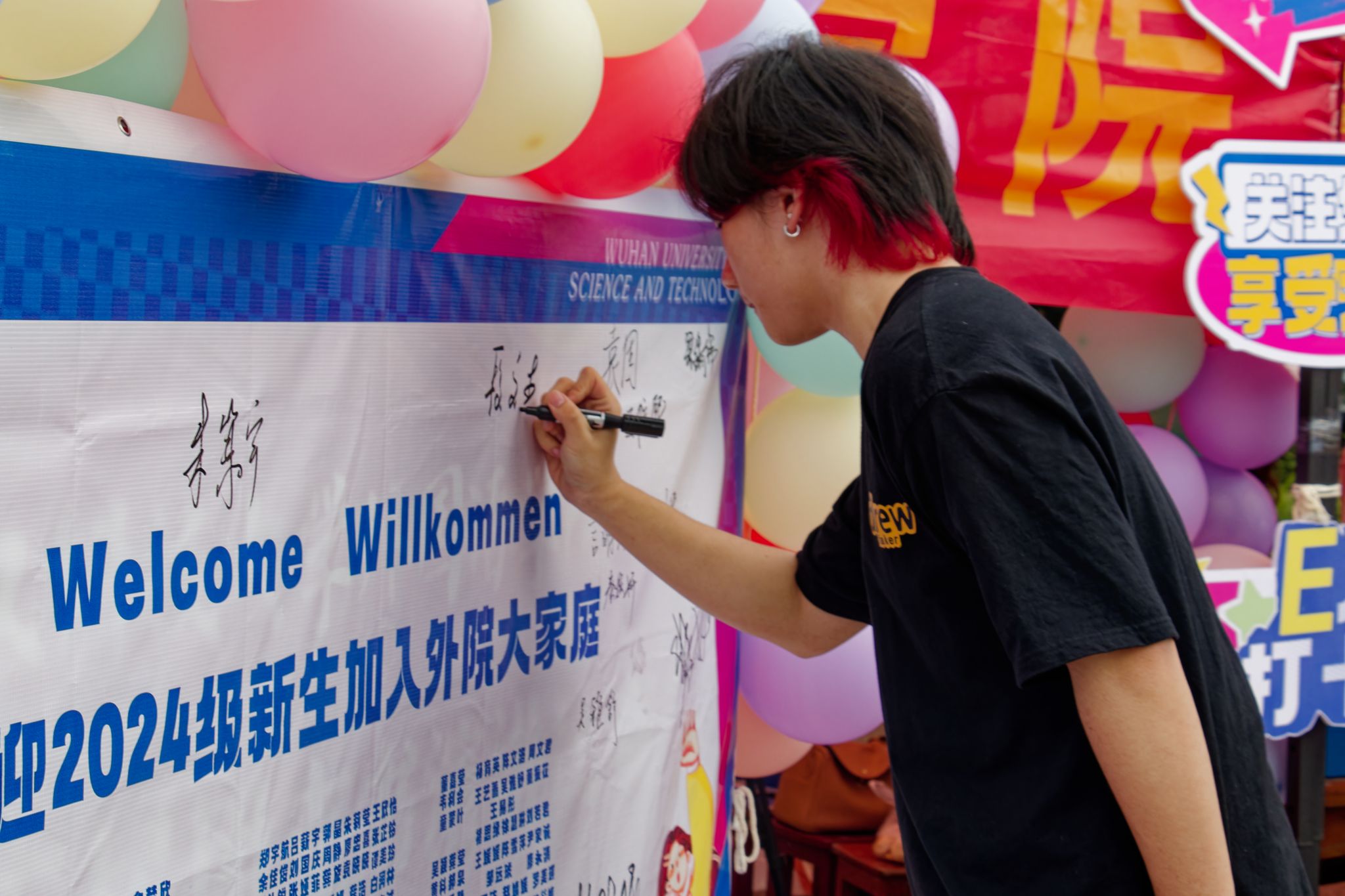 外國語學院新生在簽名板上簽名 孫正恒攝