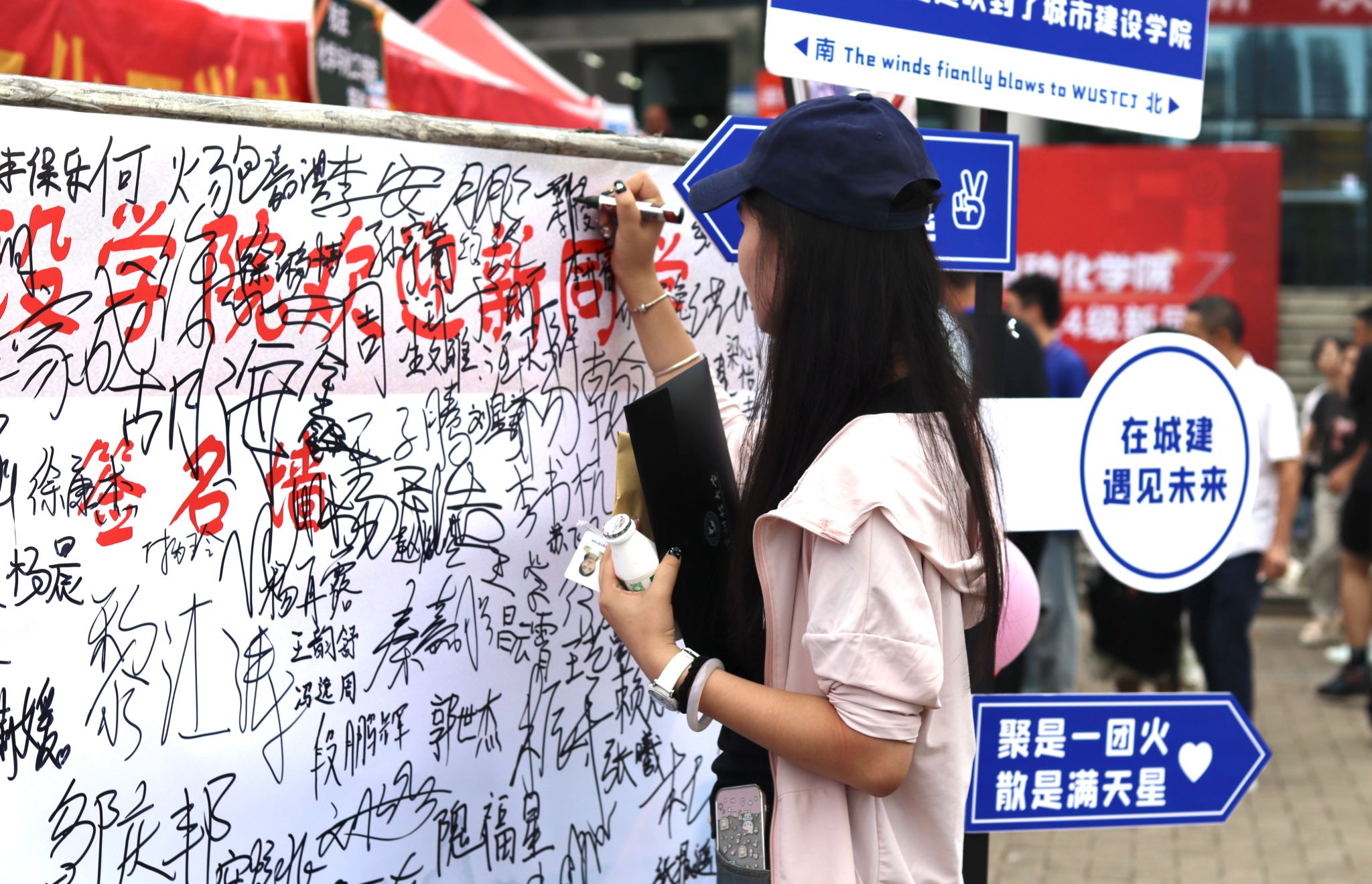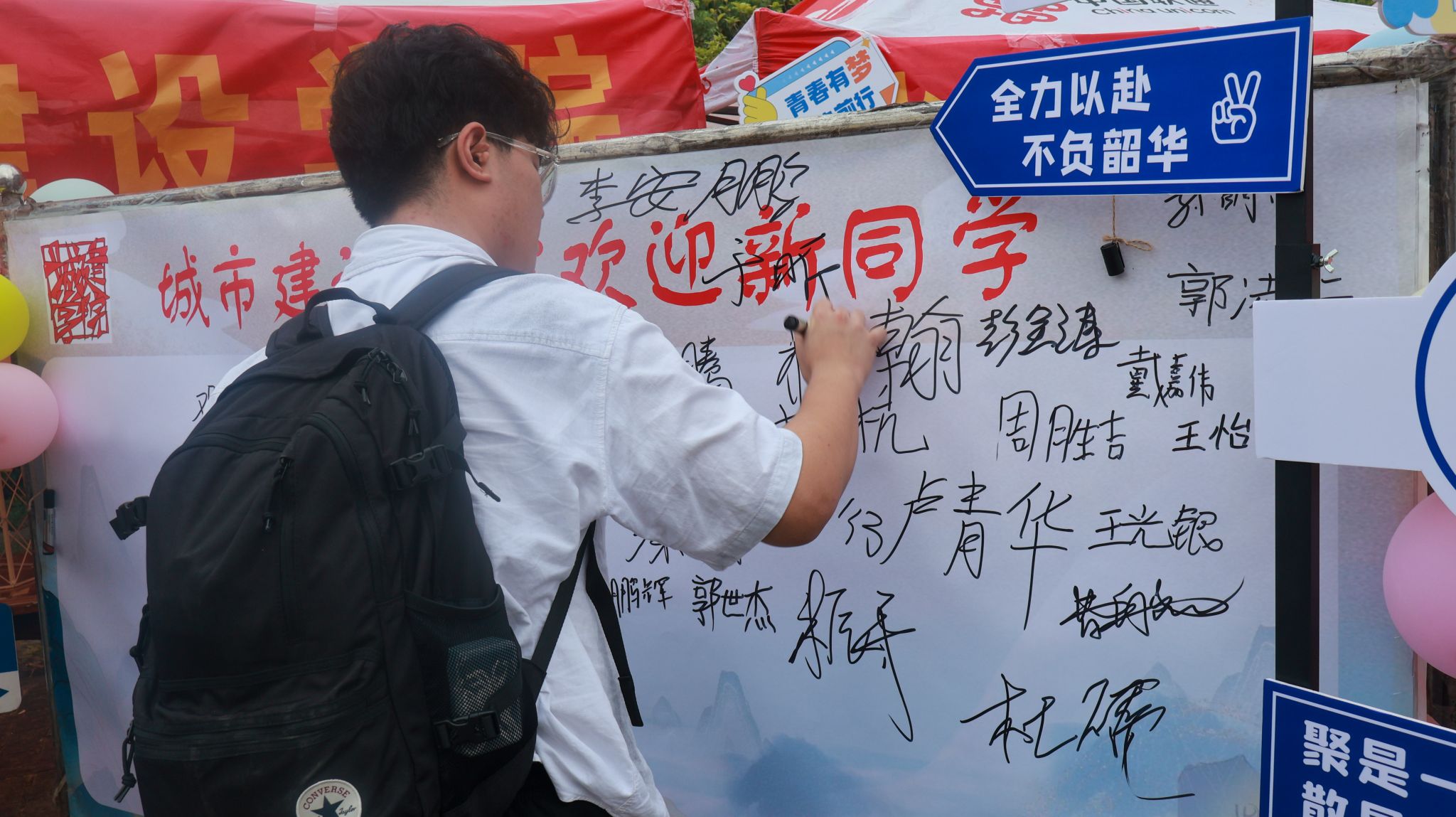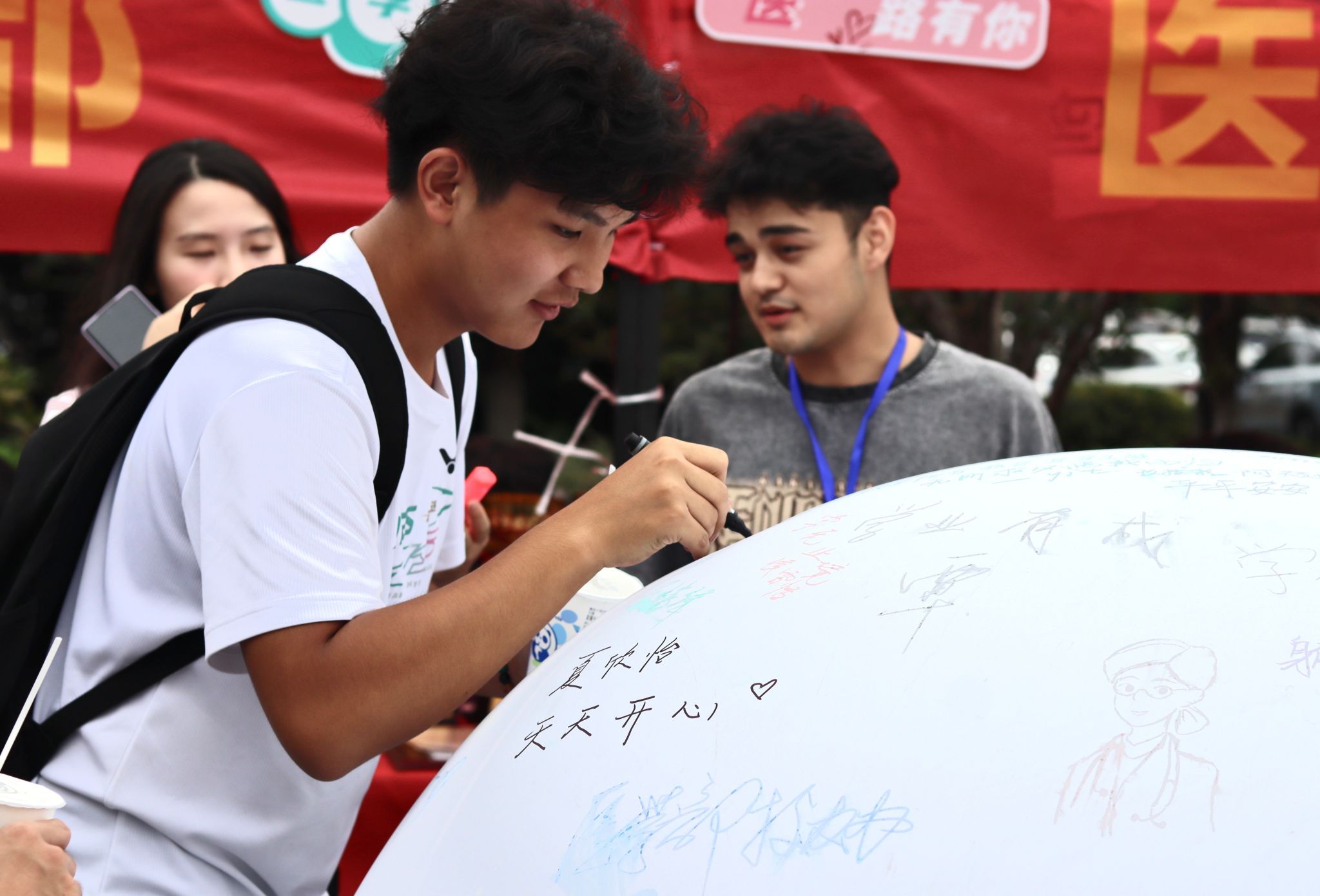 外國語學院新生在簽名板上簽名 孫正恒攝