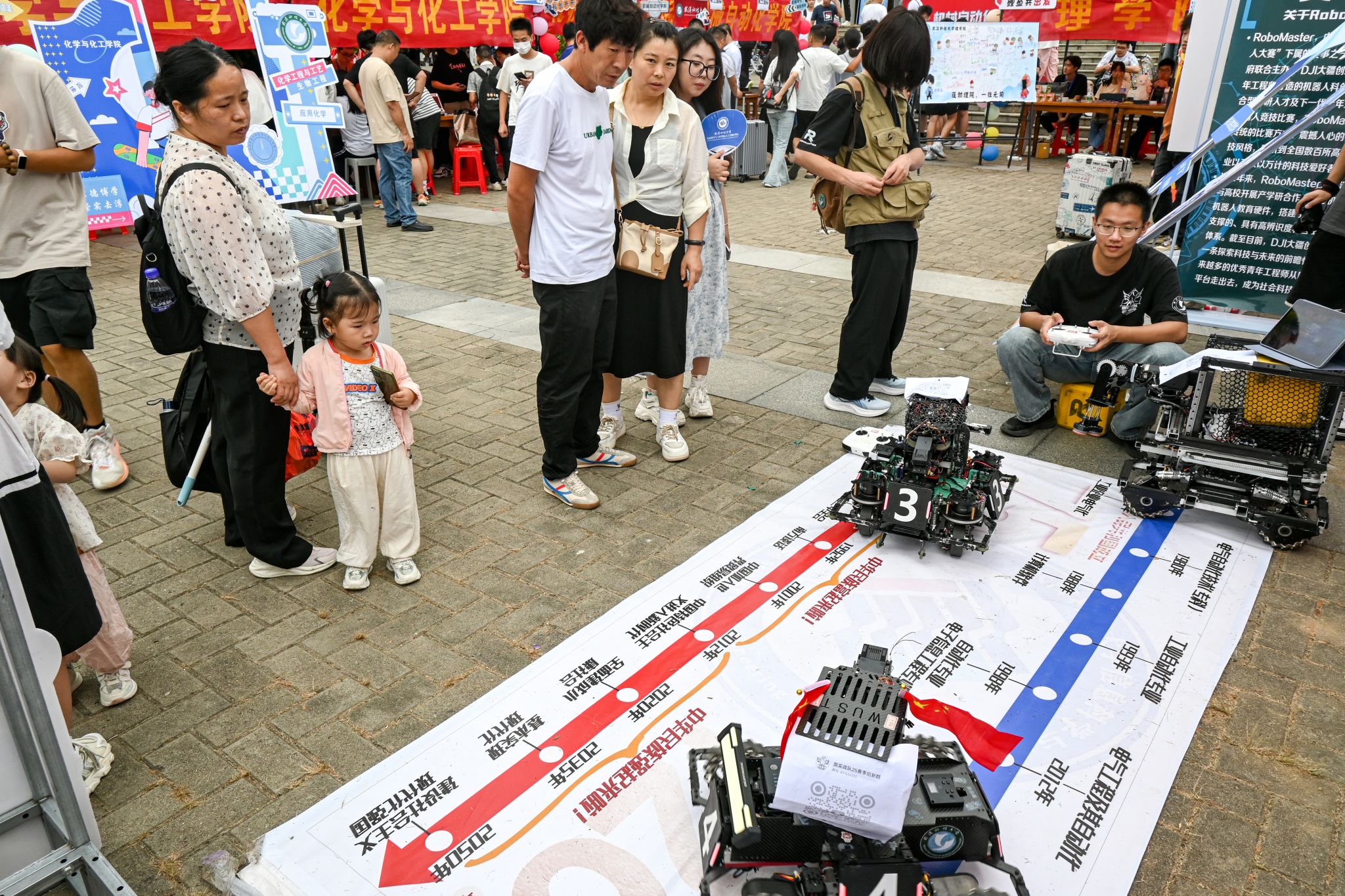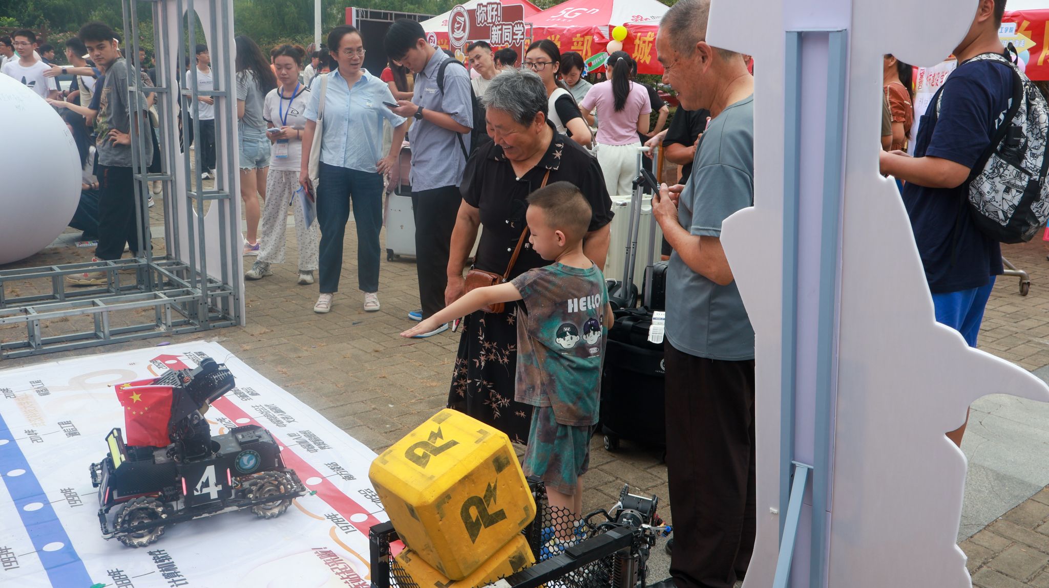 新生以及金屬觀看崇實步兵機器人 李周陽攝