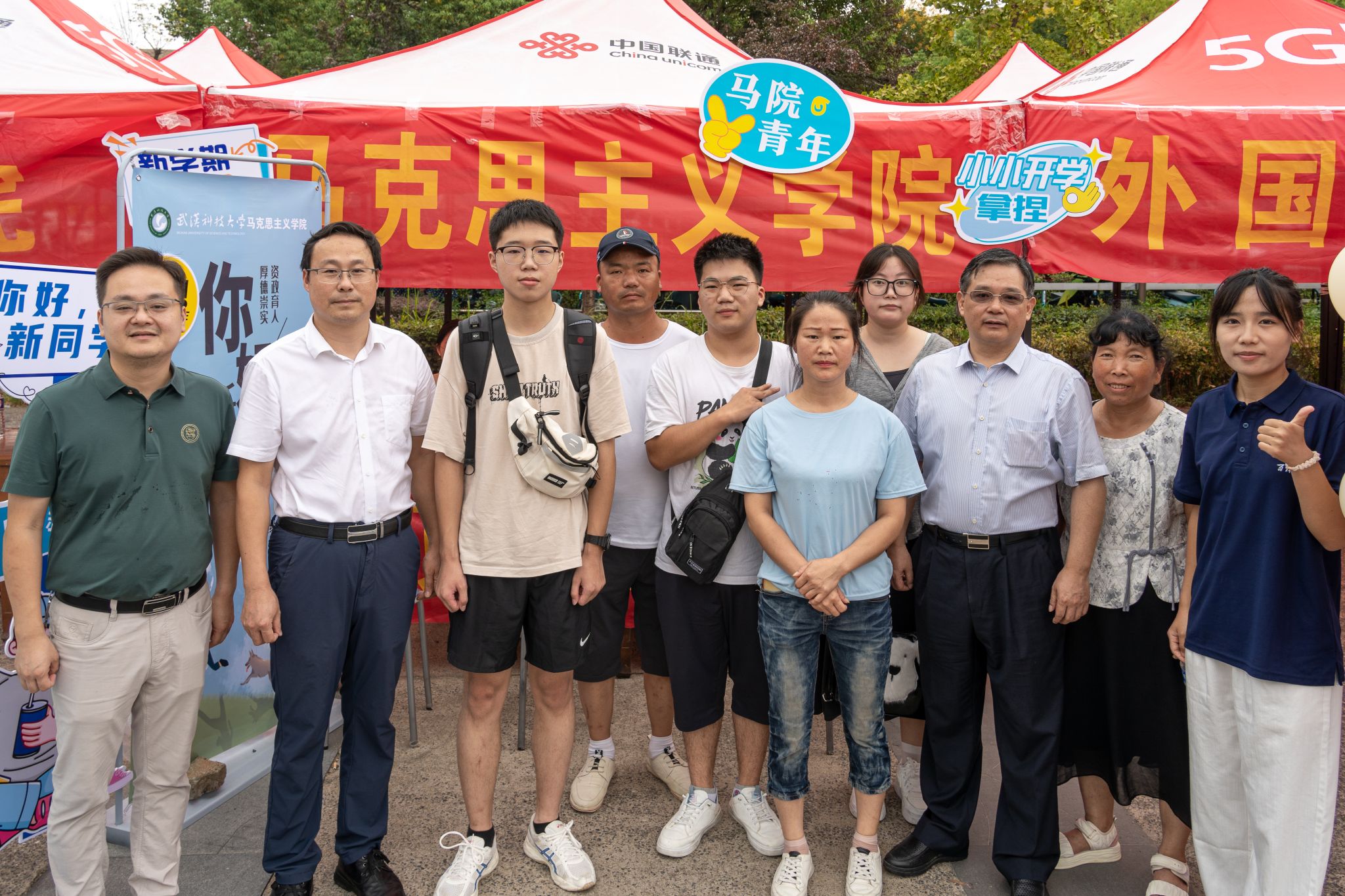 馬克思主義學院黨委書記唐忠義,院長劉文波,黨委副書記、副院長郭海沙與新生合影 孫奕哲攝