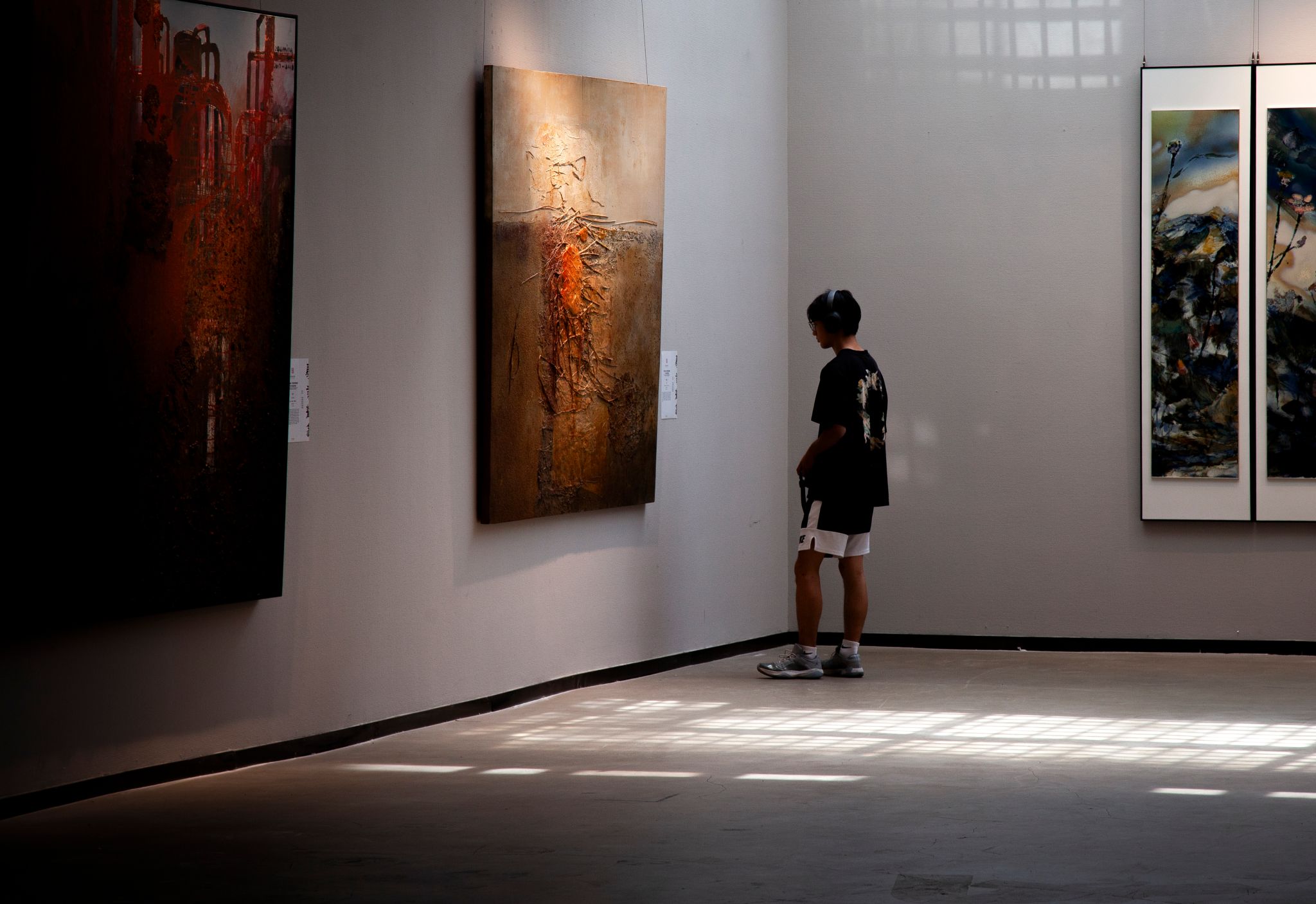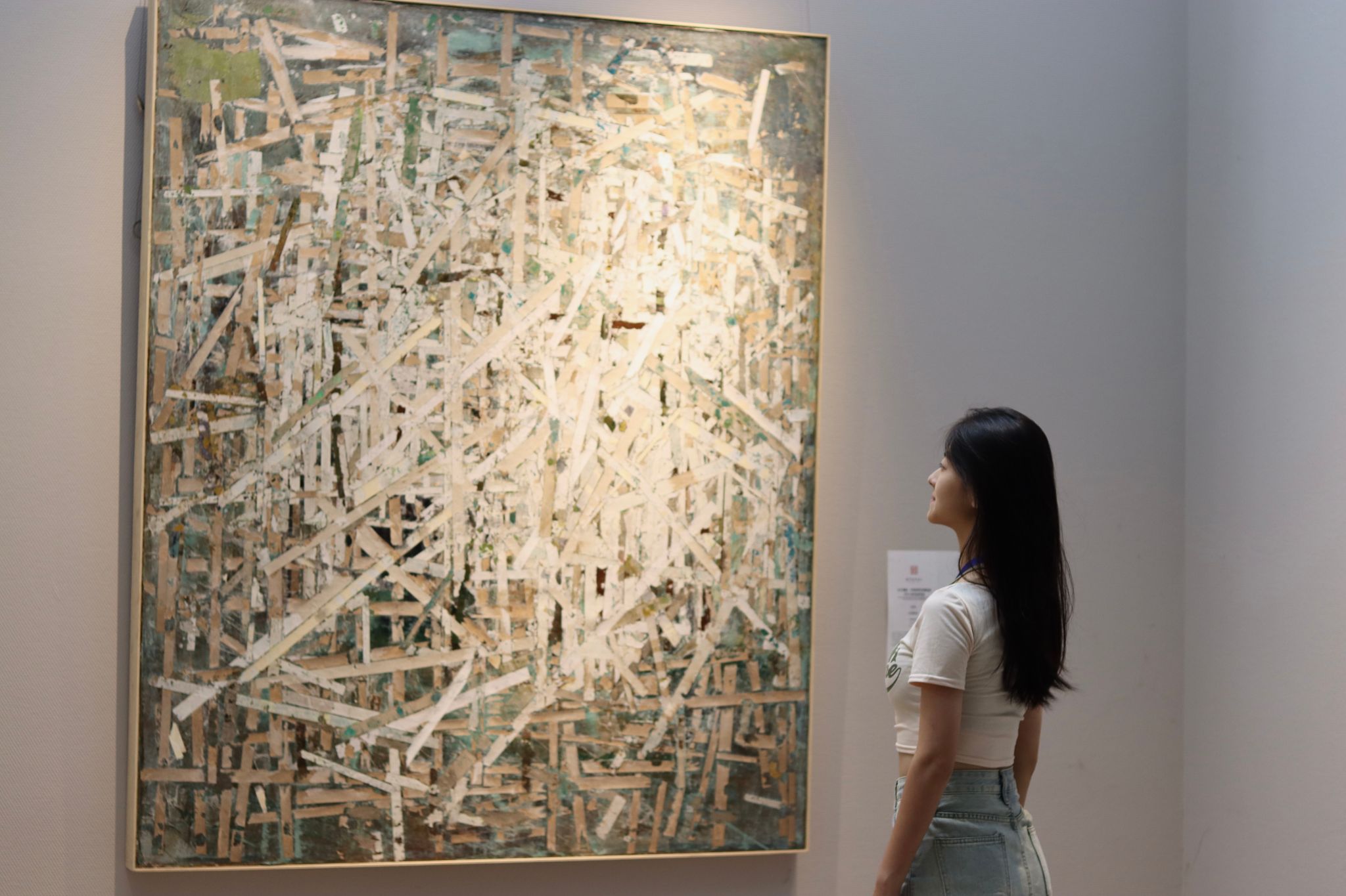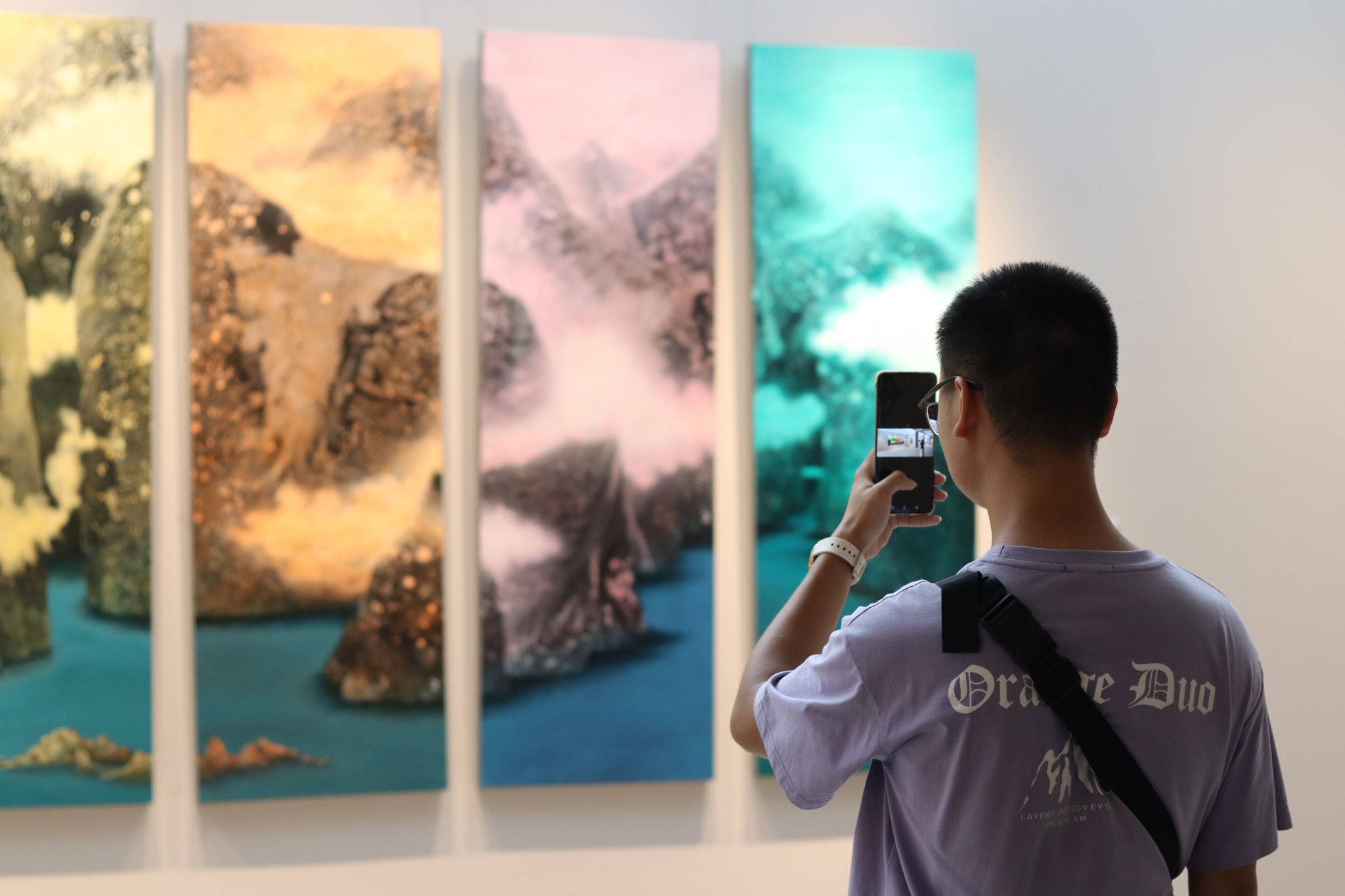 參觀者欣賞作品《白云間》 吳毅萌攝