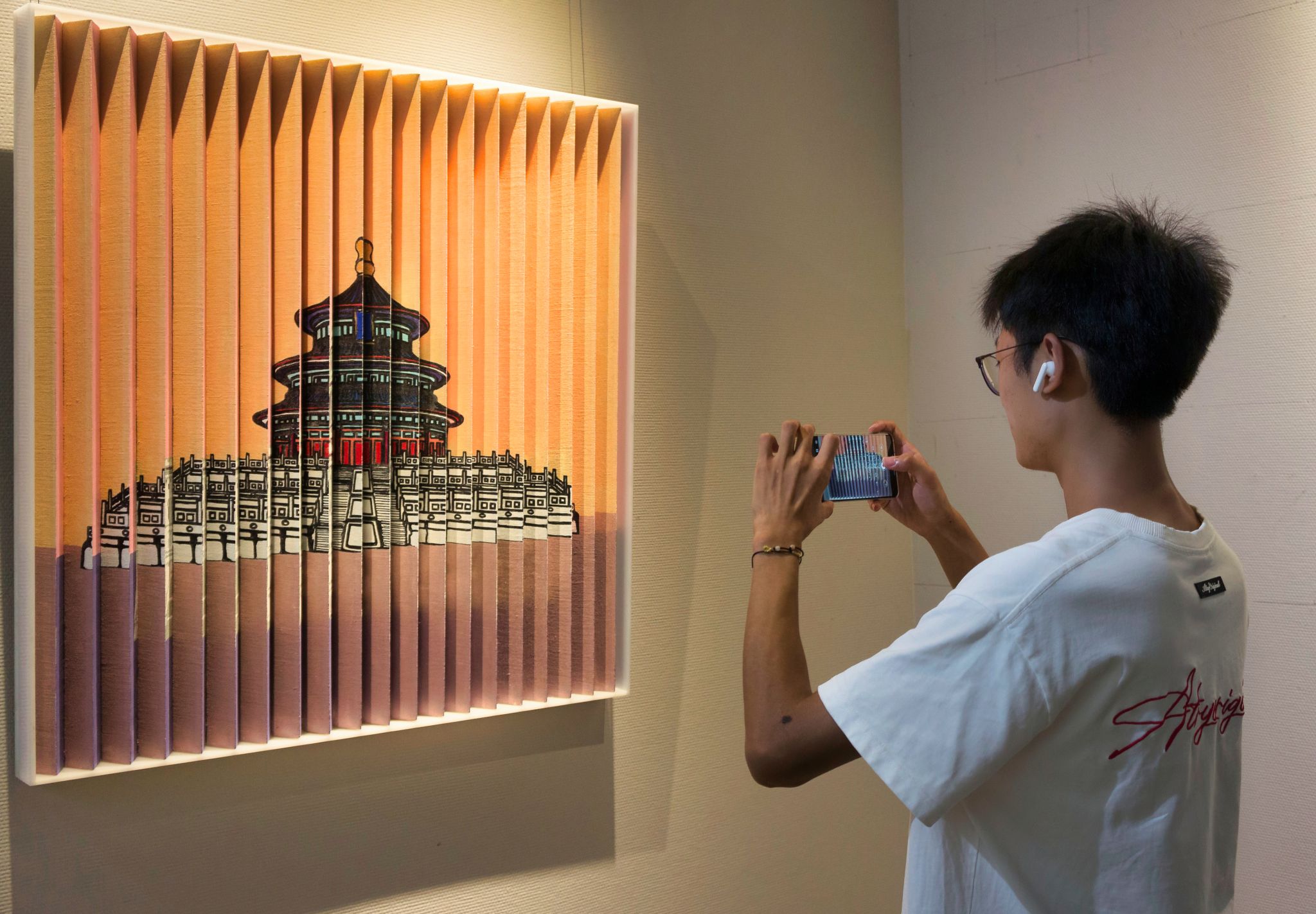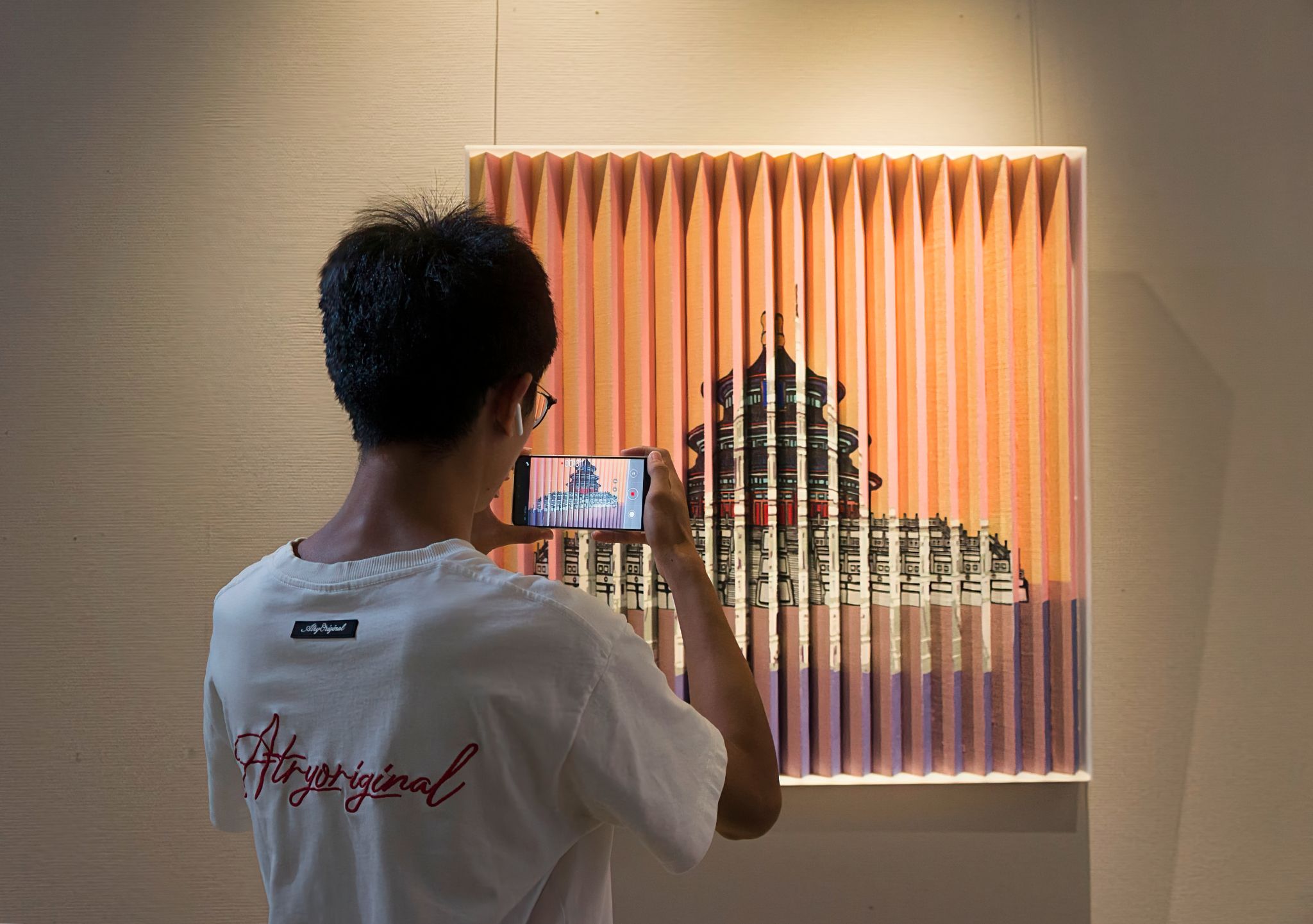 觀眾欣賞作品《四星堆》 楊欣怡攝