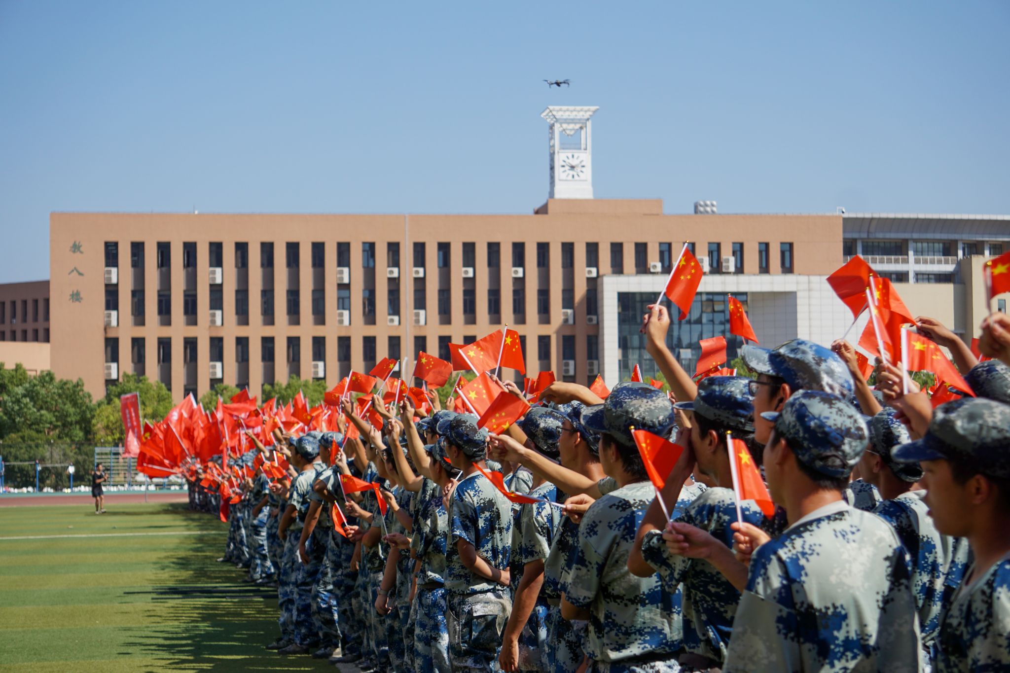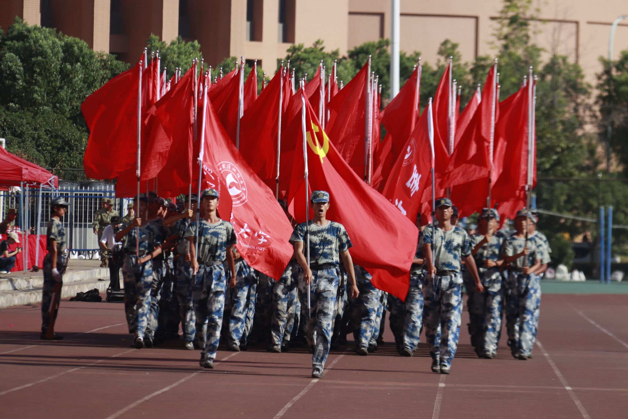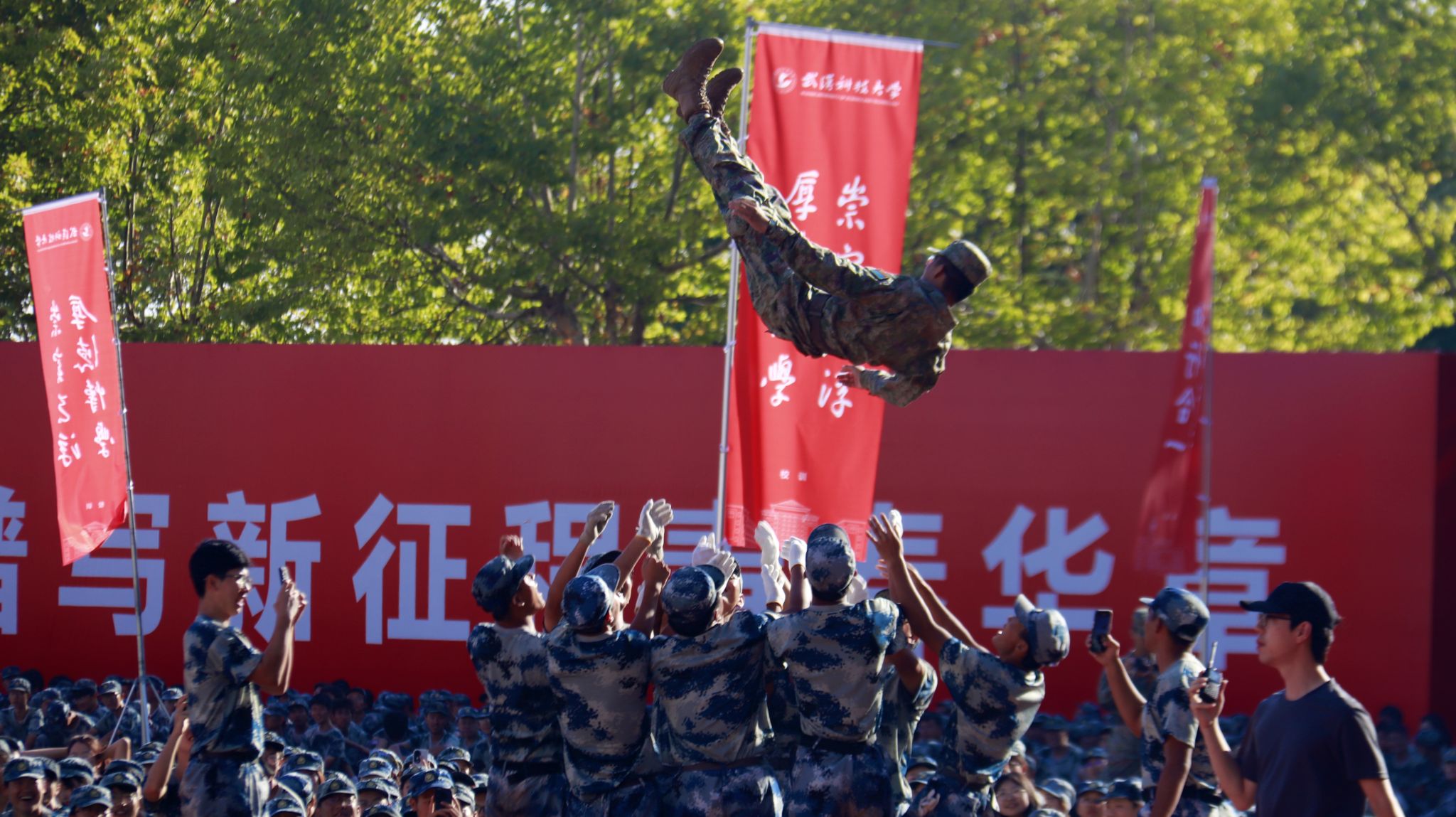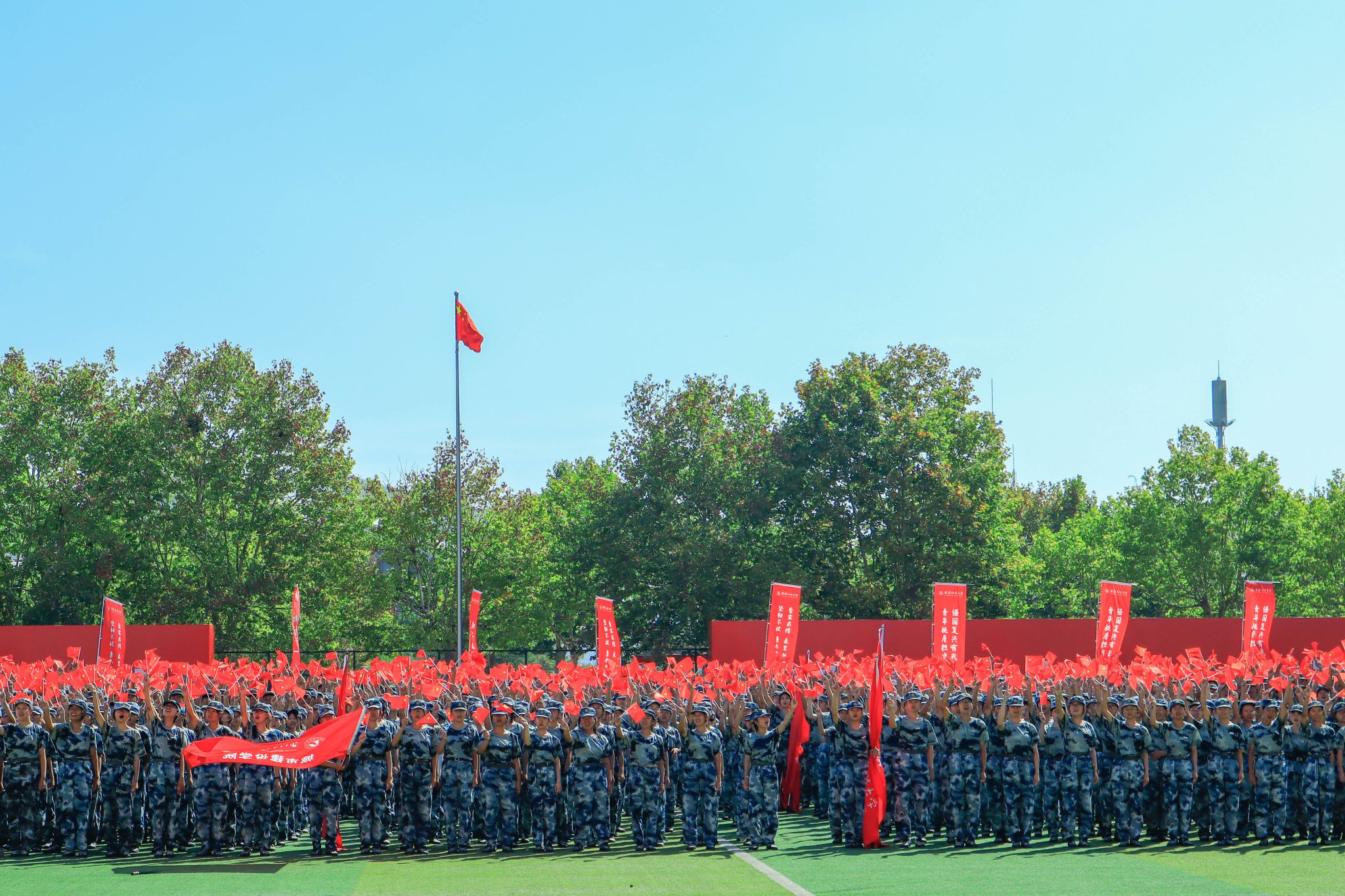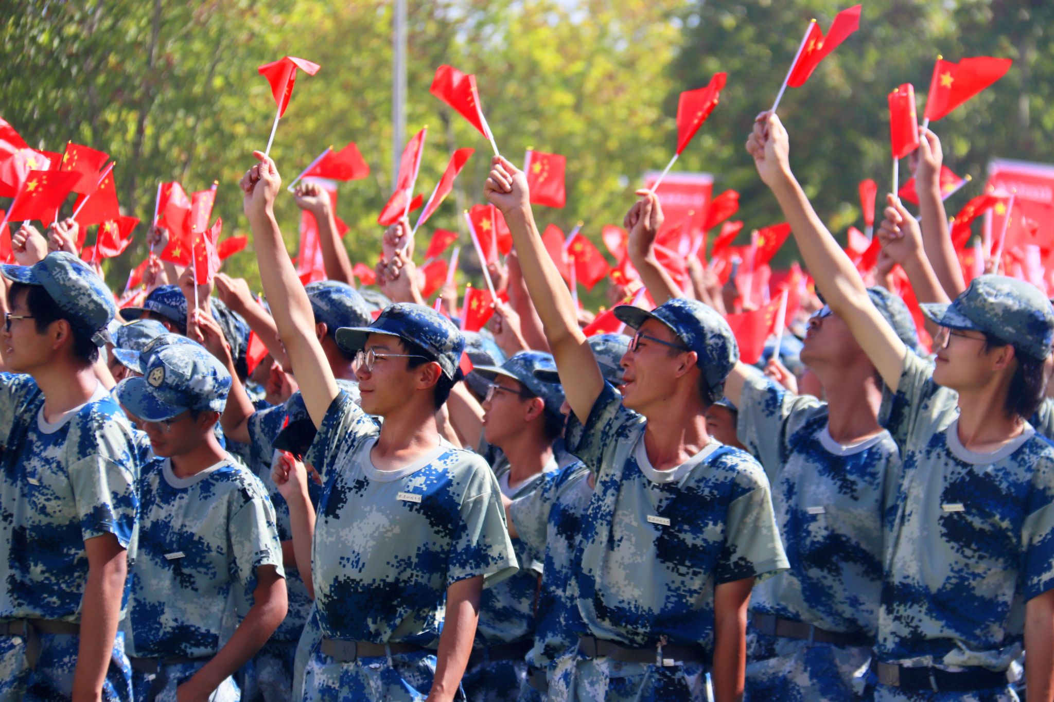 新生們揮動紅旗 郭劼攝