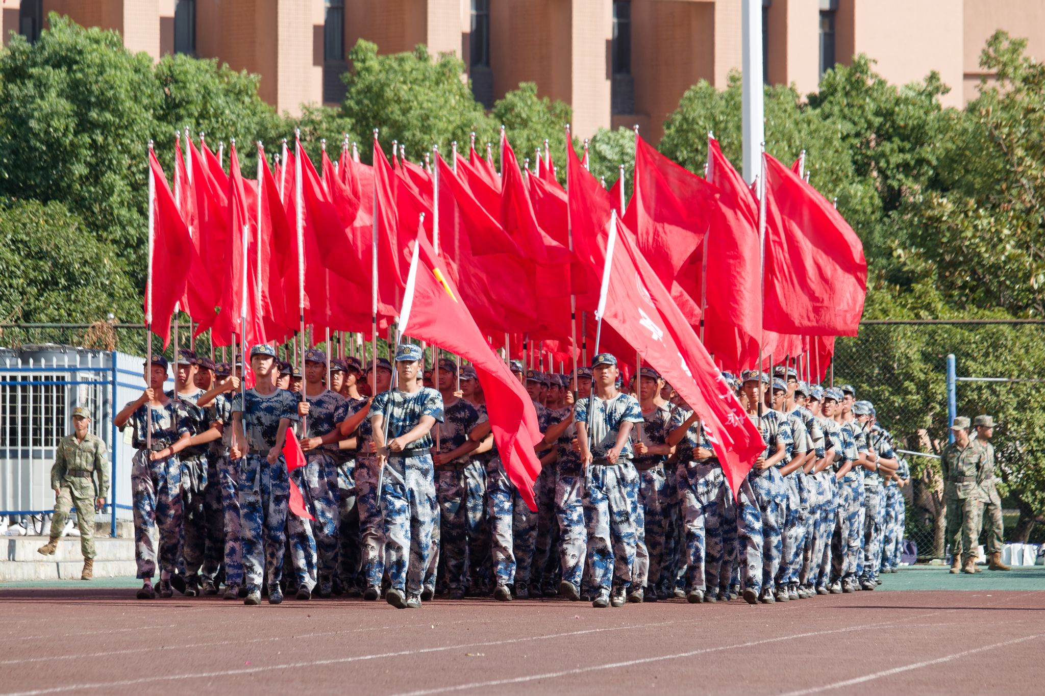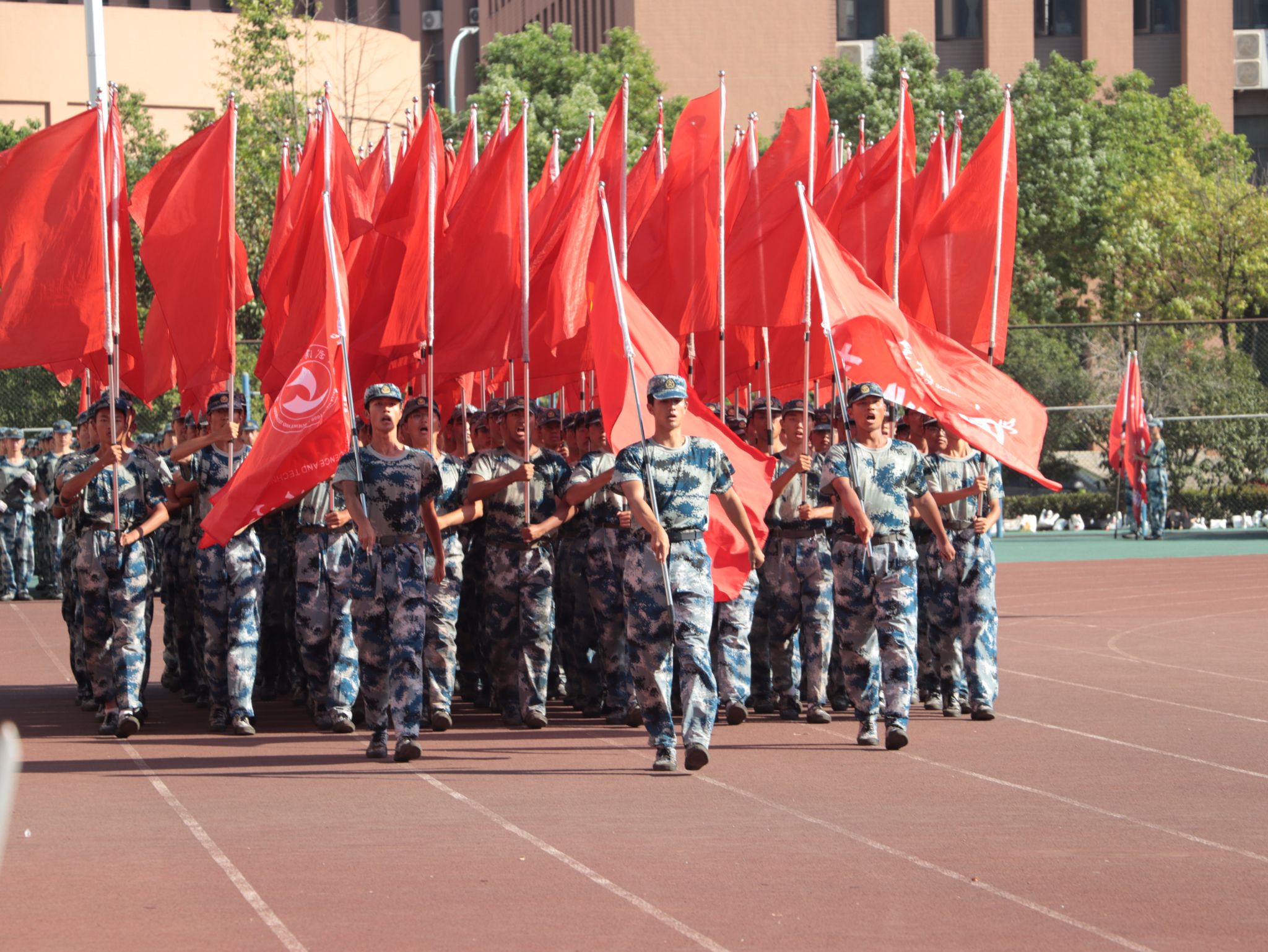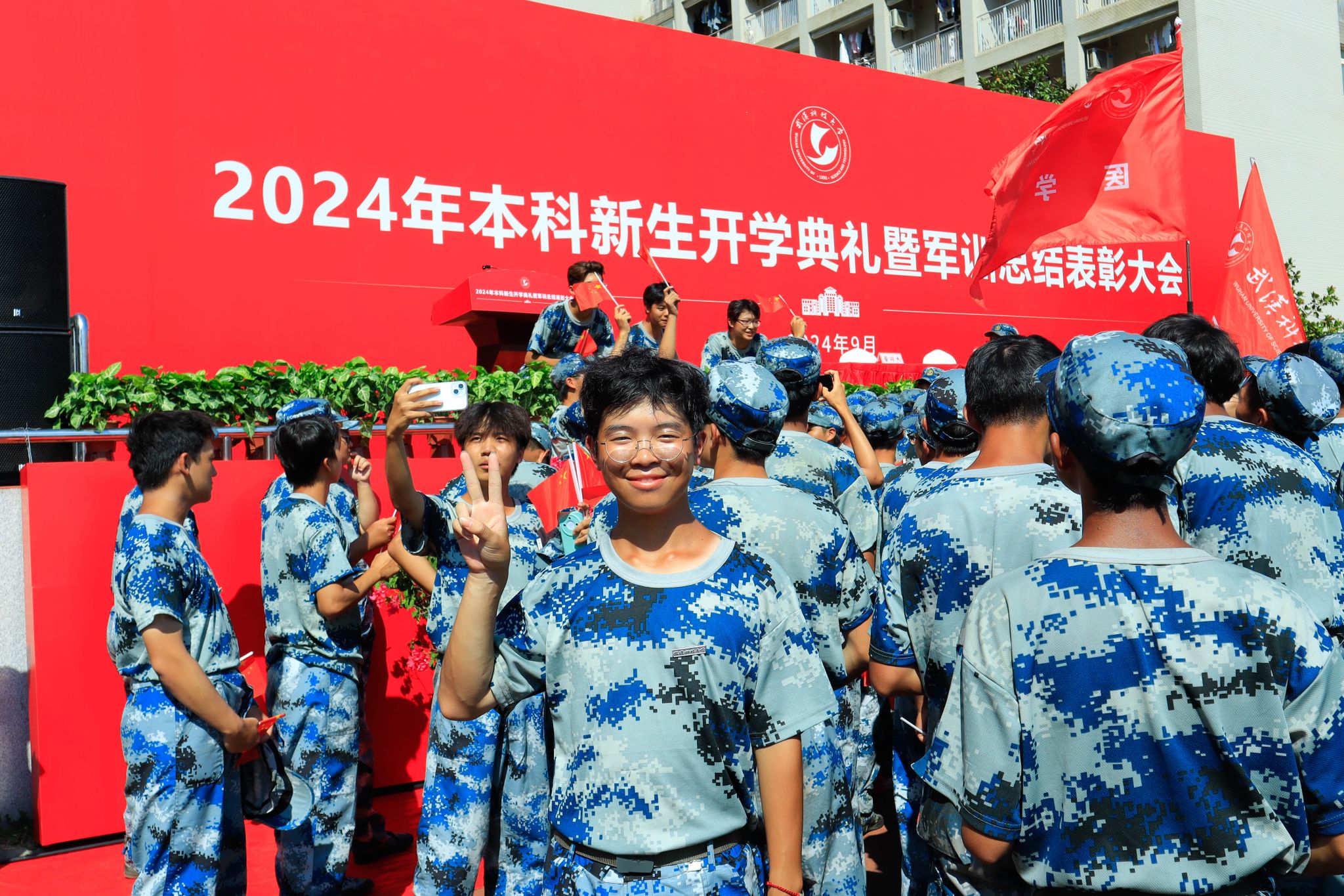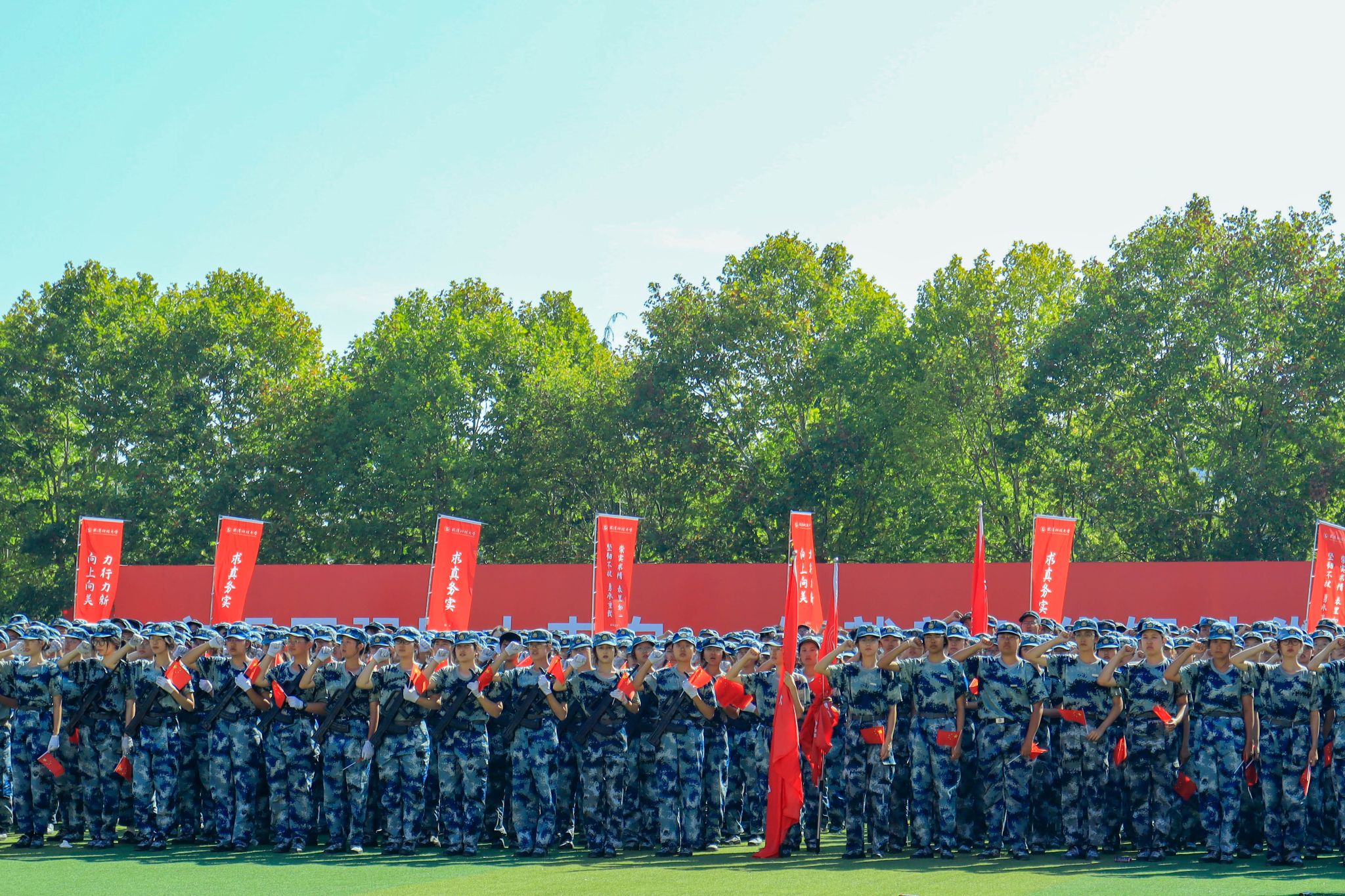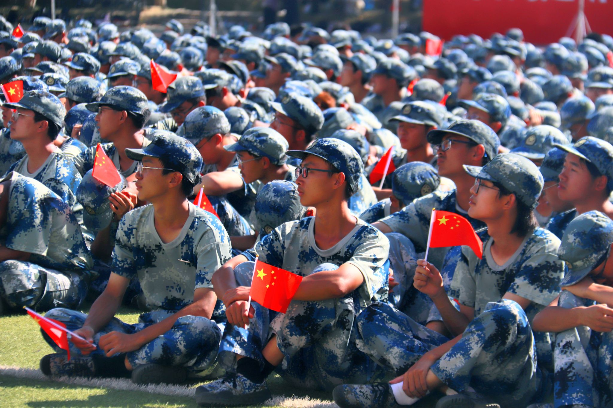 新生們揮動紅旗 郭劼攝