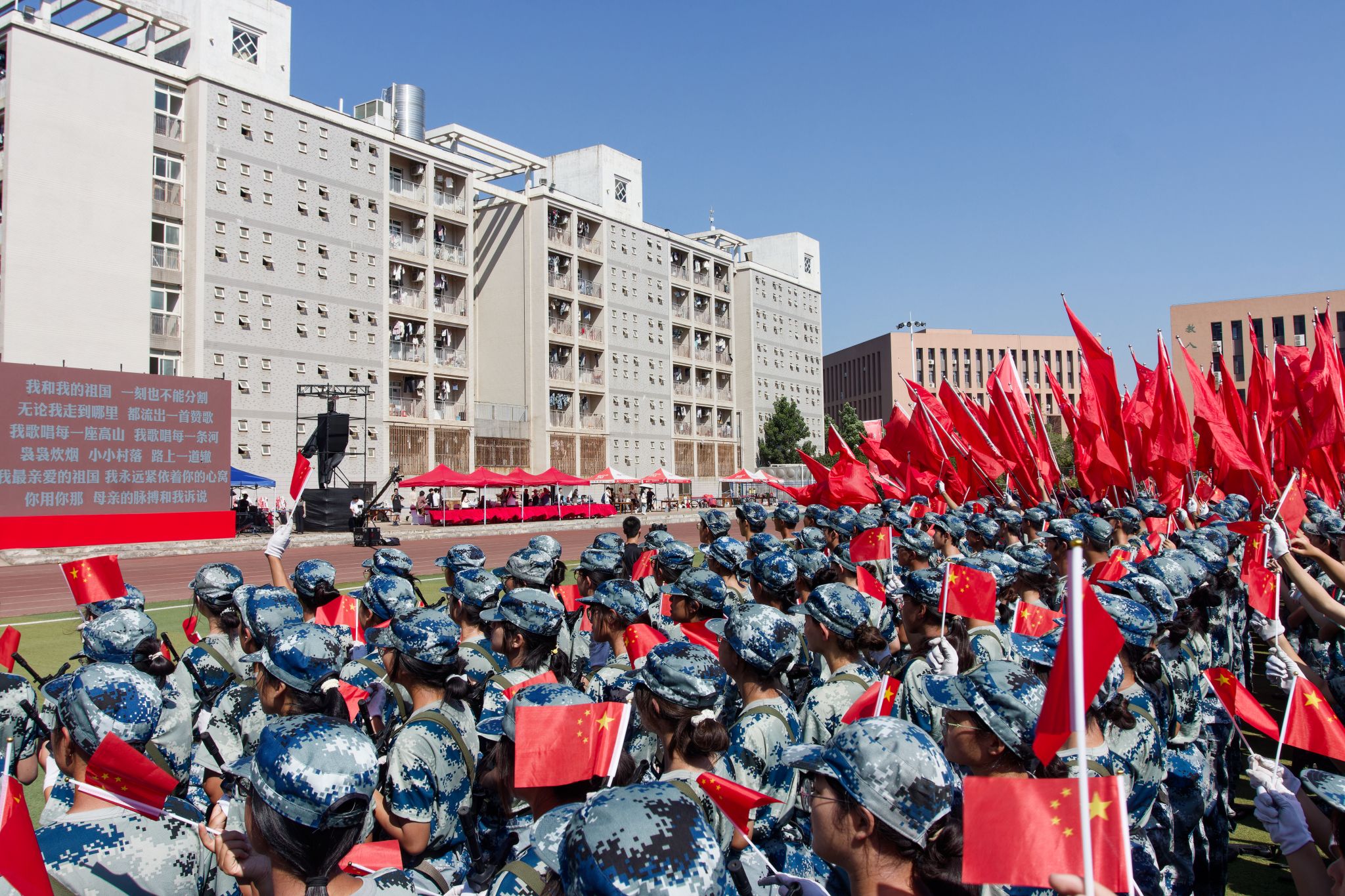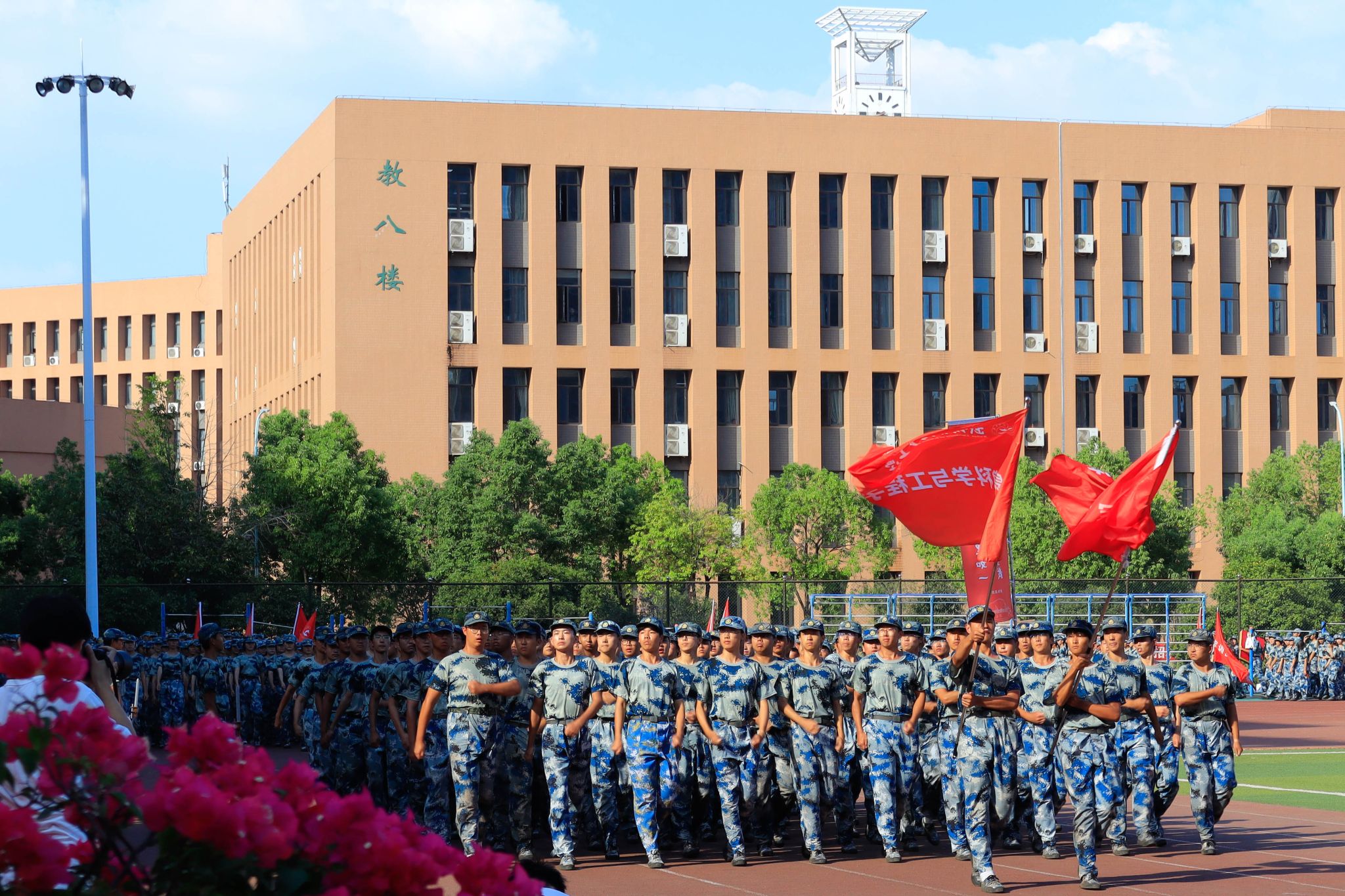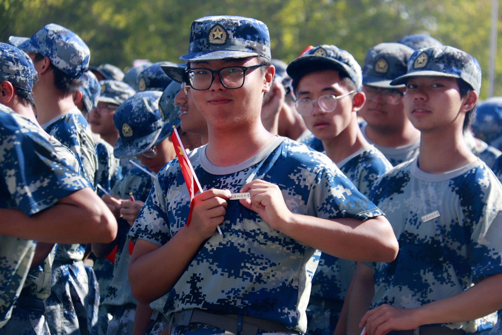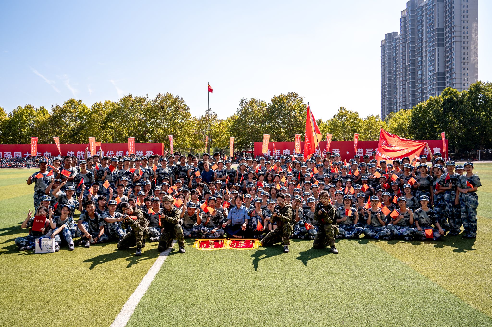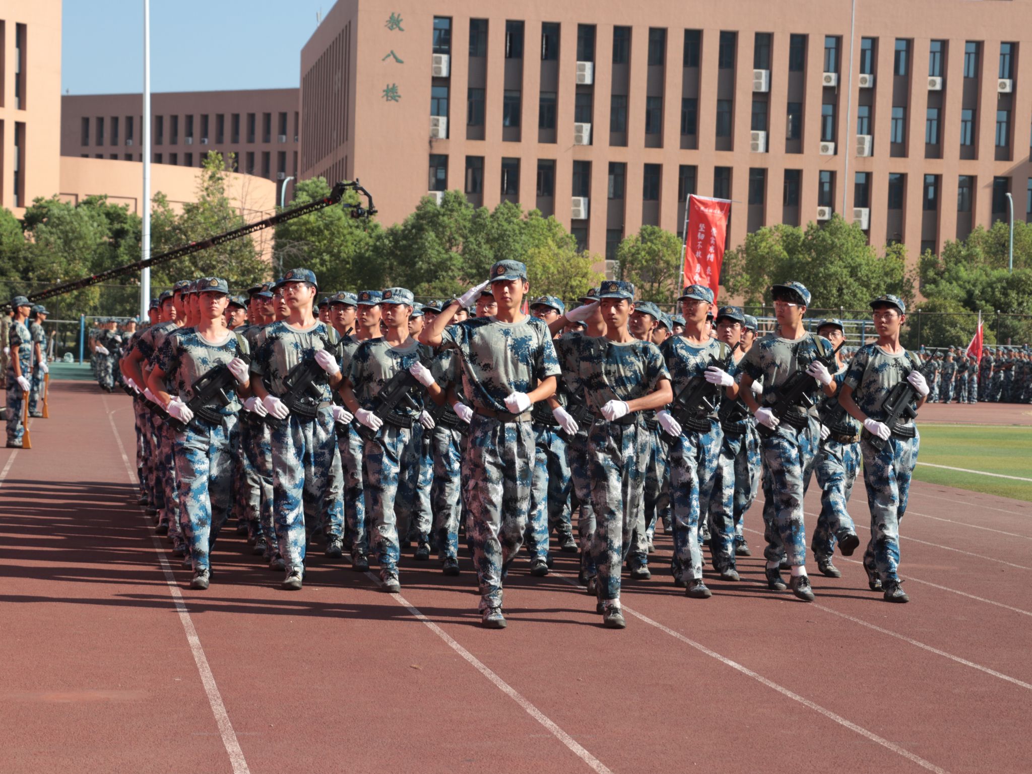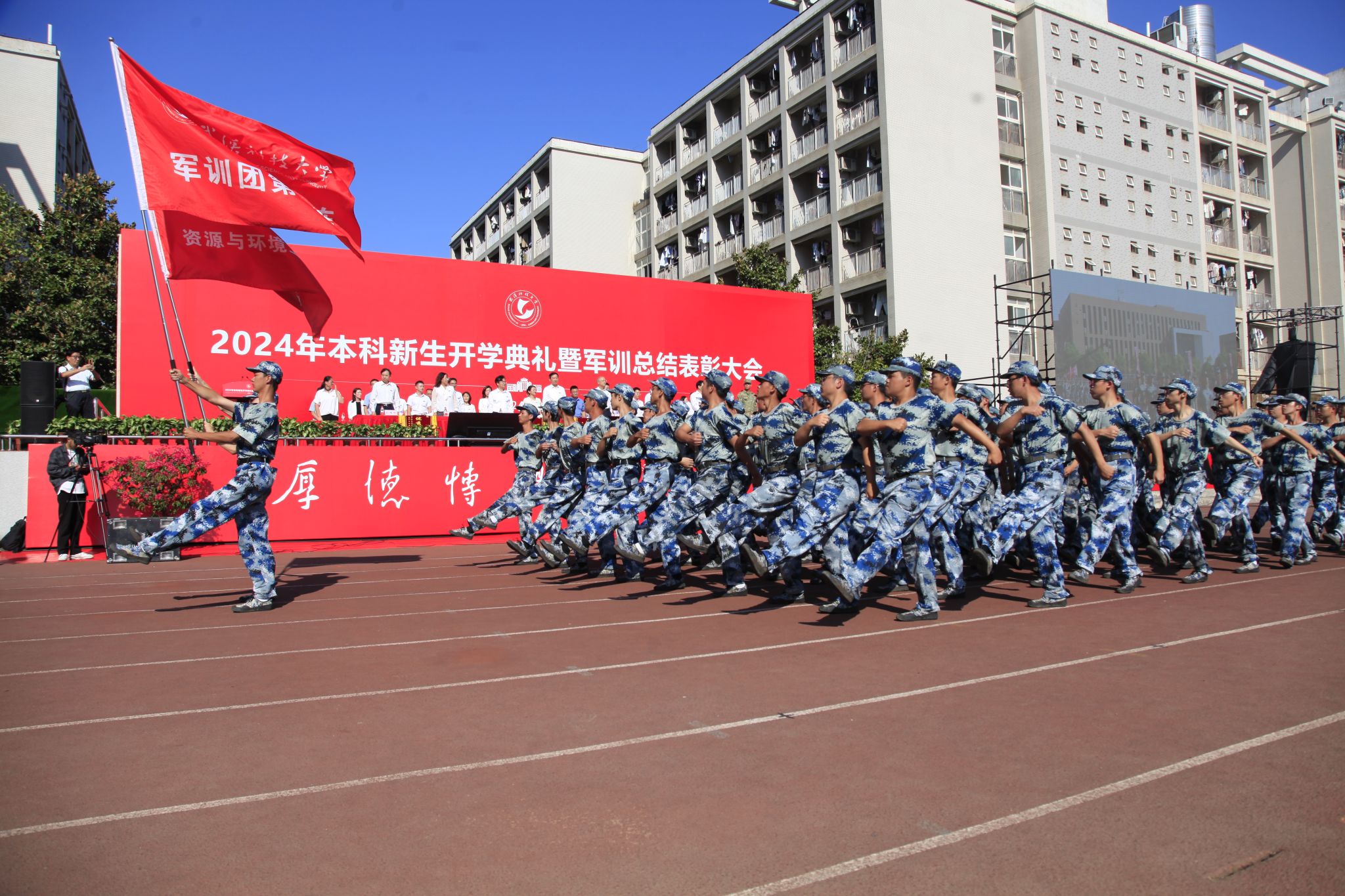 新生們揮動紅旗 郭劼攝