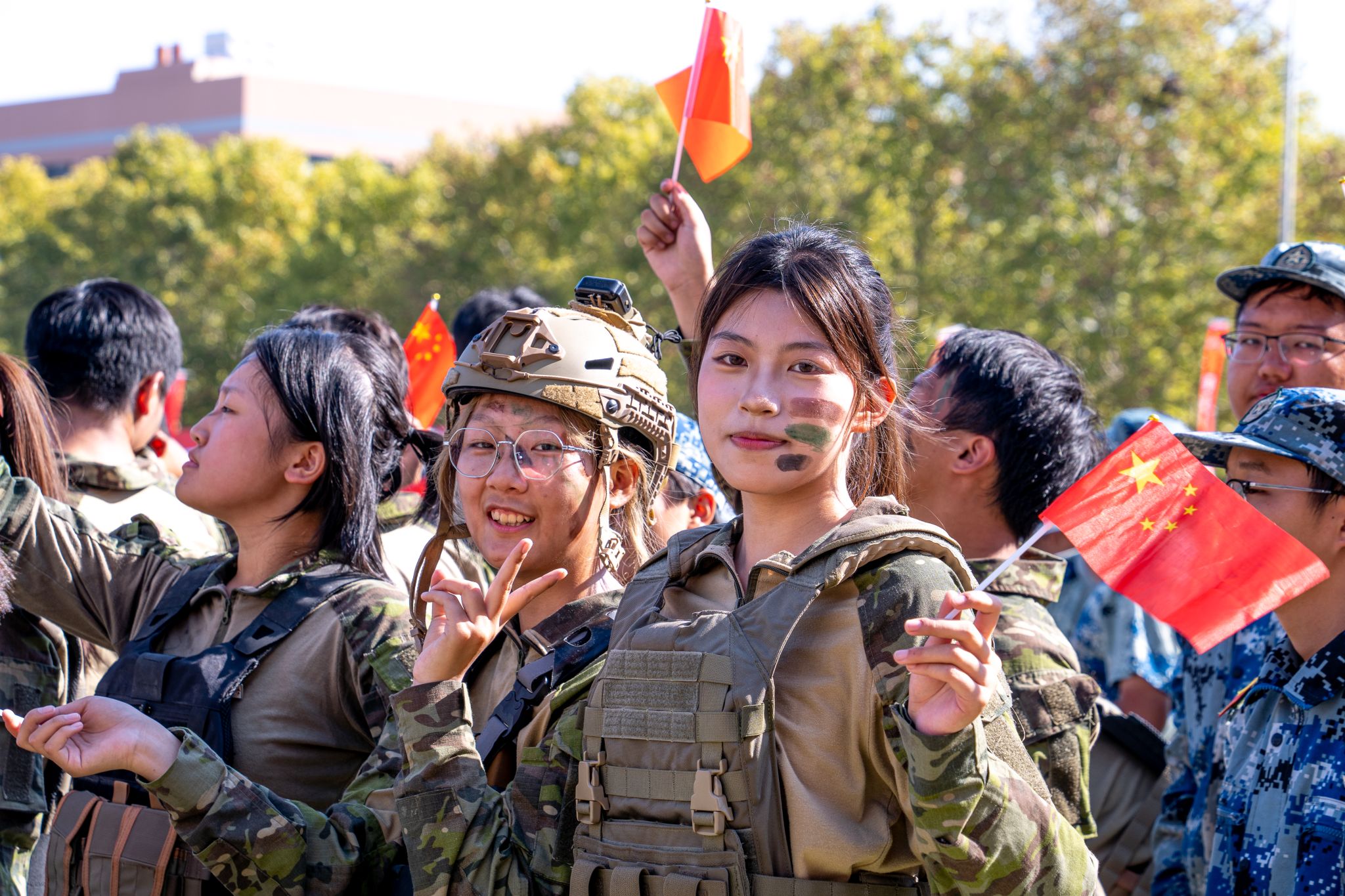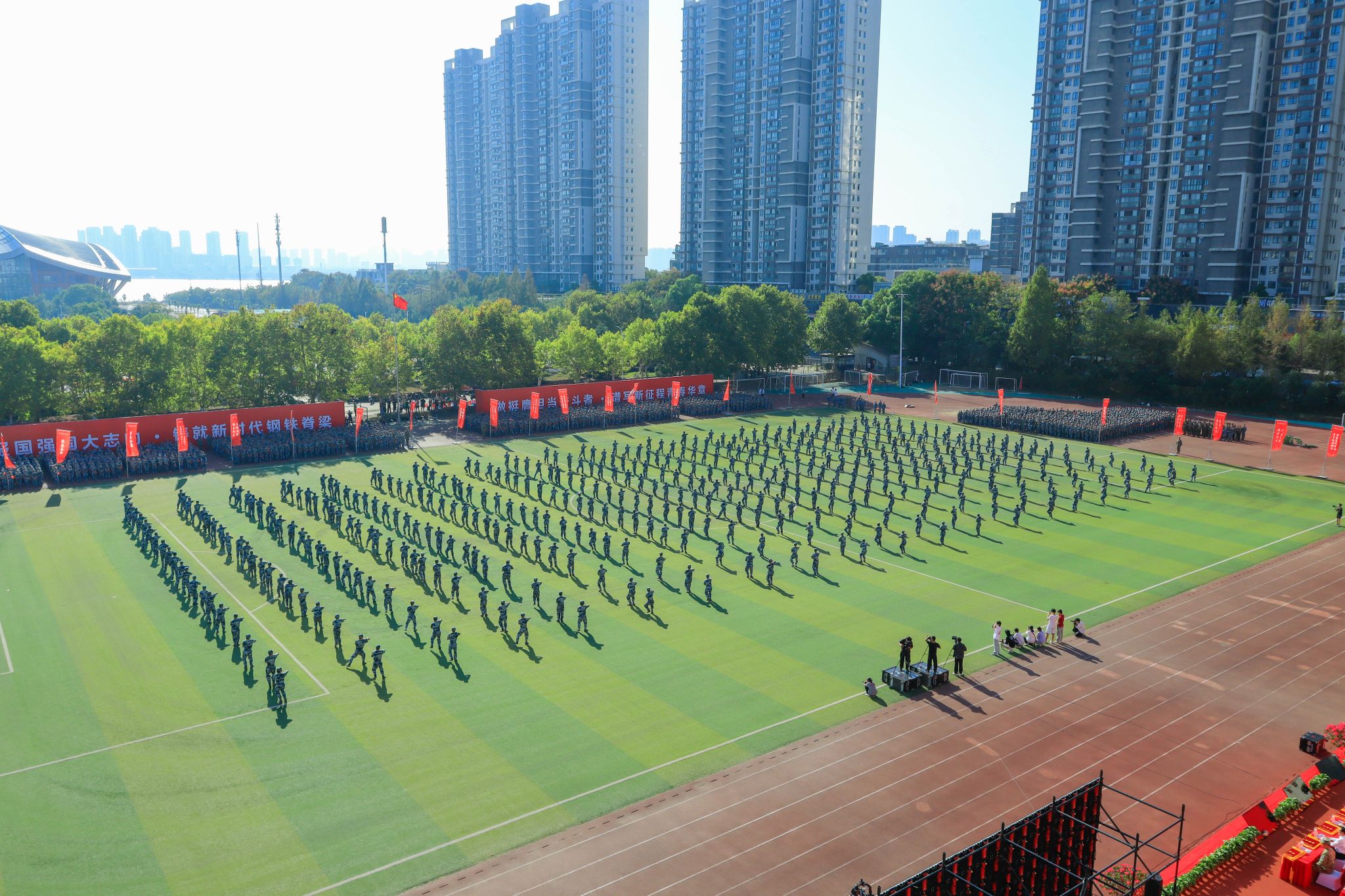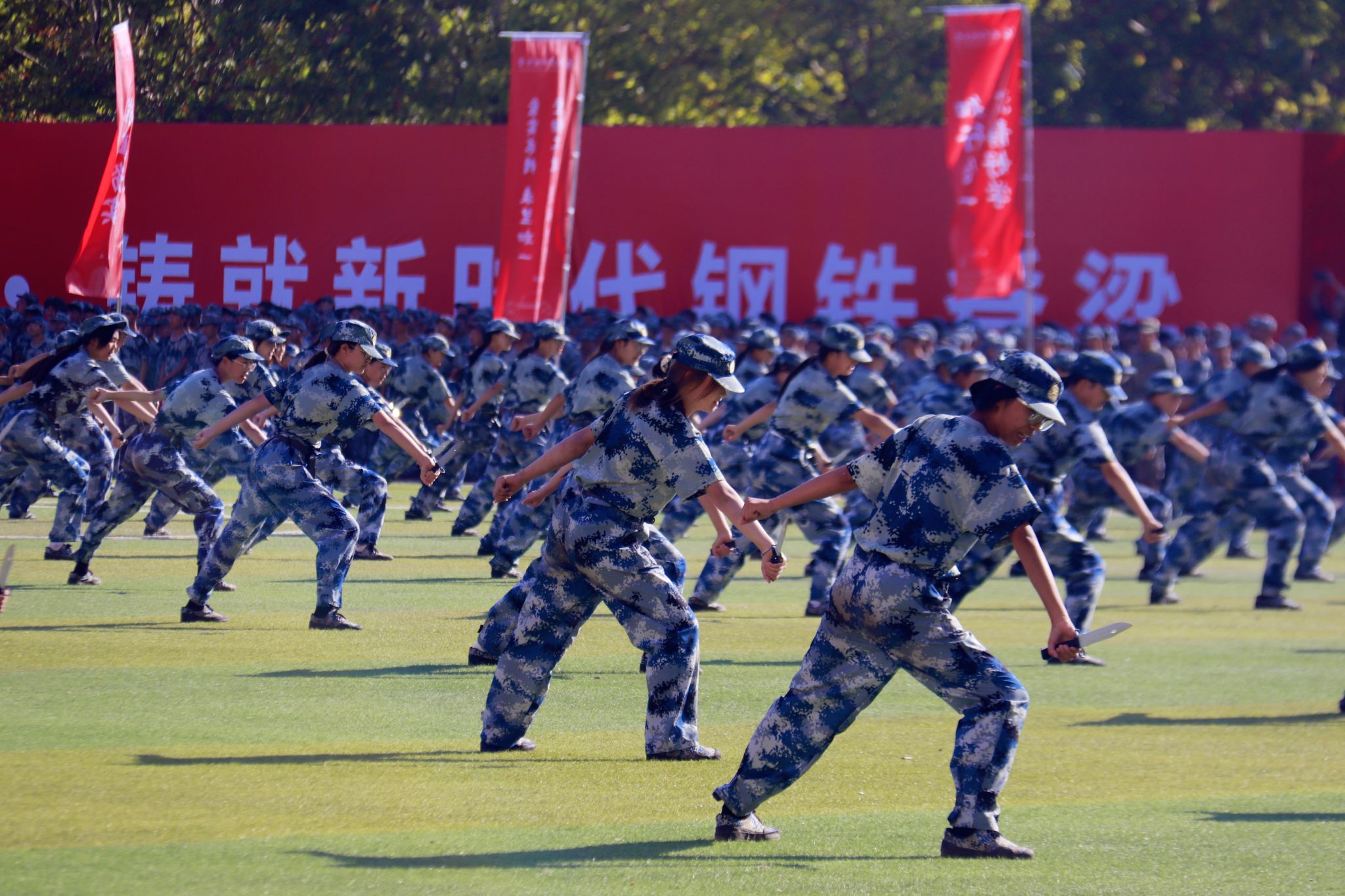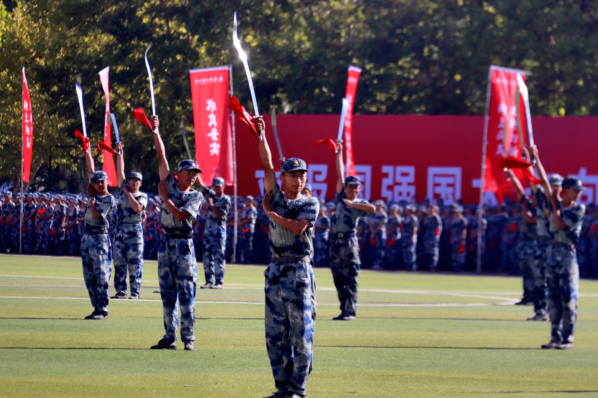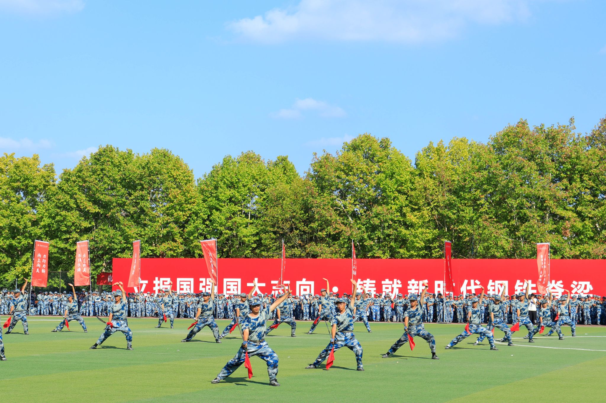新生們揮動紅旗 郭劼攝