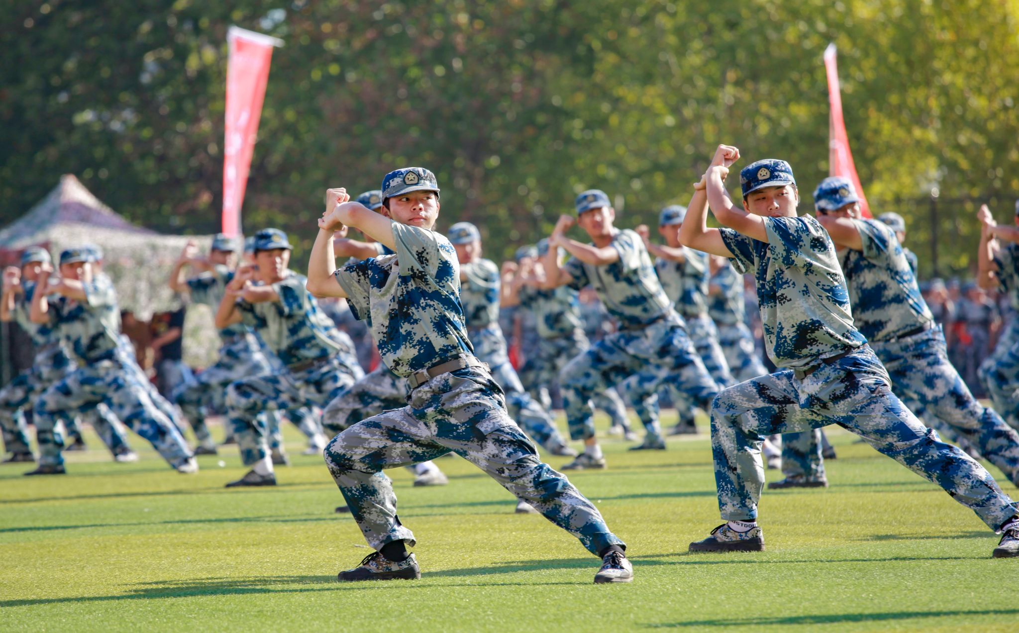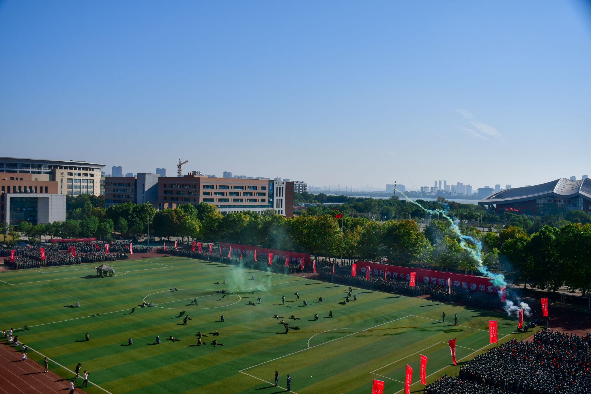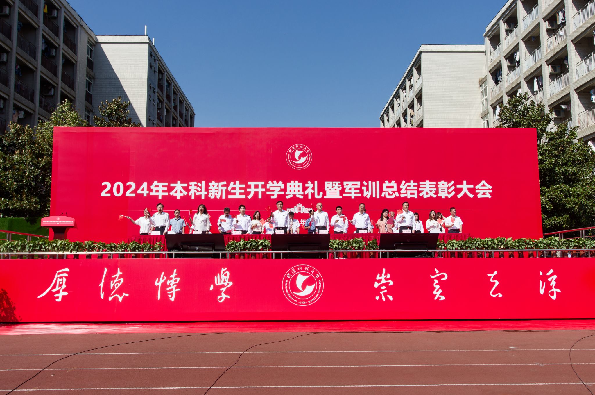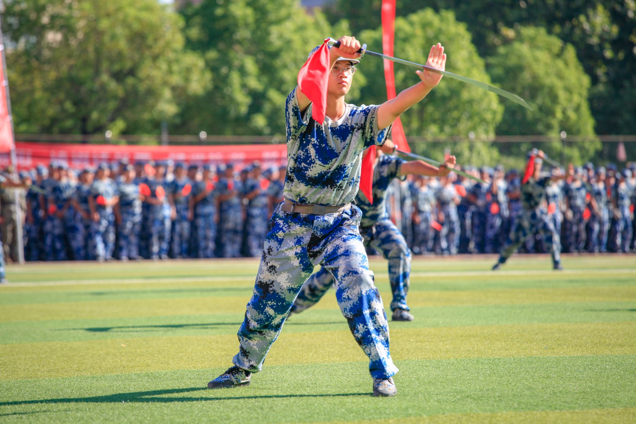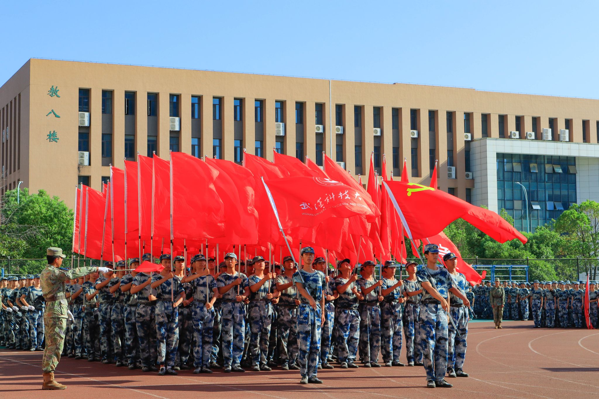新生們揮動紅旗 郭劼攝