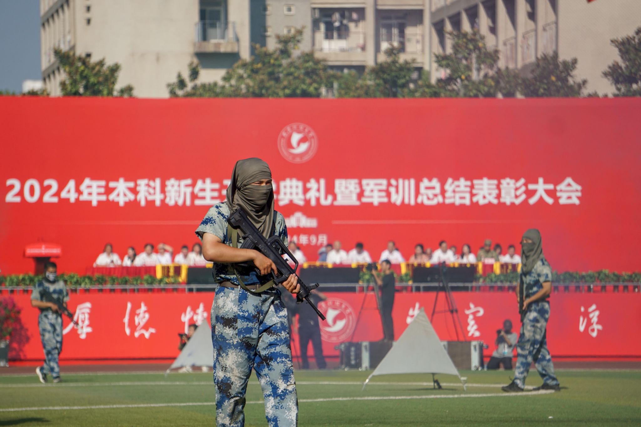 9月29日上午,我校于南苑操場舉行2024年本科新生開學典禮暨軍訓總結表彰大會,現場同學們熱情洋溢,情緒高漲。校黨委書記徐雁冰,校長倪紅衛,黨委副書記孫國勝,副校長呂勇、馬騰、董麗杰,黨委常委劉時新,空軍預警學院大隊長張力以及學校各職能部門、各學院領導出席本次大會。由黨委副書記孫國勝主持大會。