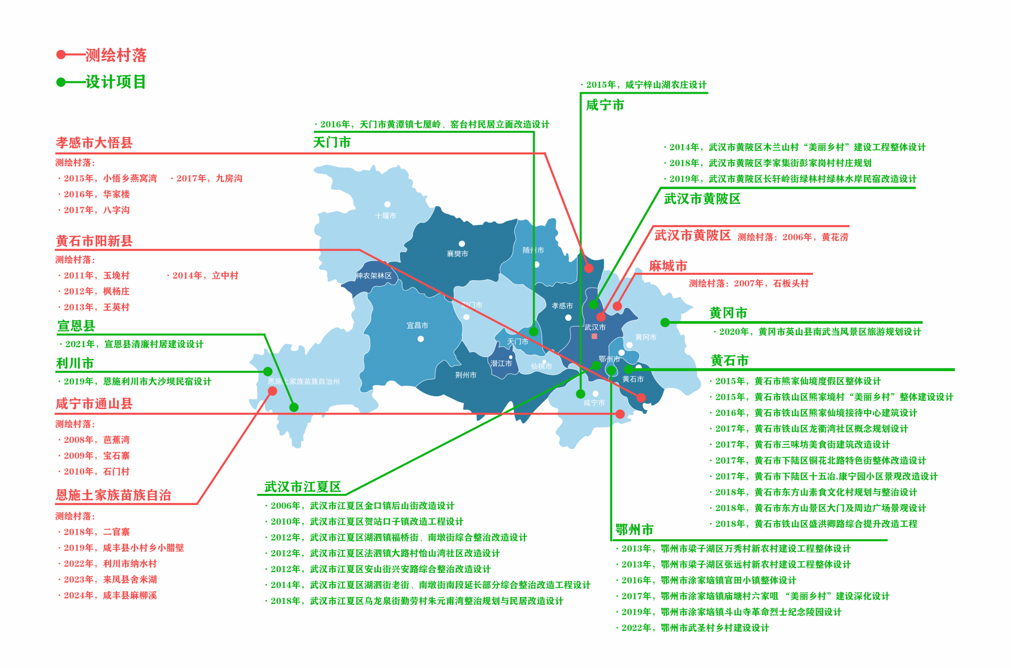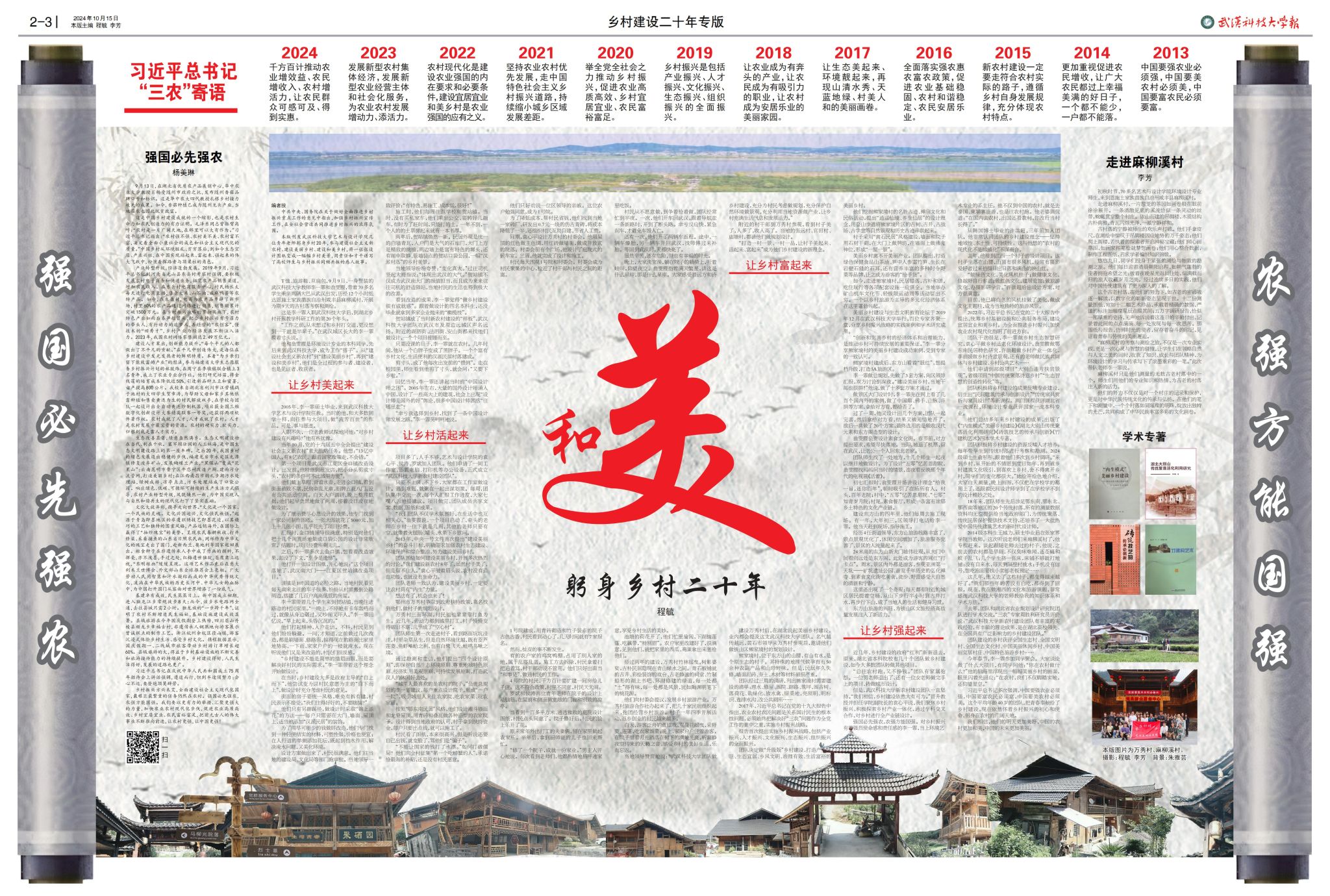 藝術與設計學院李一霏、翁文霞、許洪超等老師躬身鄉村20年。他們足跡遍及湖北鄂東南、鄂西南、鄂東北的20多個傳統村落,將一張張設計圖紙變成一幅幅鄉村美景。