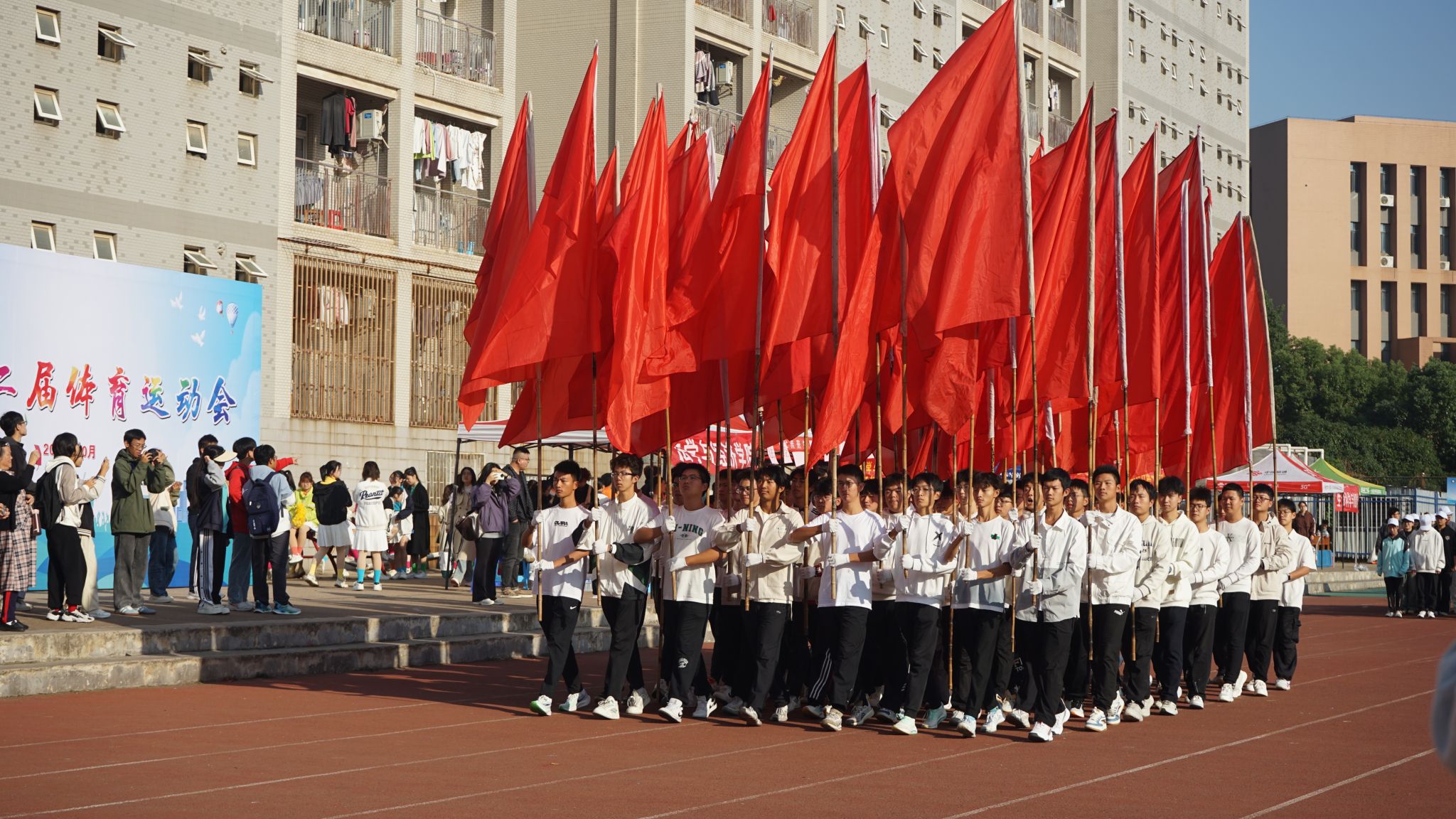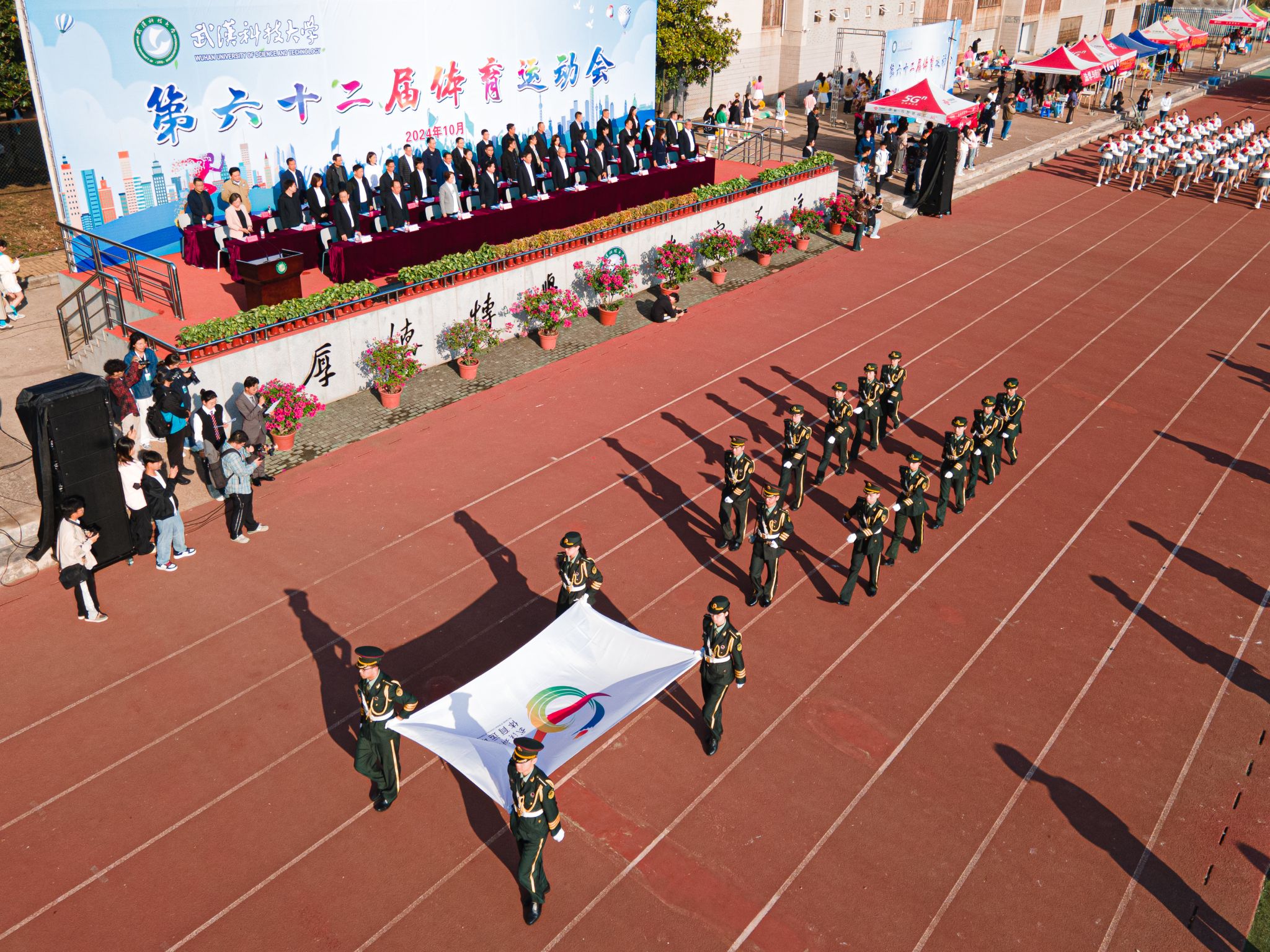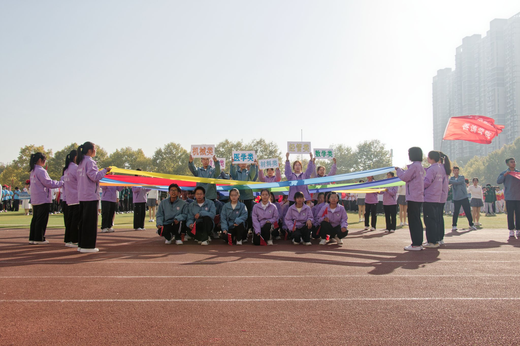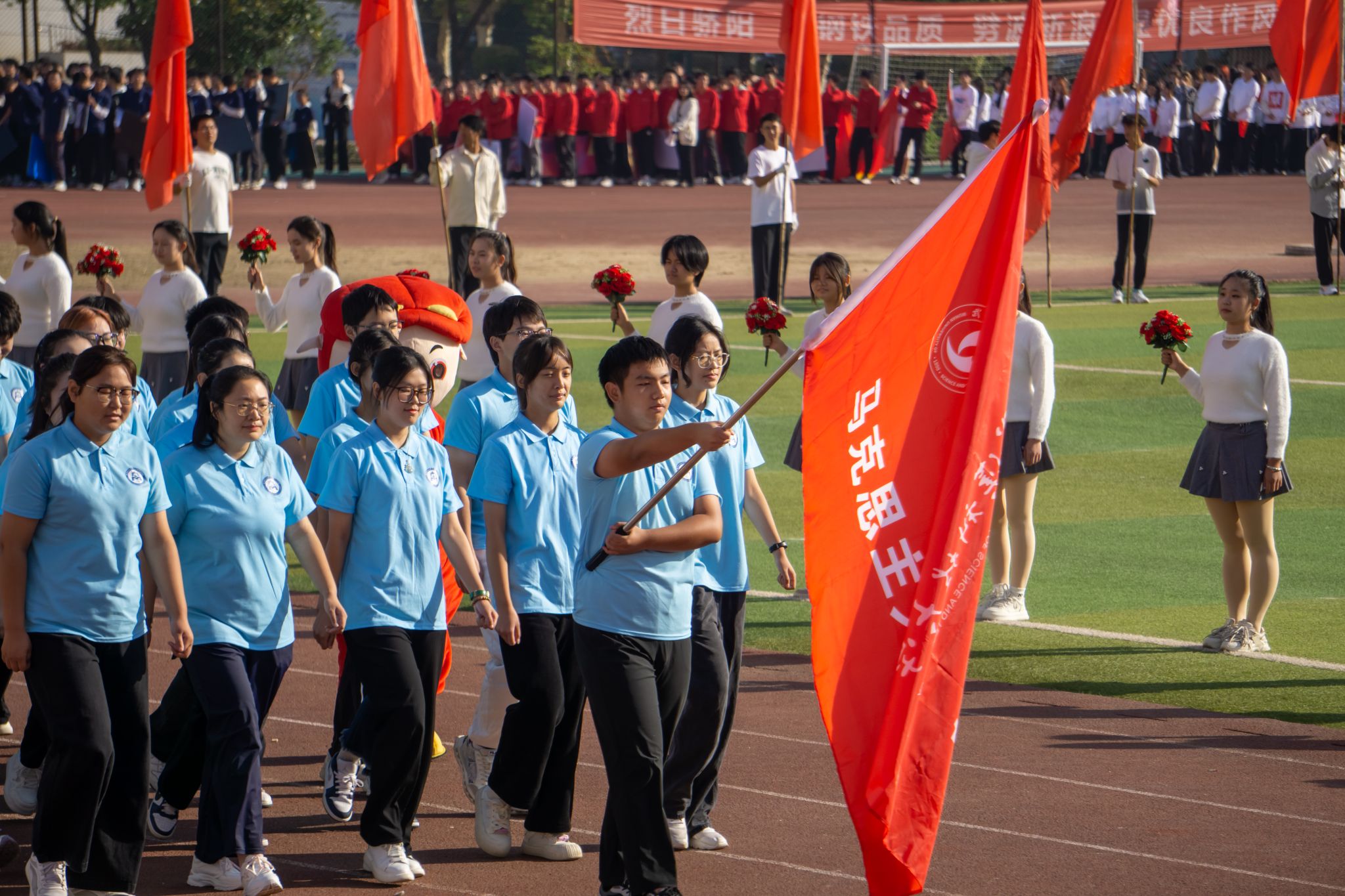 10月24日上午,我校第六十二屆運動會開幕式在黃家湖校區南園操場舉行。校黨委書記徐雁冰,校長倪紅衛,校黨委副書記孫國勝、沈季偉,黨委常委、紀委書記竇先萍,副校長呂勇、馬騰、董麗杰,黨委常委劉時新、徐增陽以及學校相關職能負責人、各學院負責人、裁判員、教練員等出席開幕式,活動由劉時新主持。