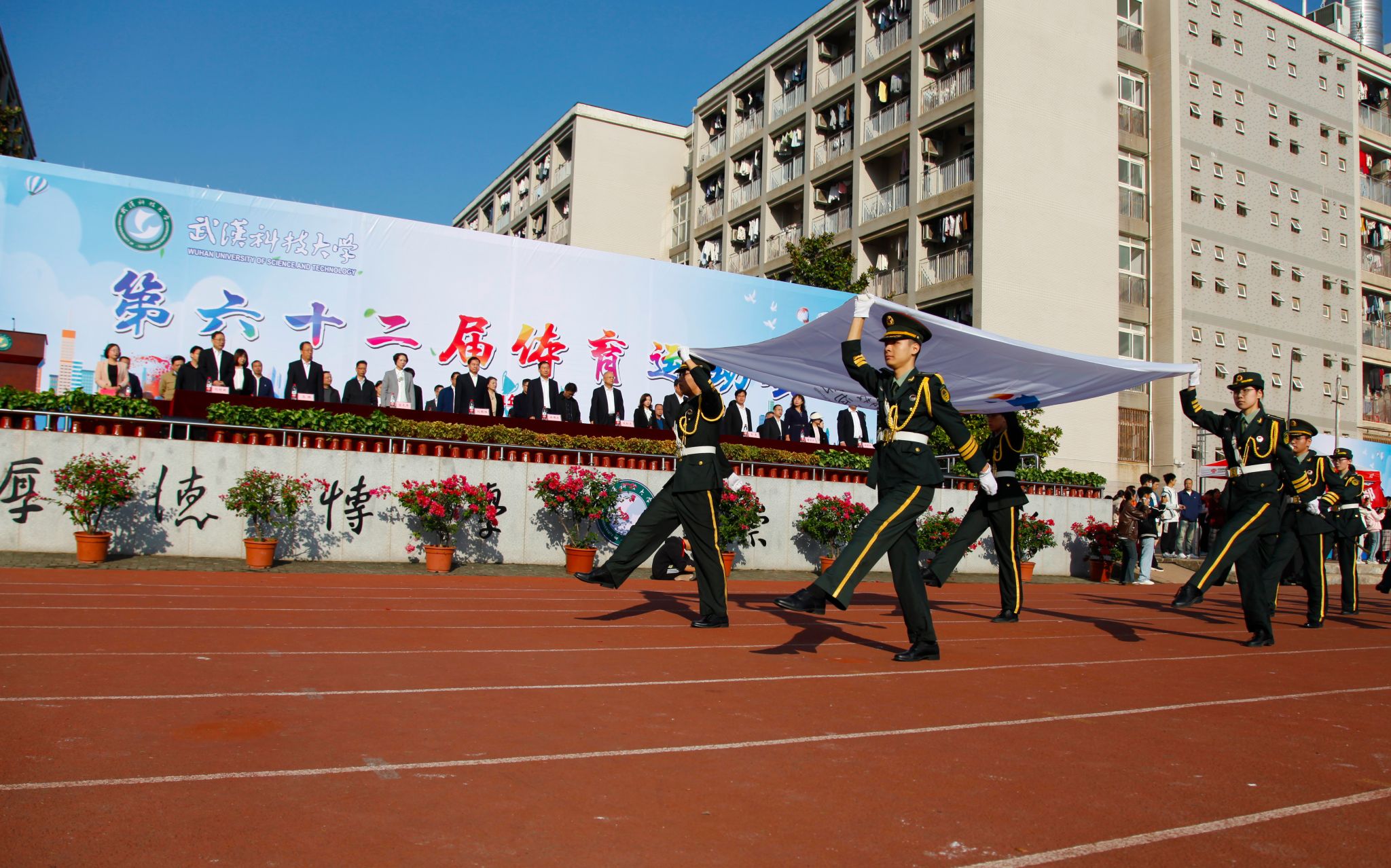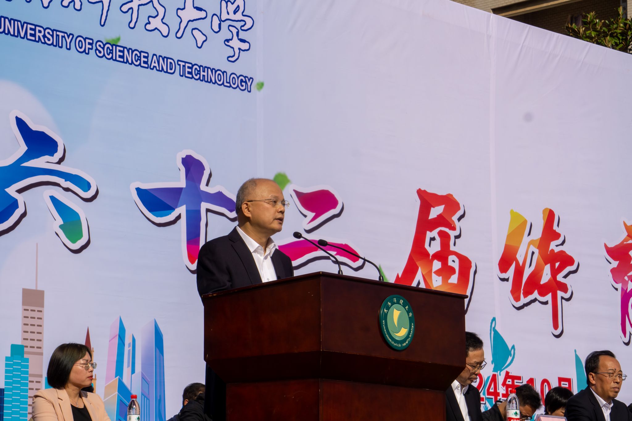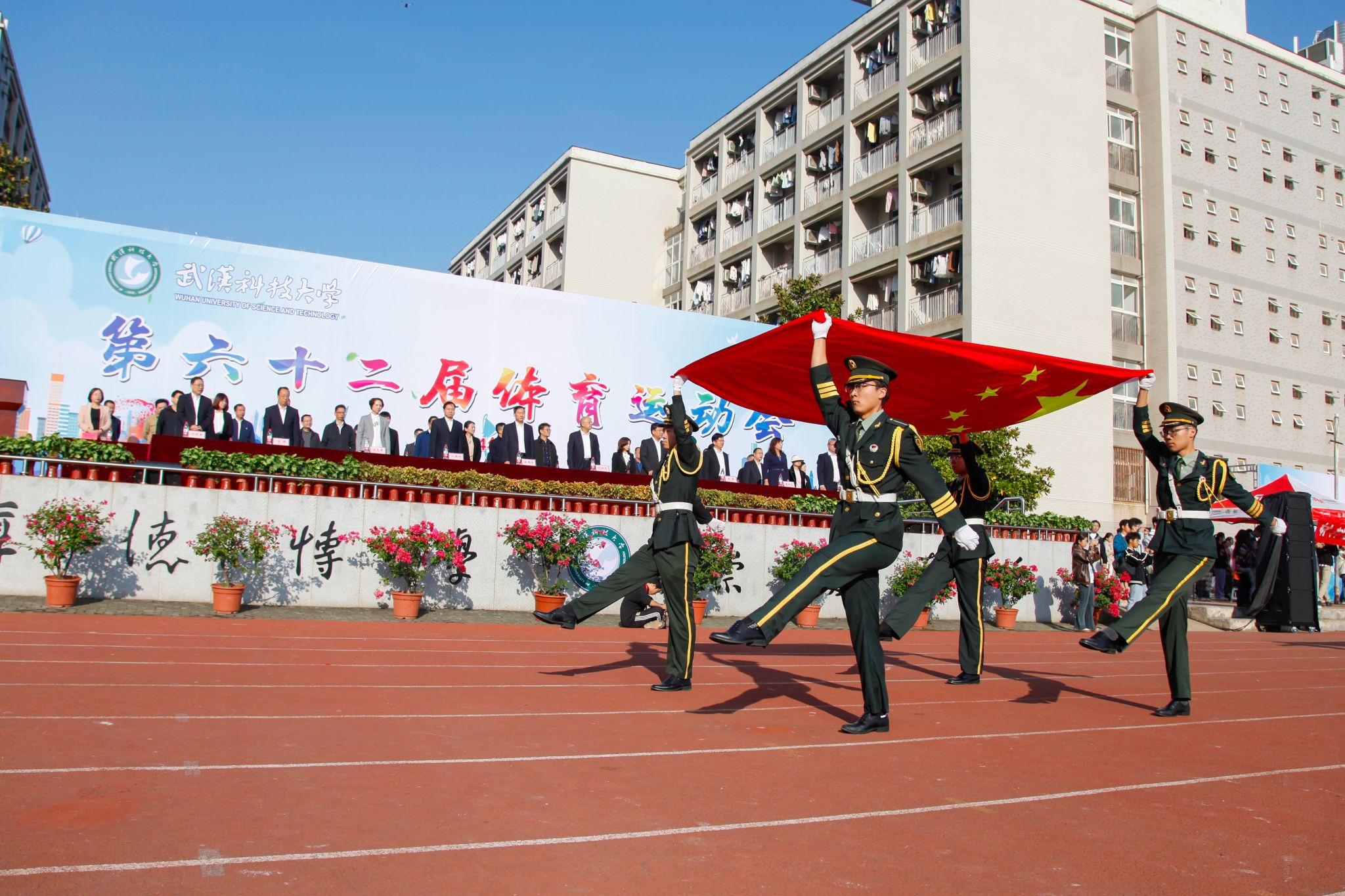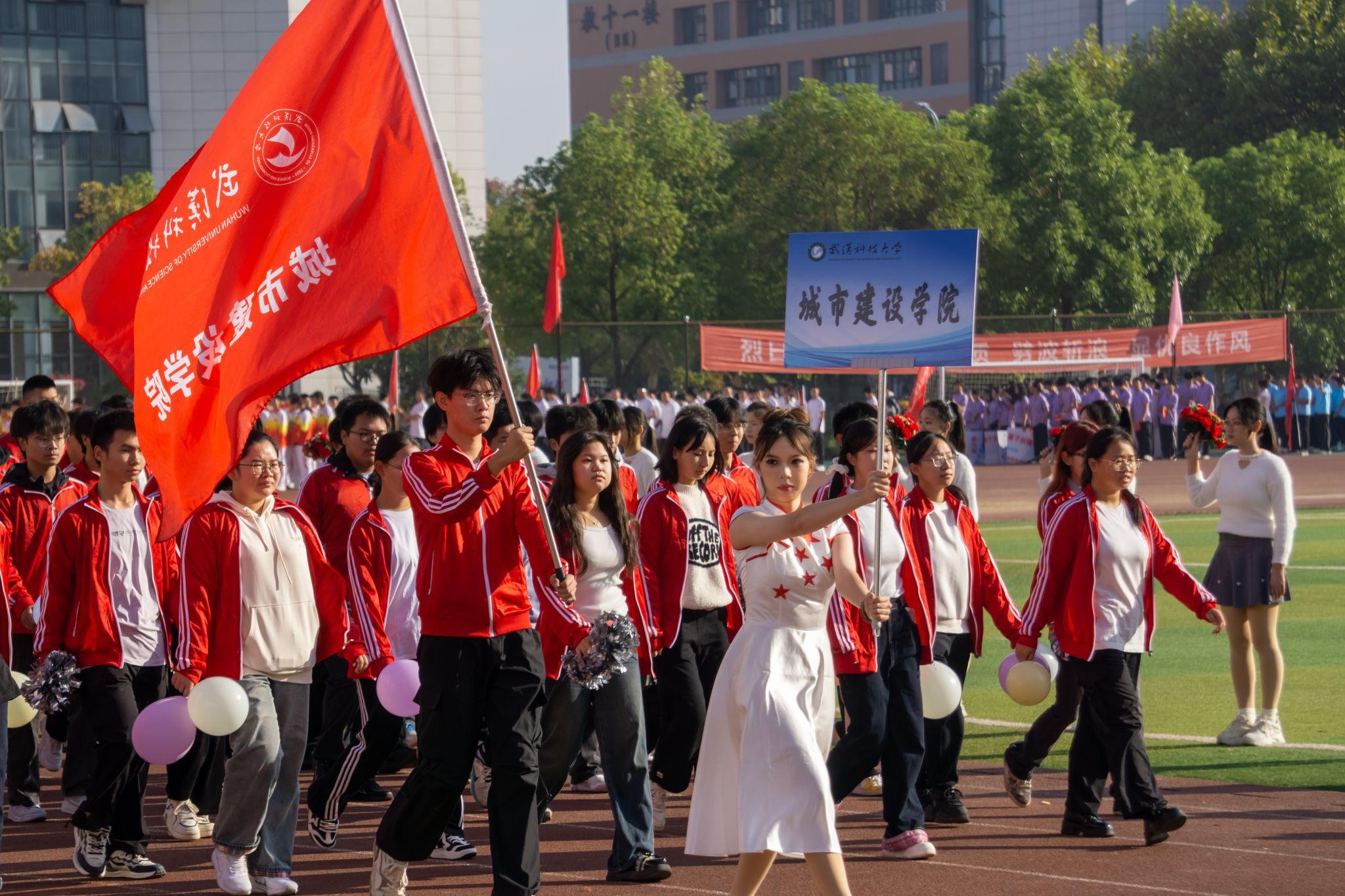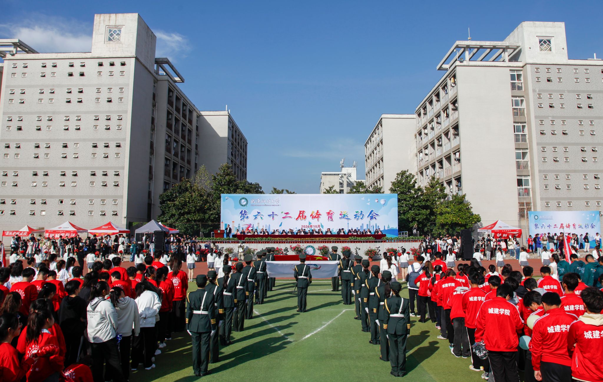 10月24日上午,我校第六十二屆運動會開幕式在黃家湖校區南園操場舉行。校黨委書記徐雁冰,校長倪紅衛,校黨委副書記孫國勝、沈季偉,黨委常委、紀委書記竇先萍,副校長呂勇、馬騰、董麗杰,黨委常委劉時新、徐增陽以及學校相關職能負責人、各學院負責人、裁判員、教練員等出席開幕式,活動由劉時新主持。