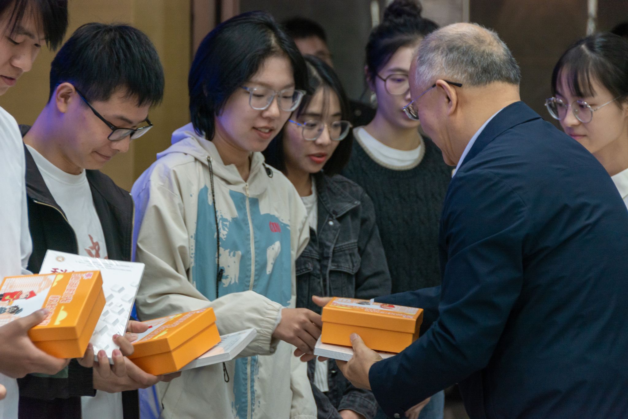 倪紅衛校長為研究生代表們贈送書籍 吳磊攝