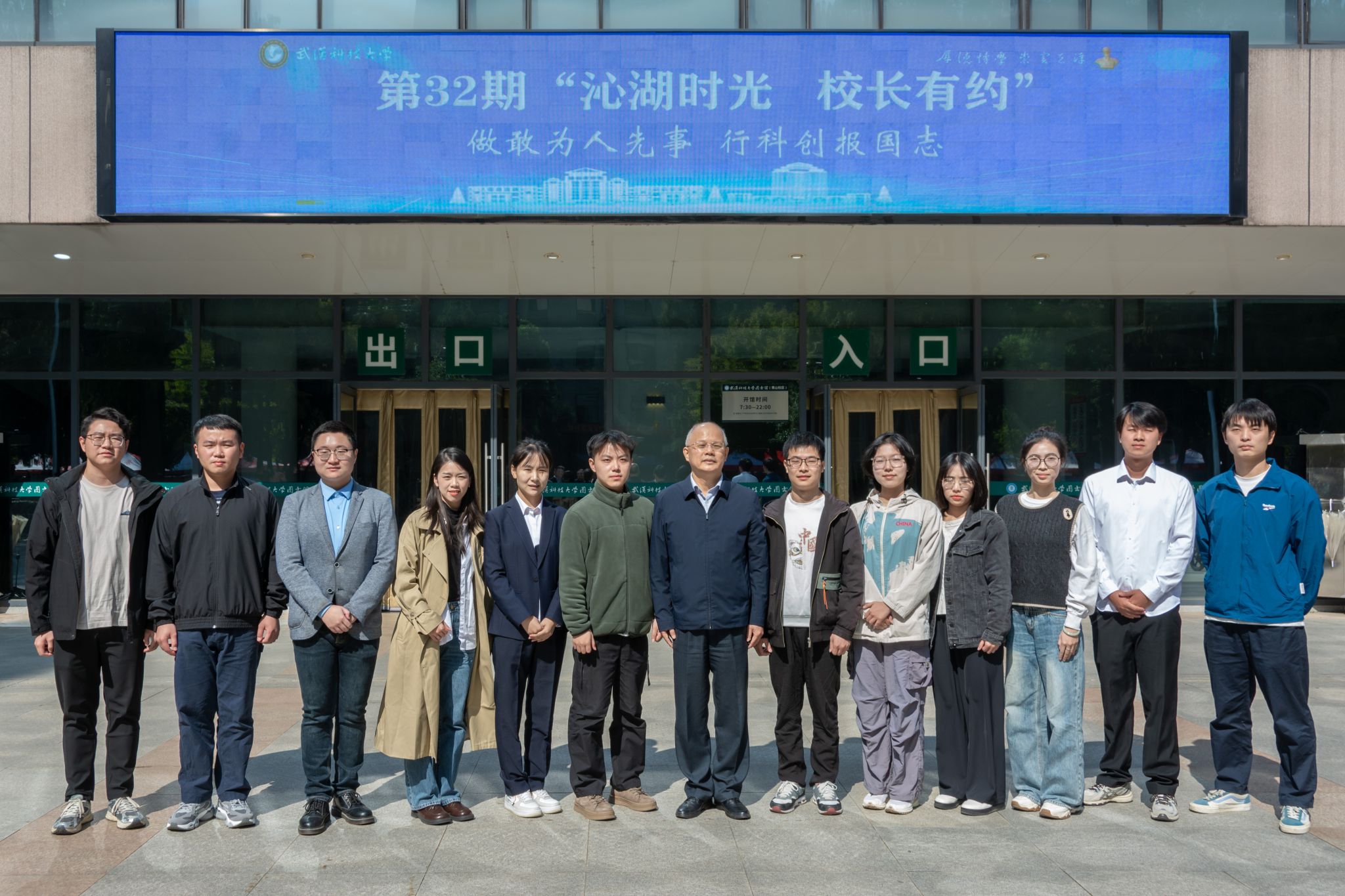 10月25日,我校第三十二期“沁湖時光·校長有約”研究生專場在青山校區舉行。校長倪紅衛與12名研究生代表在圖書館一樓路演廳共話科創報國之志。黨委研究生工作部部長鄭娟主持。會前,12名研究生代表參觀了學校省部共建耐火材料與冶金國家重點實驗室、機械國家實驗教學示范中心。(吳磊)
