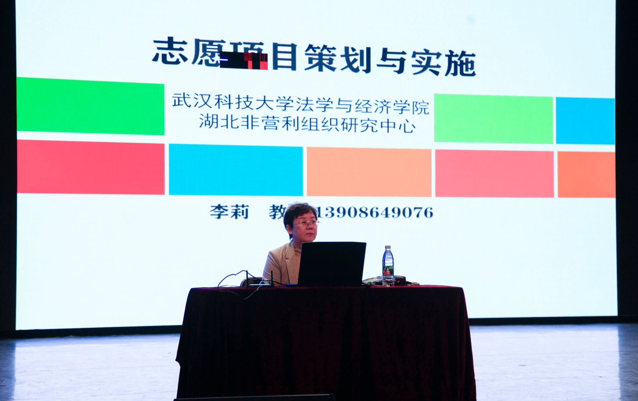 湖北非營利組織研究中心主任、武科大法學與經濟學院教授李莉對全體青年志愿者培訓 吳穎攝