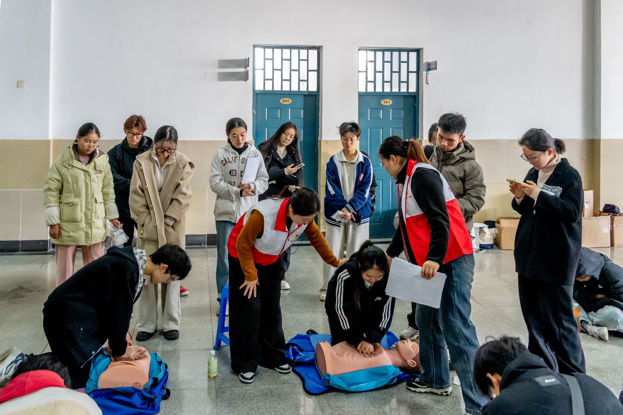 2024年11月30日,湖北省紅十字會培訓教師在武漢科技大學北園青春驛站為該校參加青苗計劃的學生舉辦了一場急救知識實操培訓。此次培訓旨在提升學生的急救意識和技能,特別是心肺復蘇等關鍵急救技術,以構建應急救援體系并弘揚人道精神。通過參與培訓和考核,學生們還有機會獲得救護員證書,增強其在緊急情況下的救援能力。