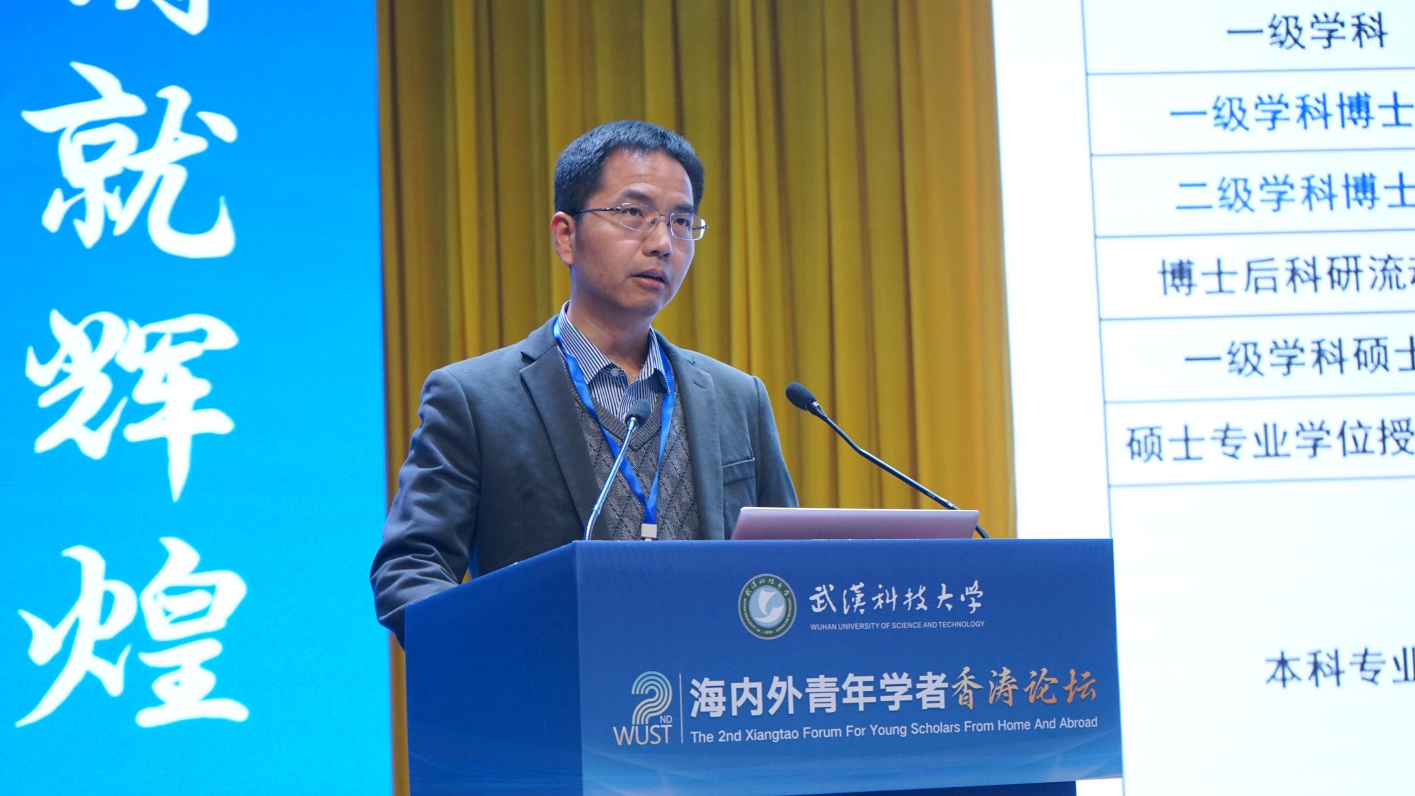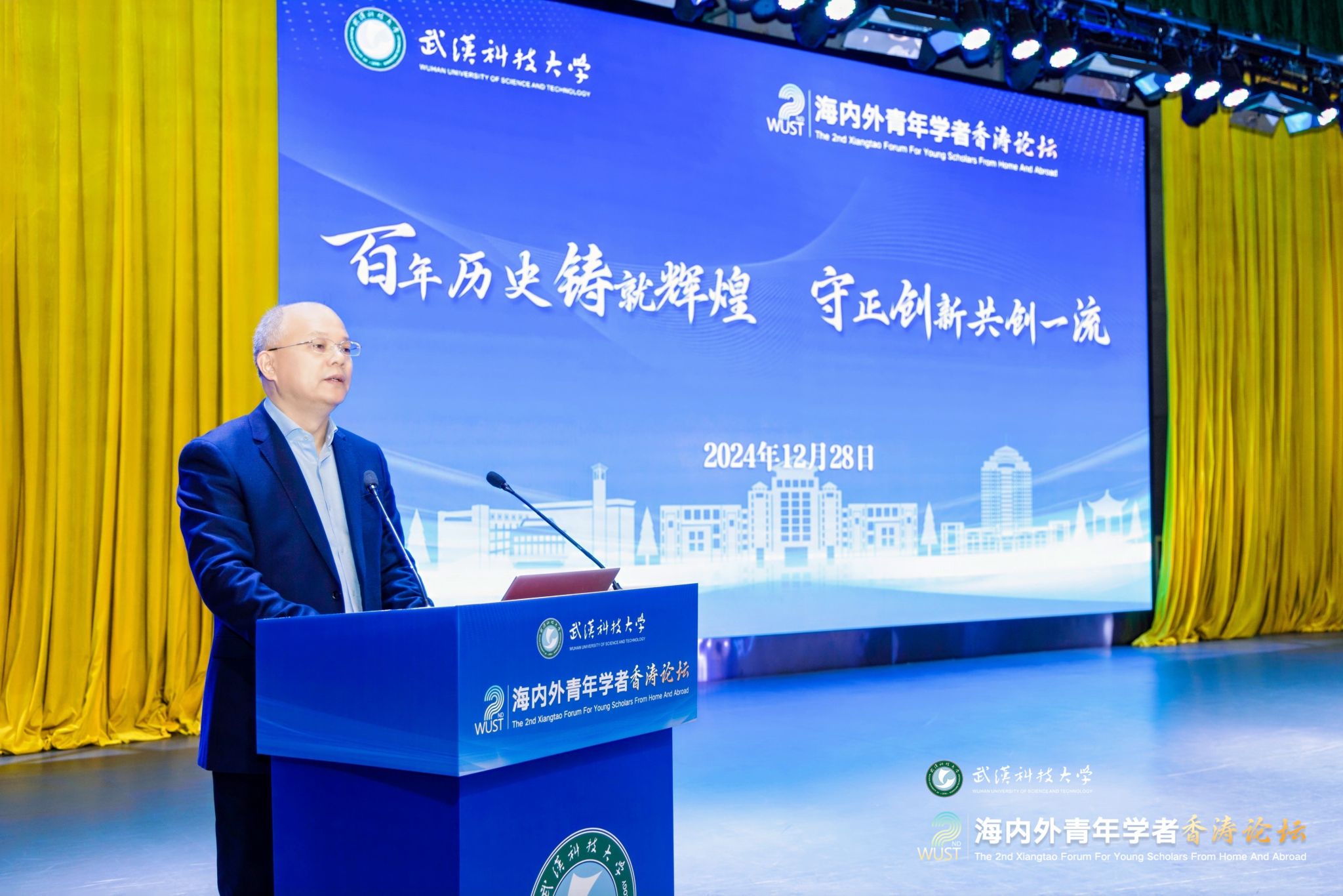 12月28日上午,第二屆海內外青年學者香濤論壇在青山校區碧園會堂開幕。來自海內外的100余位青年學者在武漢科技大學歡聚一堂,聚焦學術前沿,碰撞創新火花,共敘友誼與合作。湖北省委人才辦副主任王英,校黨委書記徐雁冰,校長倪紅衛,副校長呂勇、馬騰出席主論壇。主論壇由呂勇主持。