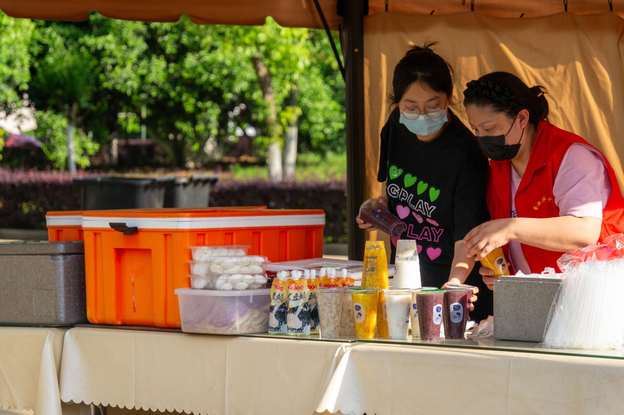 南園早餐外賣窗口 提前布置早餐攤位 王翔宇攝