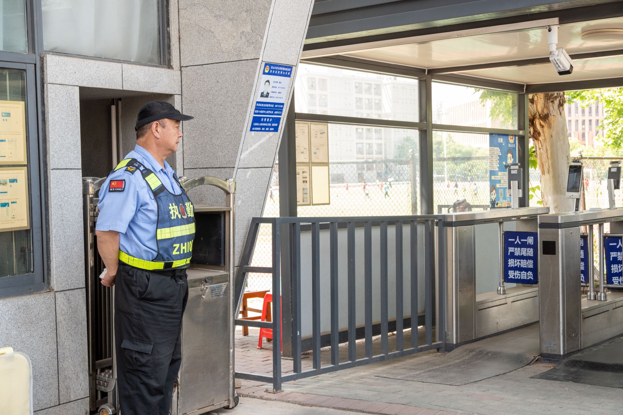 我叫張明軍,是一名門衛大叔,來武科大七年了。我的日常工作主要是在校園進出口處站崗,核查出入校園人員的身份信息,阻止校外無關人員進入。我深知自己只是在平凡的崗位上做著平凡的事,雖無法比肩偉人,但希望能通過這份工作減少一分安全隱患,為師生創造一個安全的學習環境。