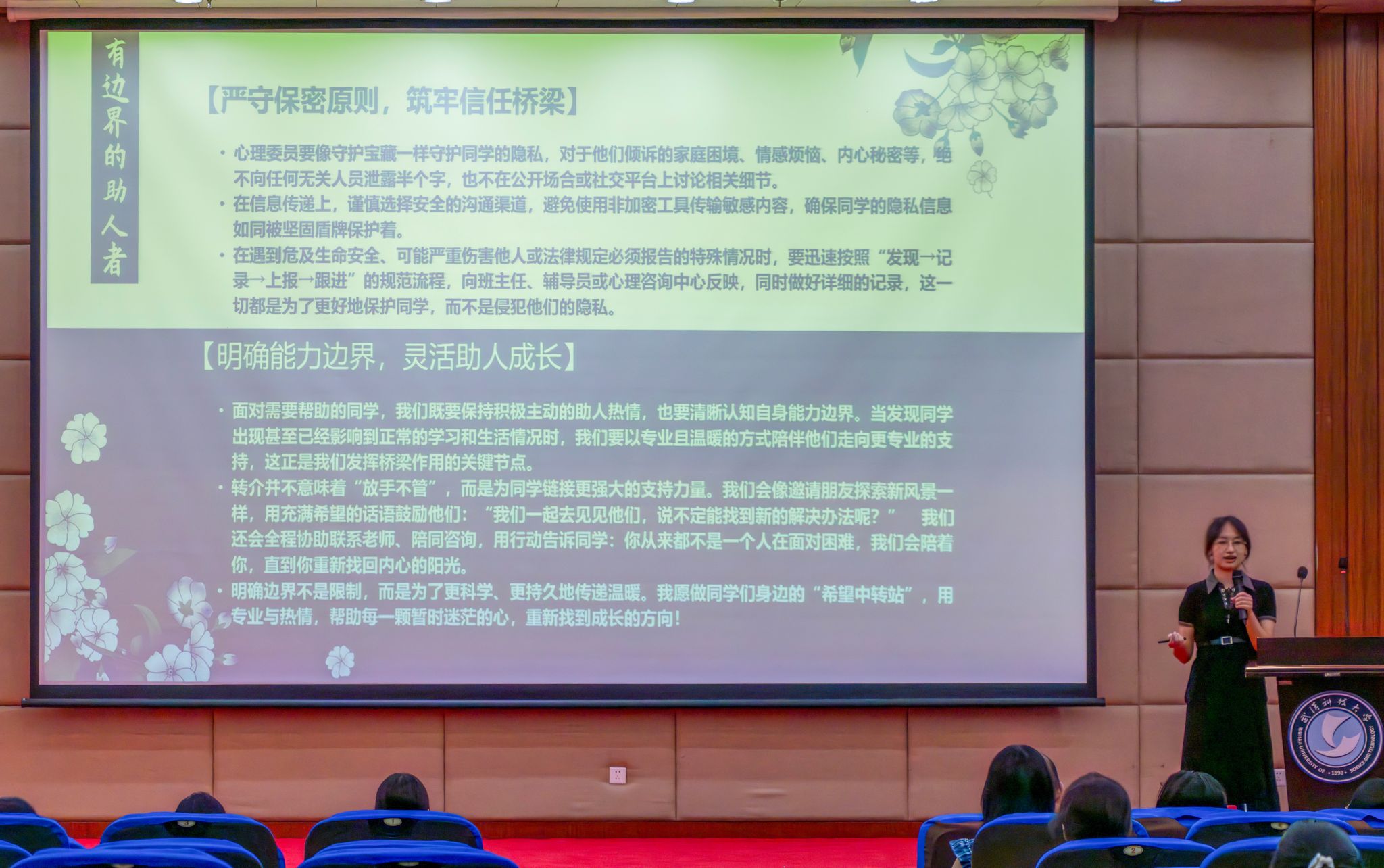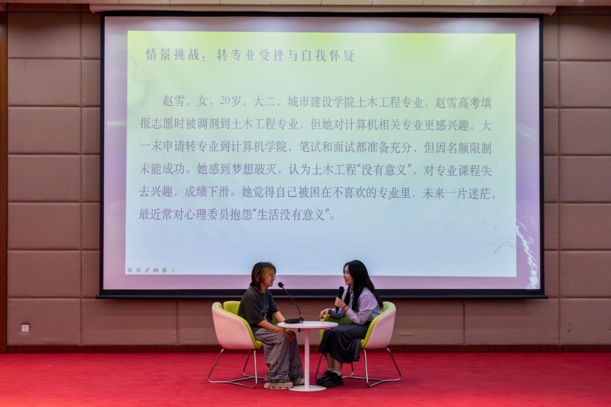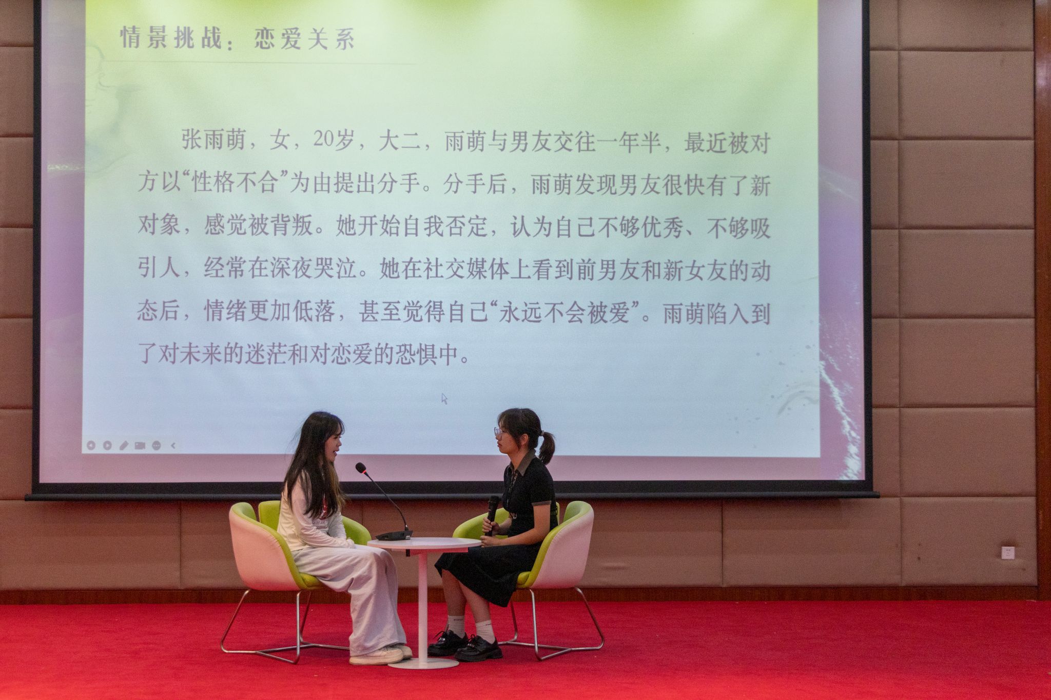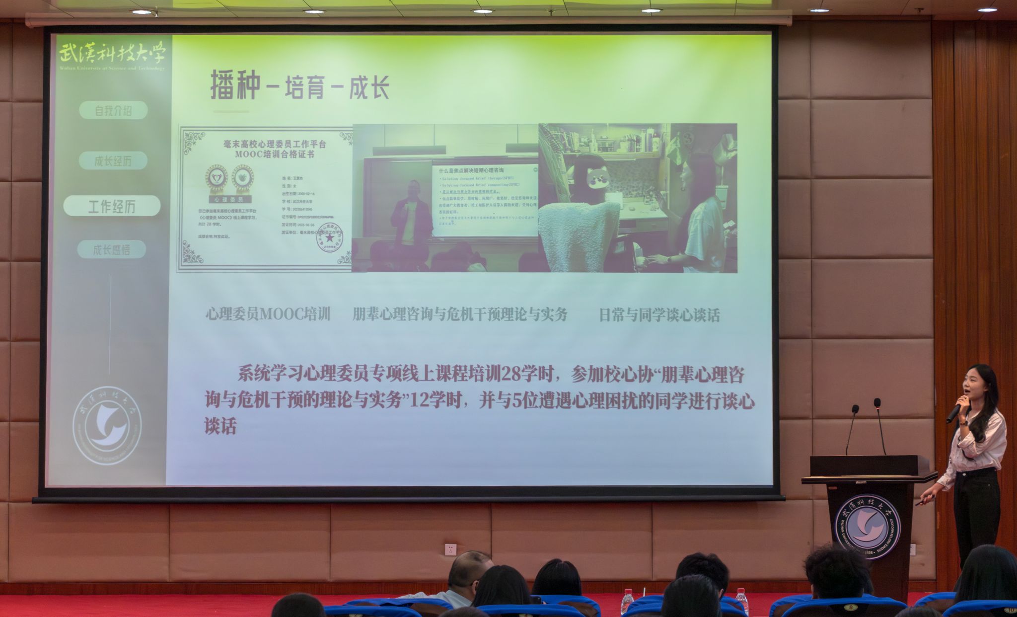 5月28日晚上19點至21點,武漢科技大學第七屆心理委員技能大賽于武漢科技大學黃家湖校區圖書館二樓崇實會堂舉行。首先,七位參賽選手進行風采展示并由本次比賽評委打分,中場有吉他音樂協會帶來歌曲《傳奇》,然后,各位選手抽簽進行情景挑戰,接著吉他音樂協會帶來歌曲《字字句句》。最后,主持人宣讀各位選手最終得分并進行頒獎儀式。